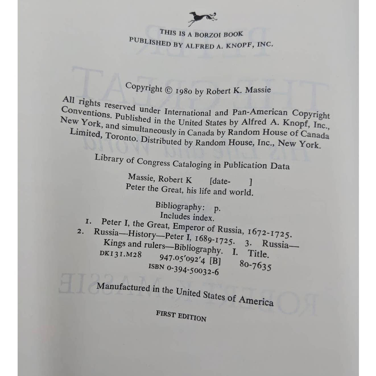 Peter The Great His Life And World By Robert K. Massie Vintage First Edition 1980