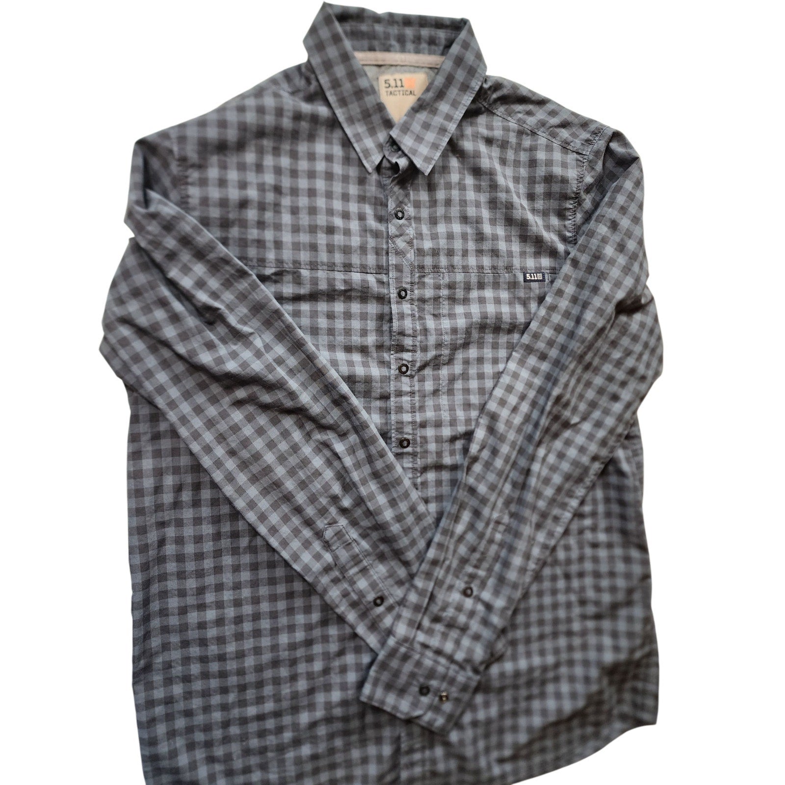 5.11 Tactical Mens Small Gray Plaid Long Sleeve Shirt Outdoor Hiking Casual