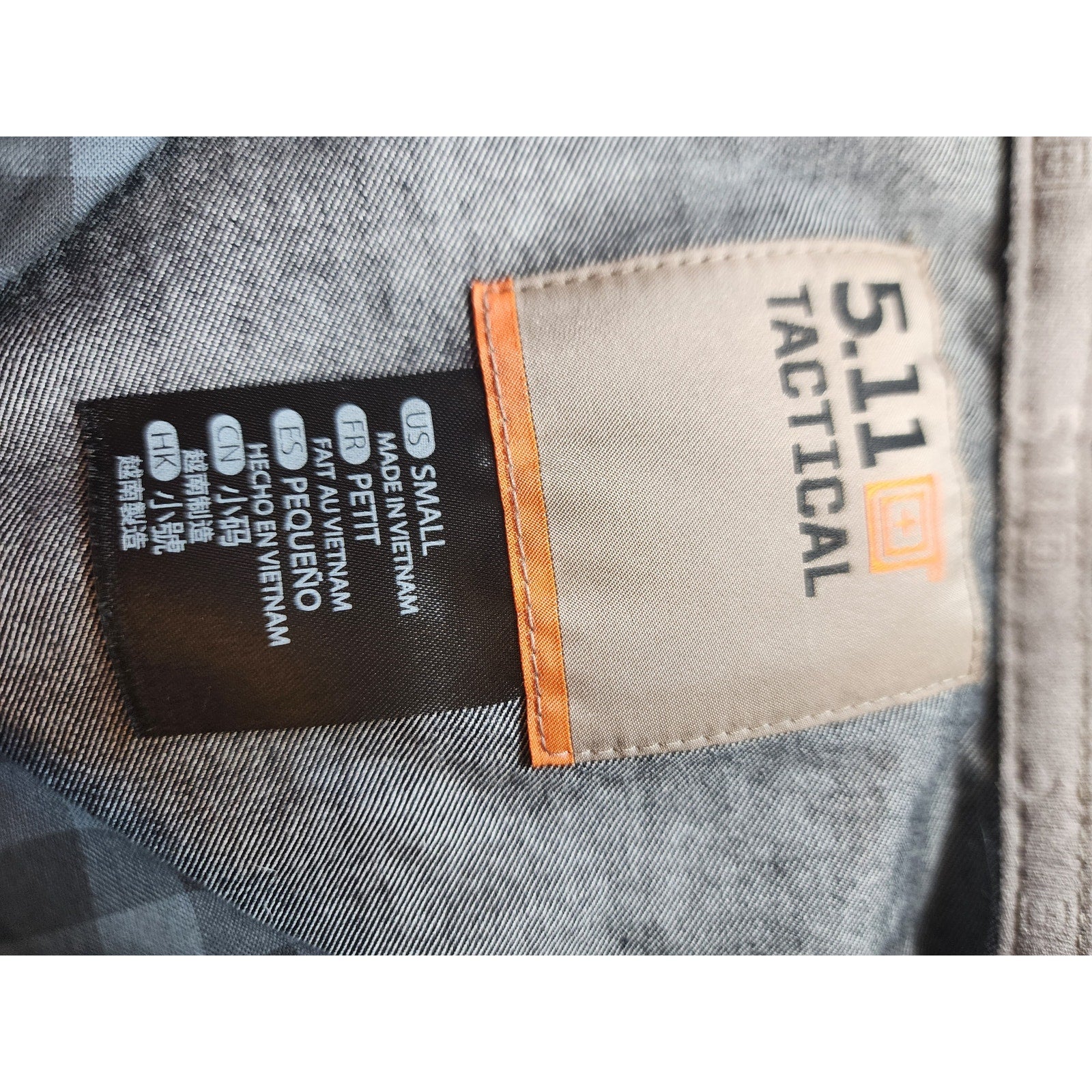 5.11 Tactical Mens Small Gray Plaid Button Front Long Sleeve Shirt Outdoor Hiking Casual Cotton Blend