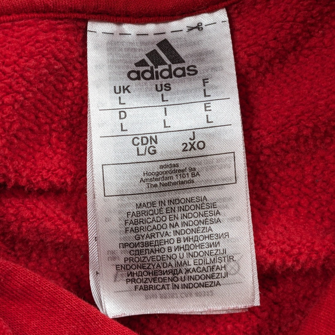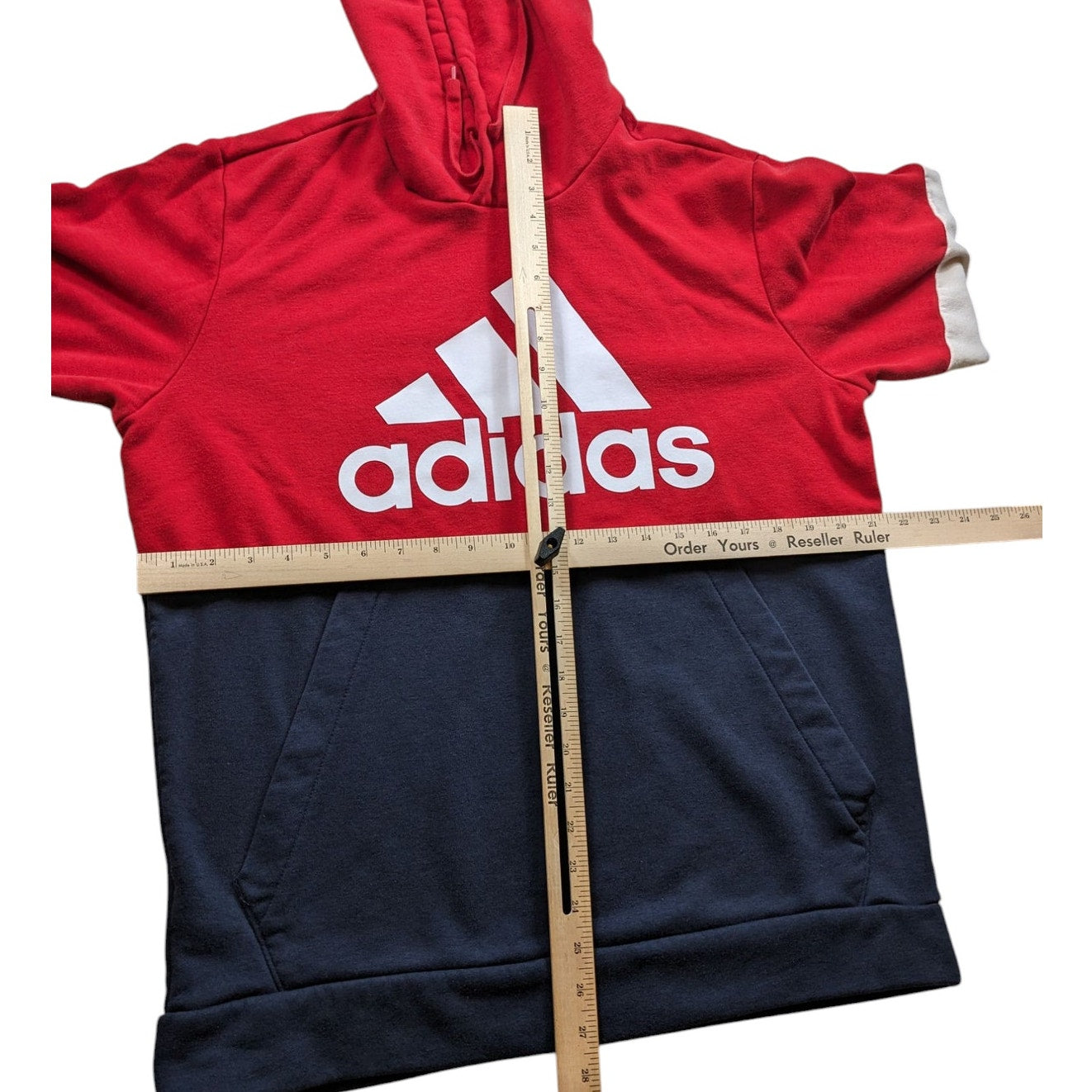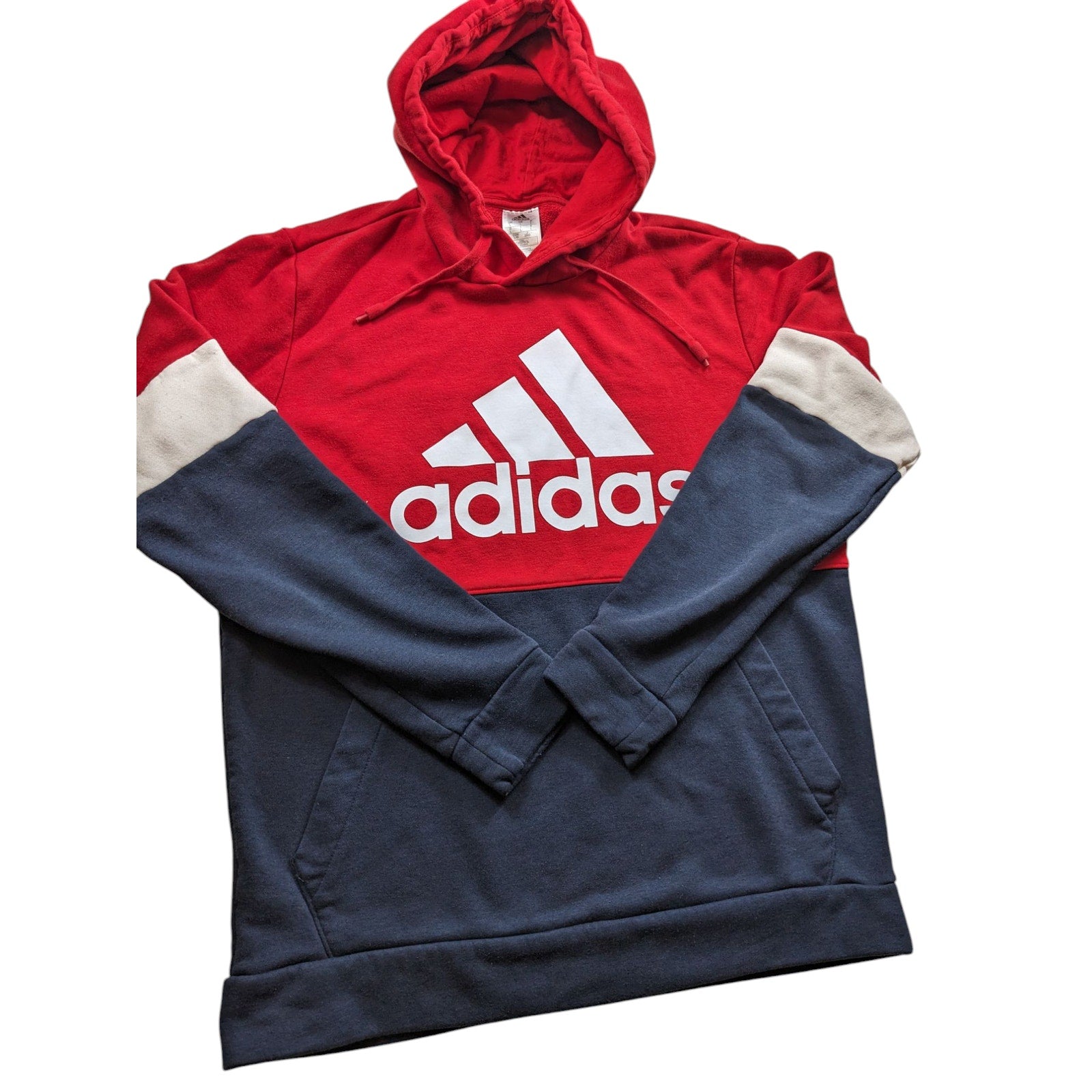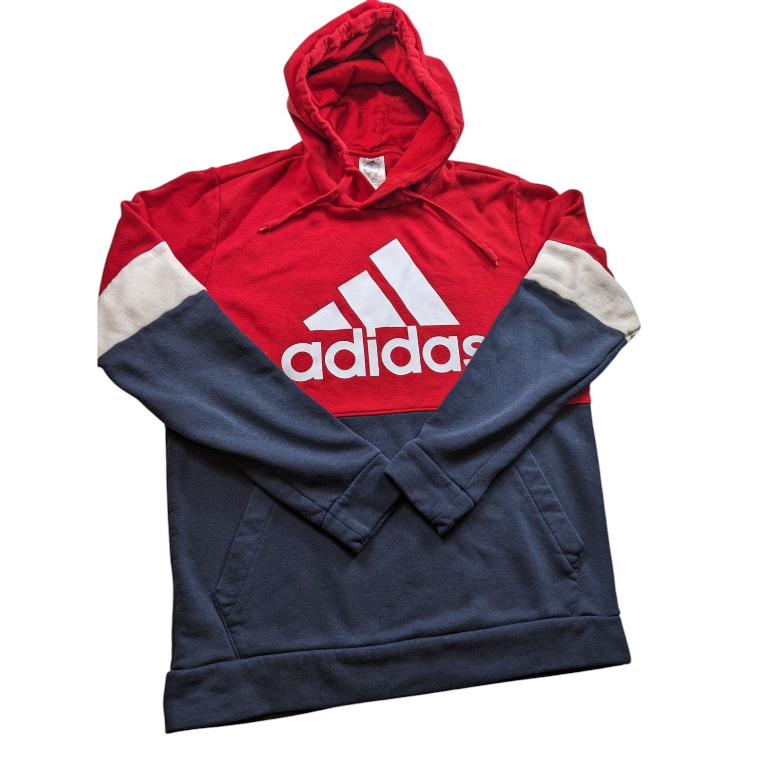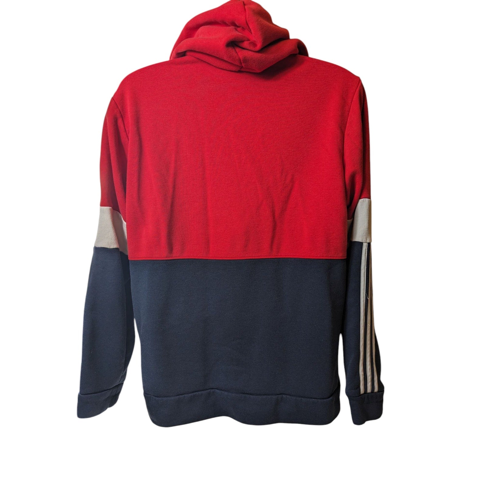 Adidas Hoodie Mens Medium-Large Red Navy Colorblock Pullover Sweatshirt Logo Streetwear Drawstring Kangaroo Pocket