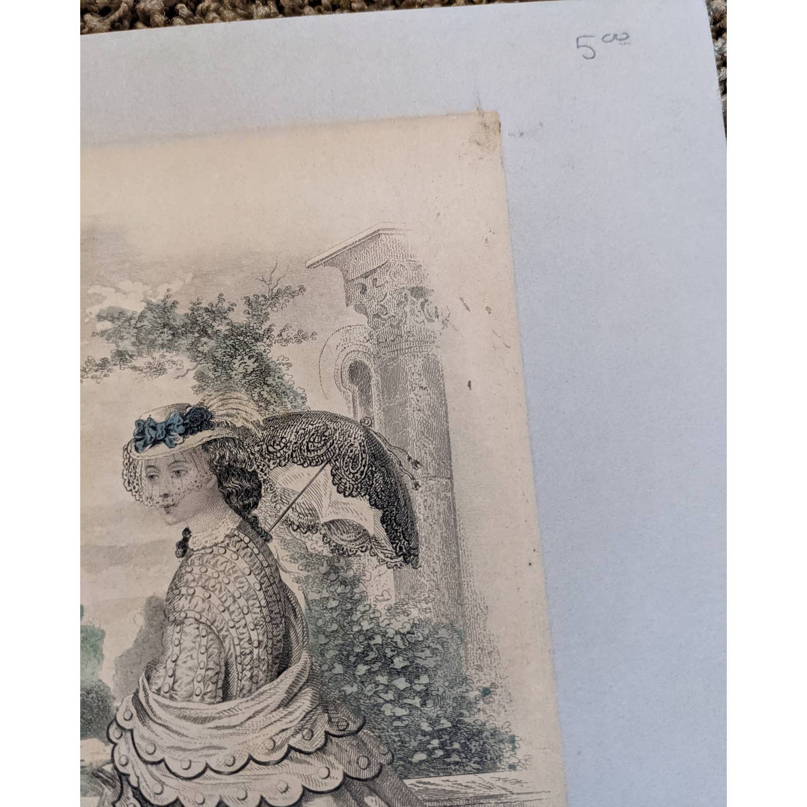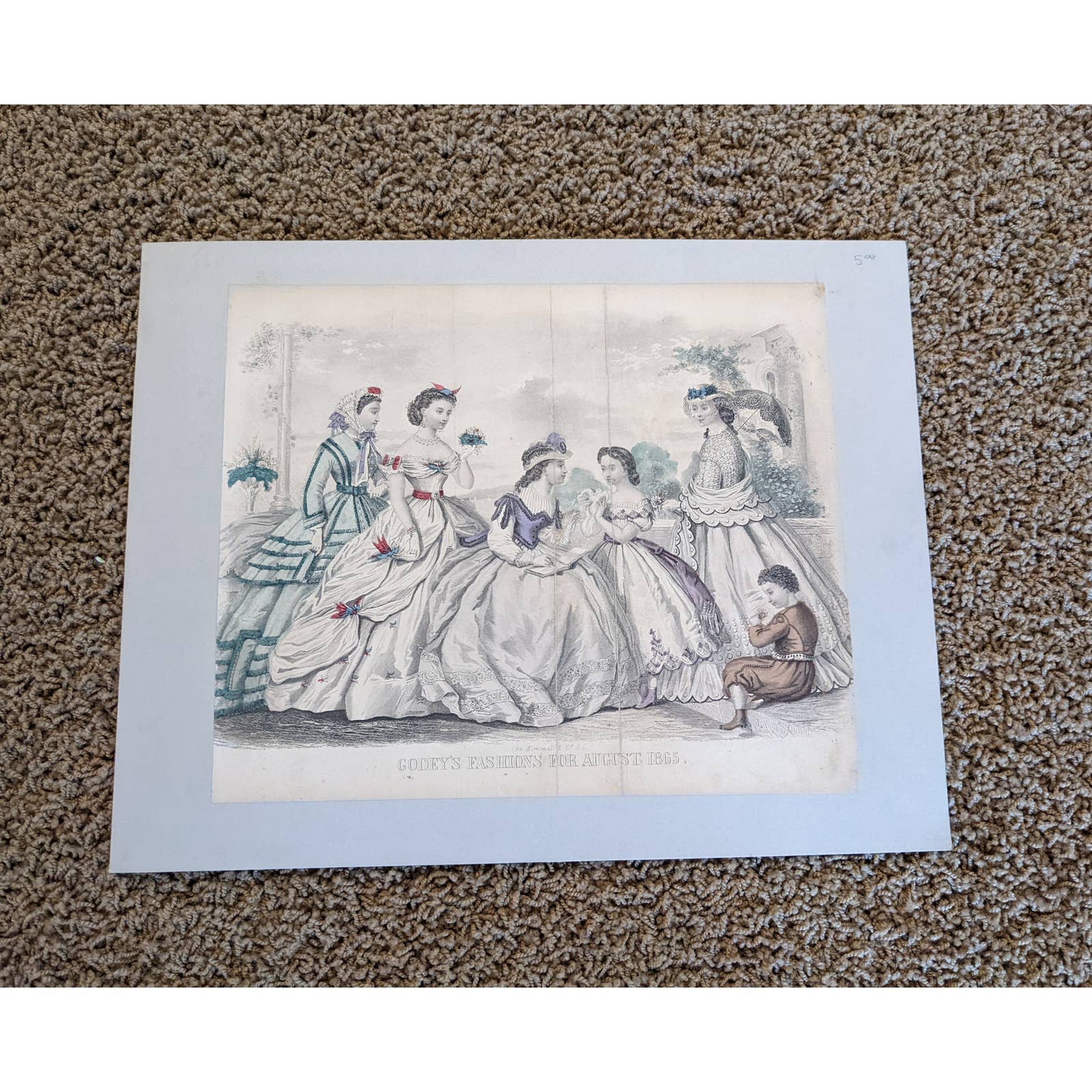 Antique Godey's Victorian Rare Hand Colored Fashion Book Plate Print August 1865