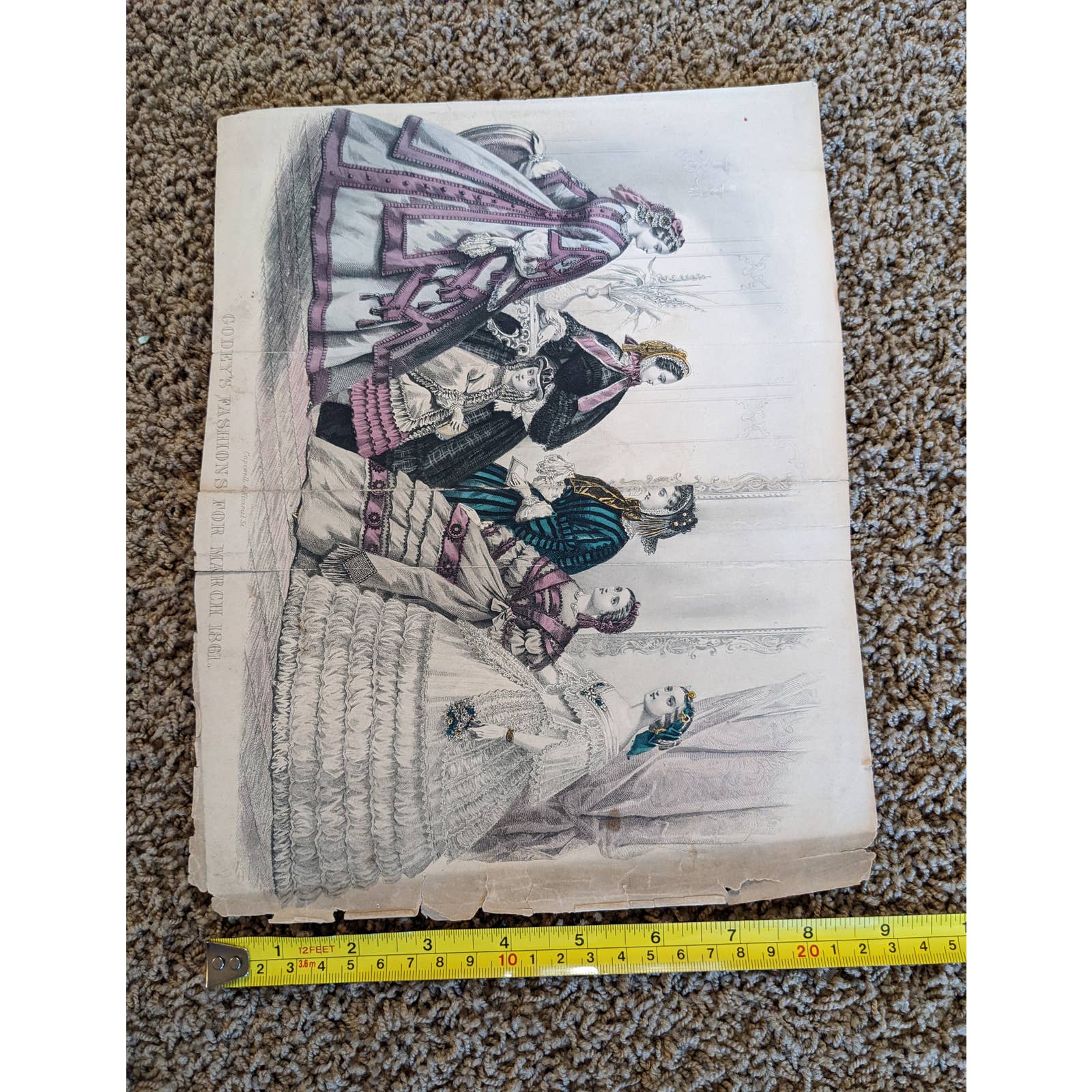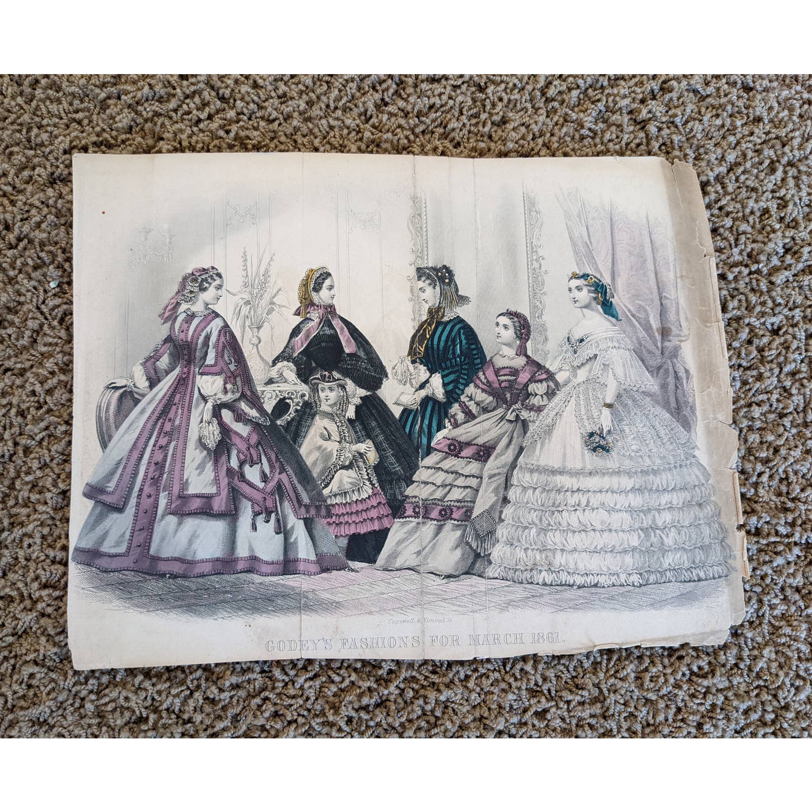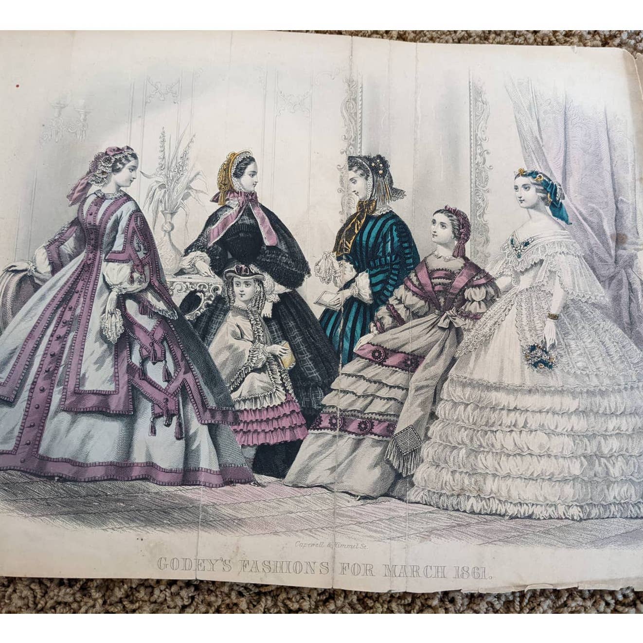 Antique Godey's Victorian Rare Hand Colored Fashion Book Plate Print March 1861