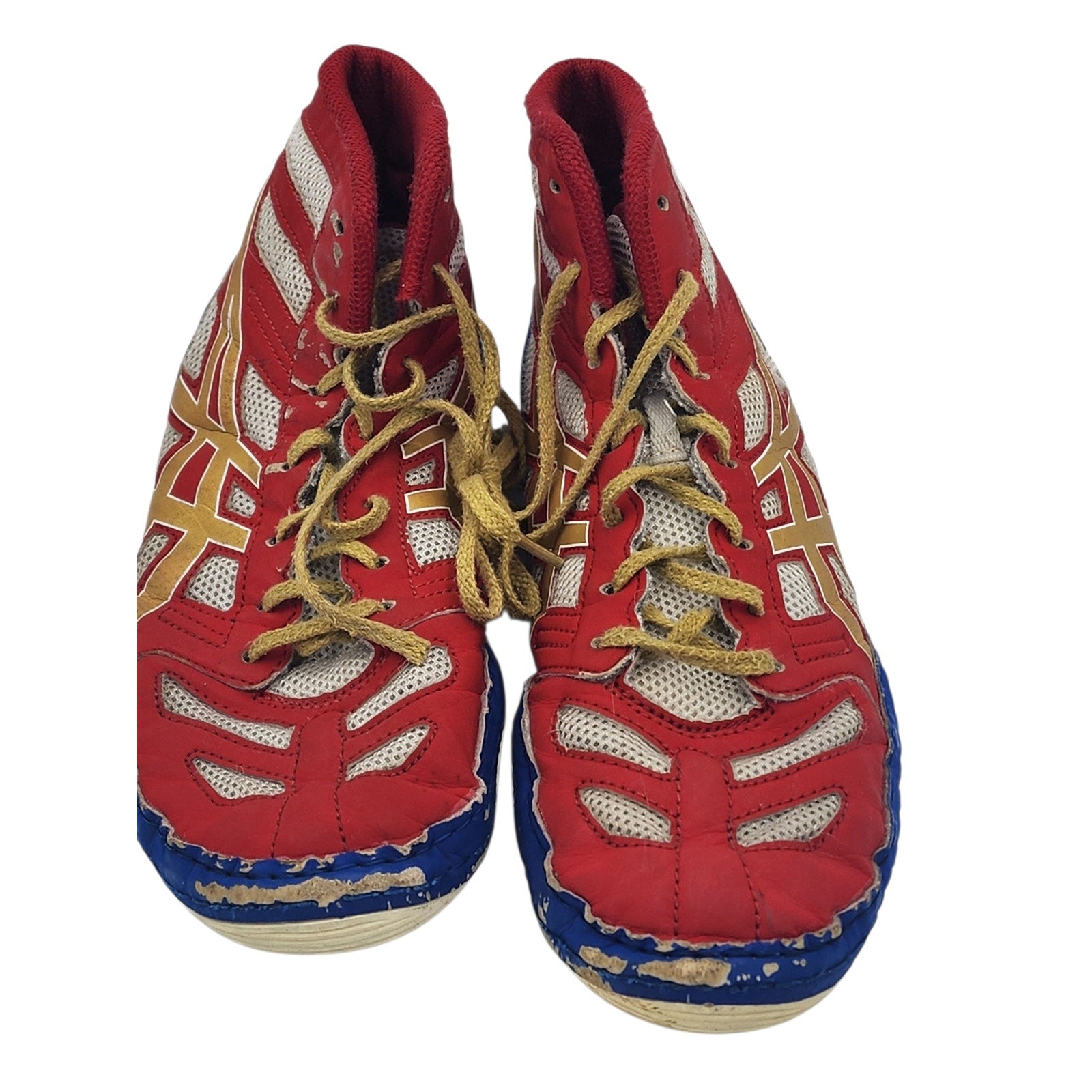 Asics JB Elite RWB Wrestling Shoes Youth Kids Size 6 Mens 5 Womens 6.5 Red Gold Blue Dream It Do It C353Y Competition Grappling Sneakers Y2K