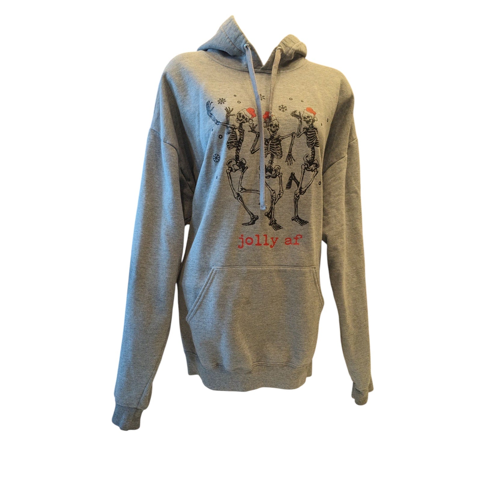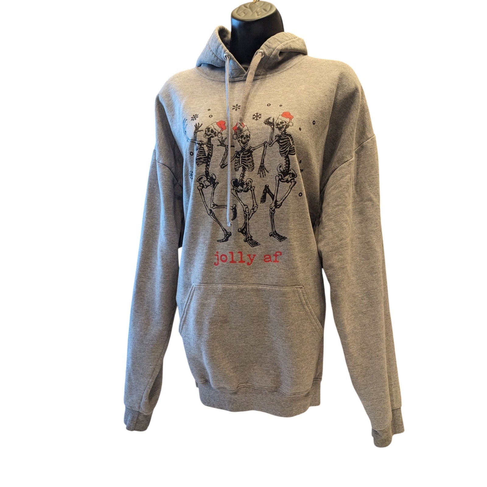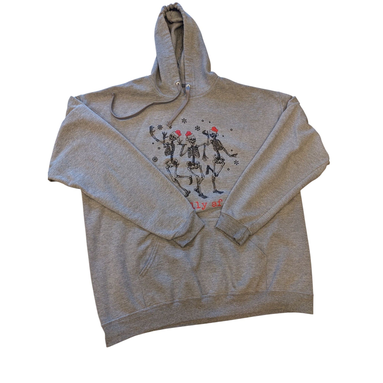 Athletic Works Jolly AF Skeletons Hoodie Mens XL Funny Christmas Sweatshirt Gray
