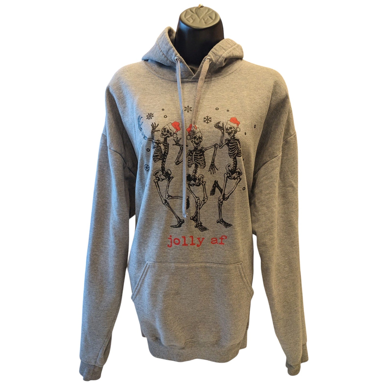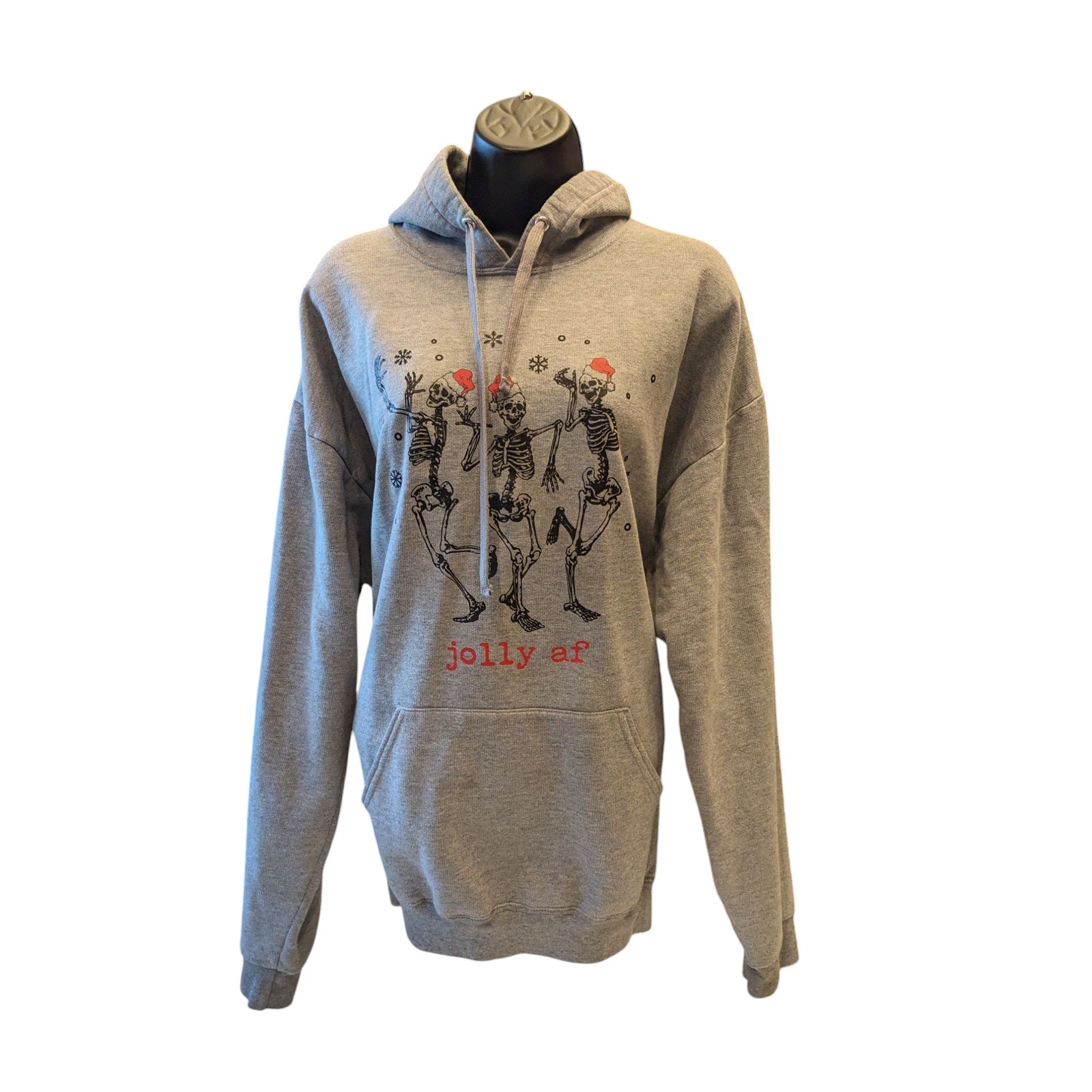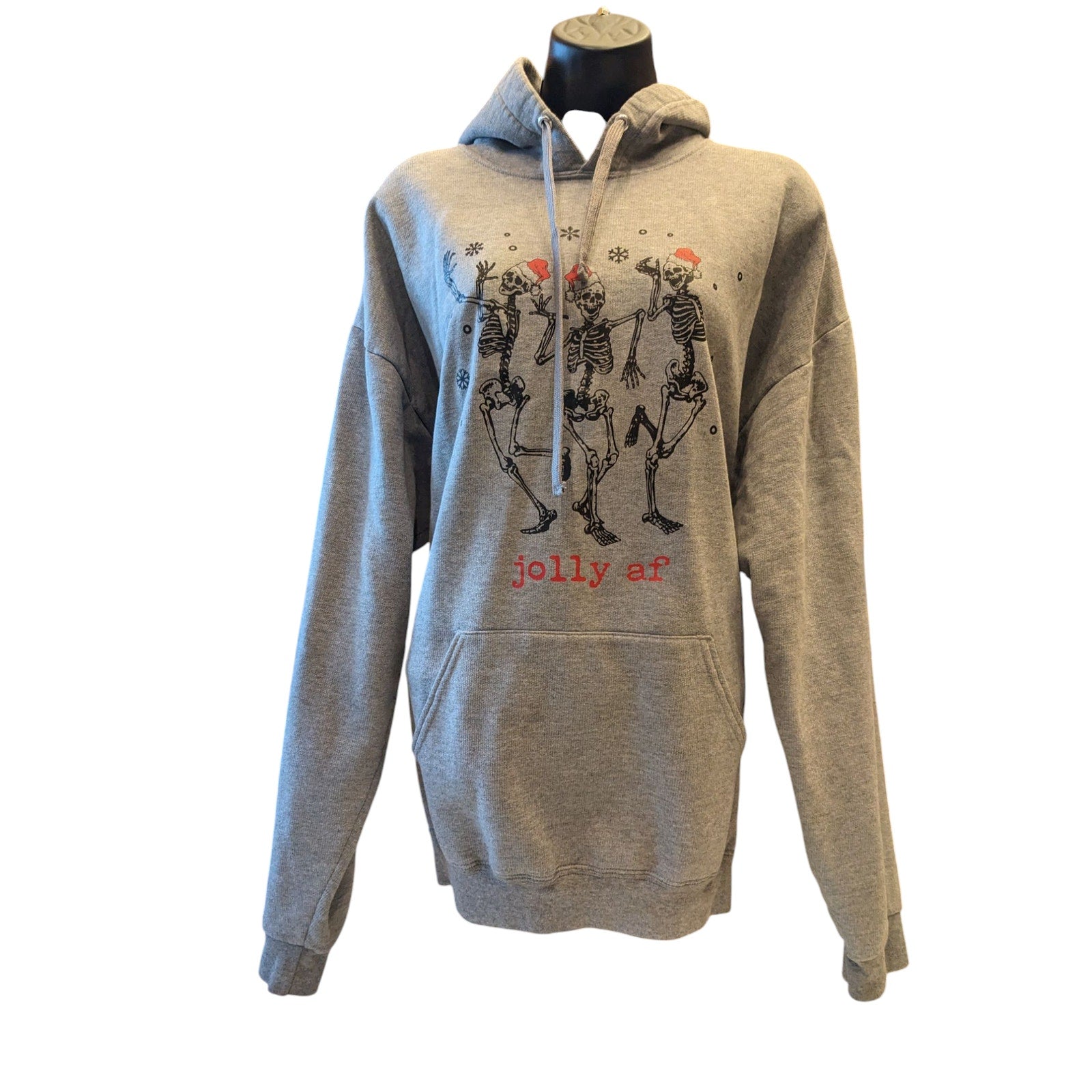 Athletic Works Jolly AF Skeletons Hoodie Mens XL Funny Christmas Sweatshirt Gray