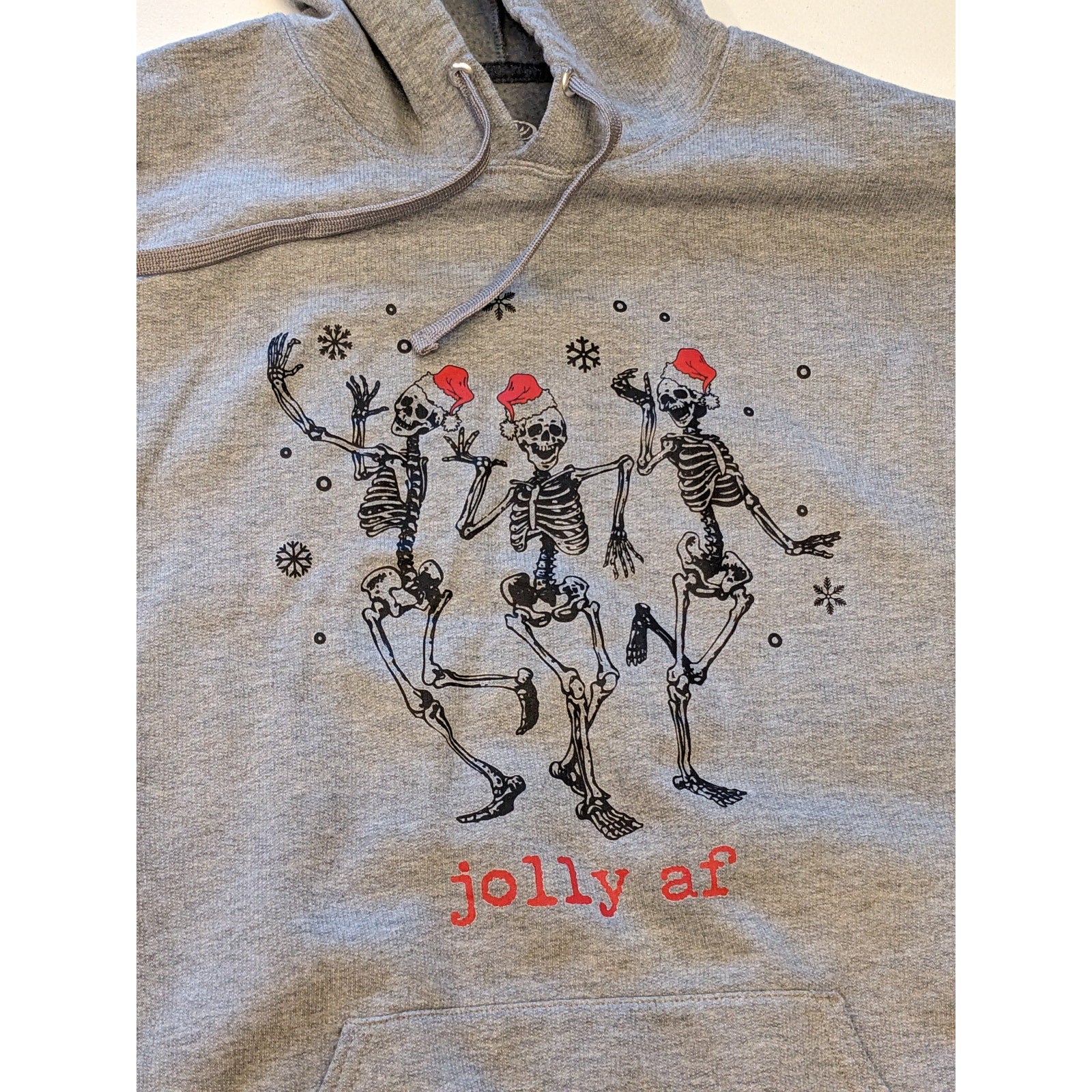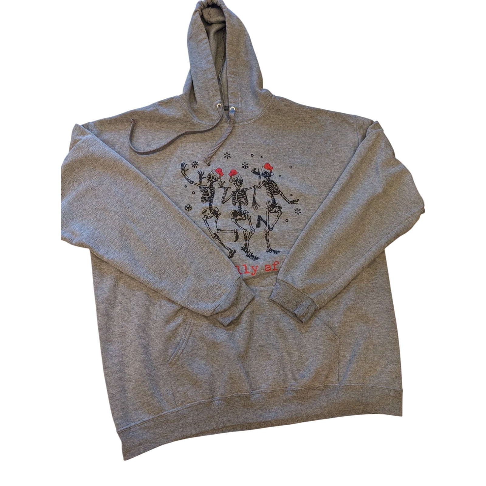 Athletic Works Jolly AF Skeletons Hoodie Mens XL Funny Christmas Sweatshirt Gray Holiday