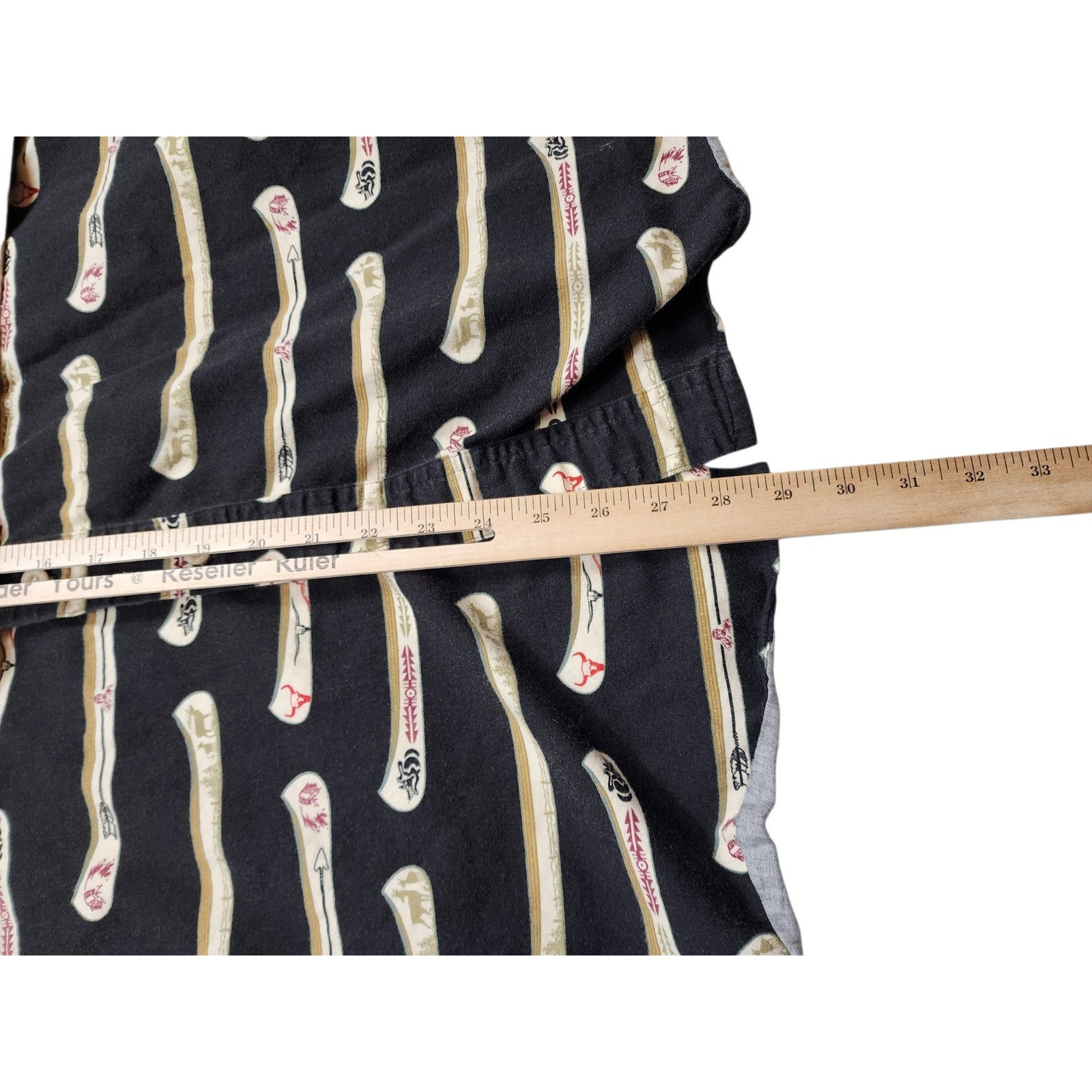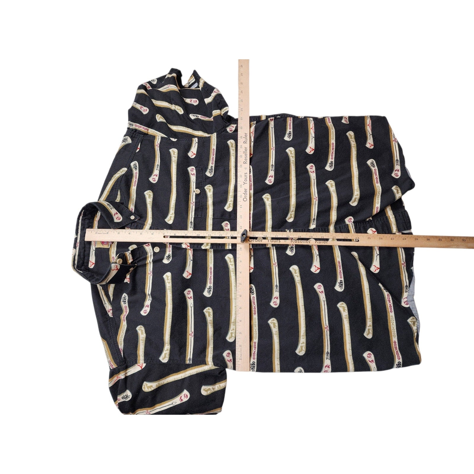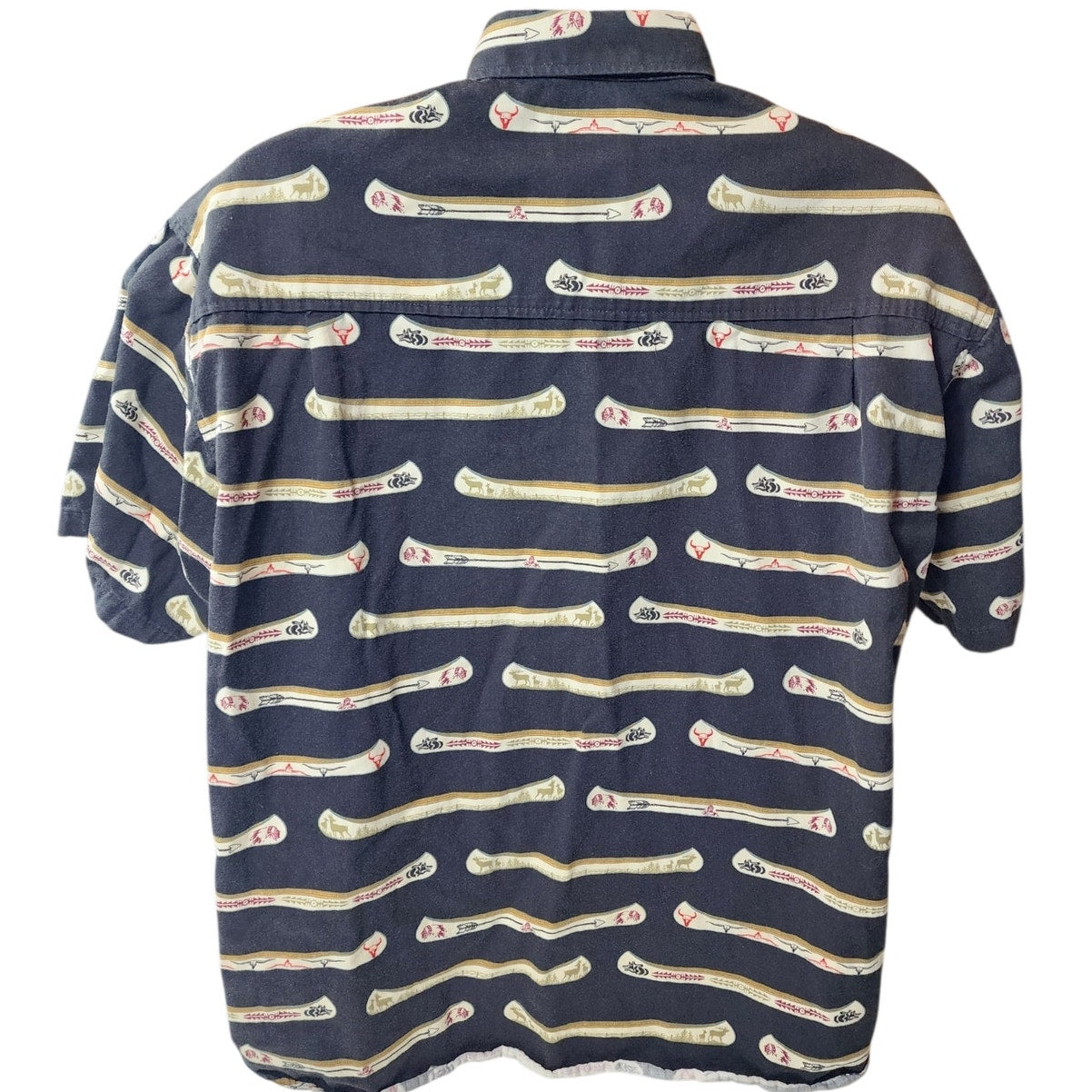 Barn Fly Shirt Mens Medium Western Cowboy Short Sleeve Button Down Made in USA Tribal Southwestern Navajo Style Bone Arrow Print Y2K Vintage