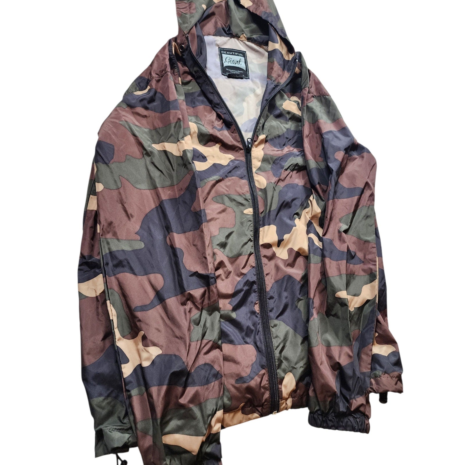 Beautiful Giant Camo Windbreaker Jacket Mens Medium Zip Up Hooded Lightweight