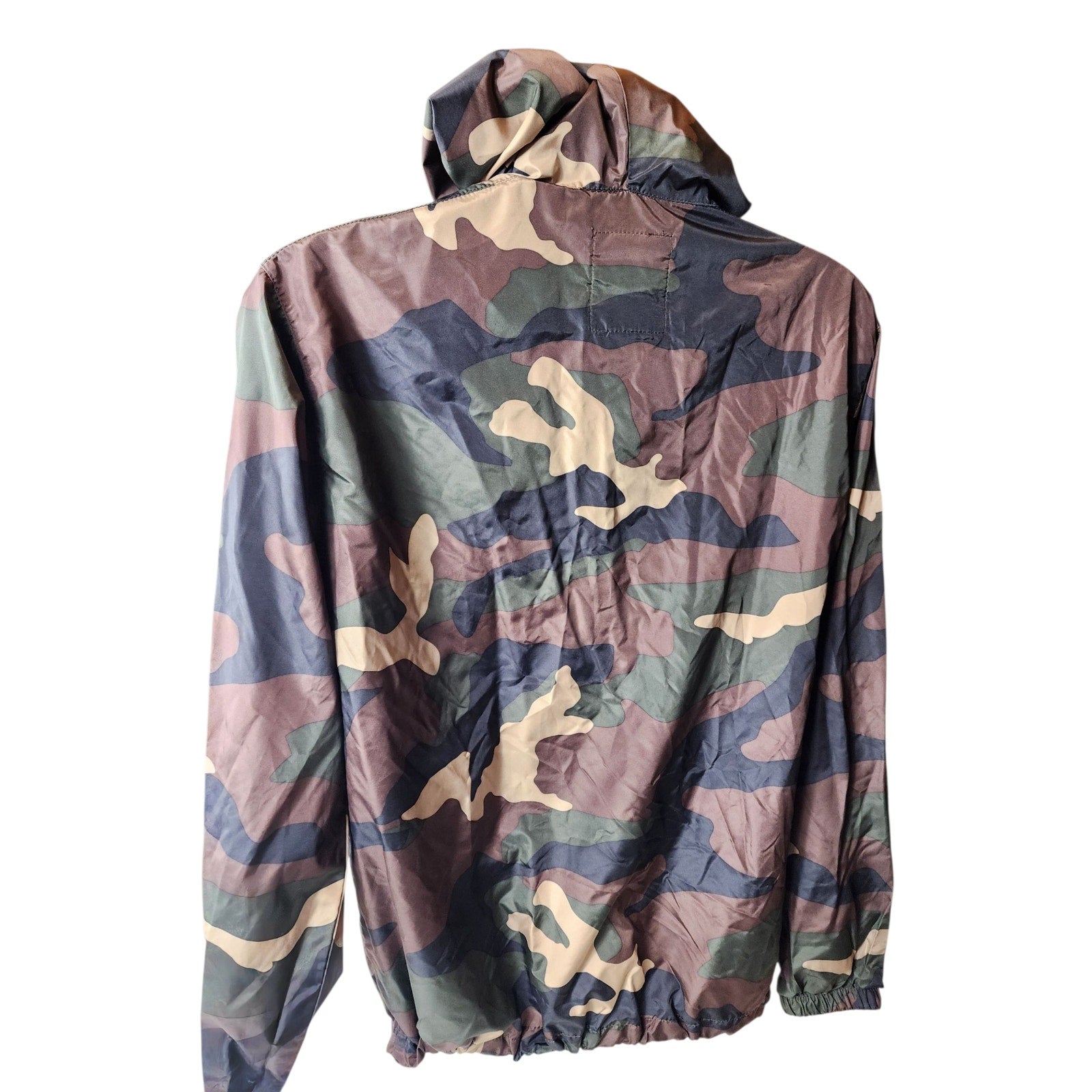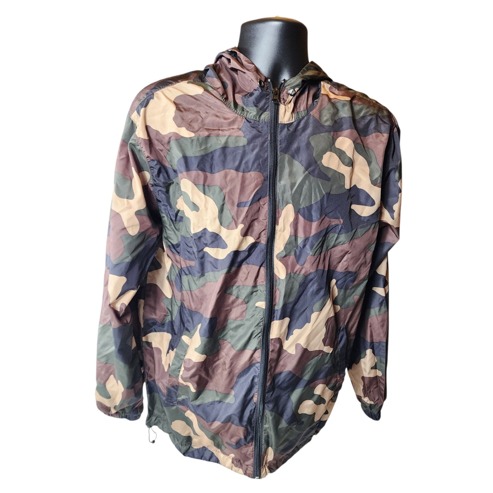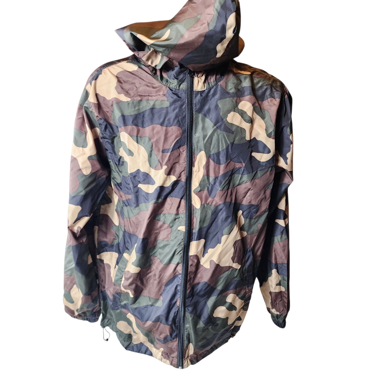 Beautiful Giant Camo Windbreaker Jacket Mens Medium Zip Up Hooded Lightweight Outdoor Military Look
