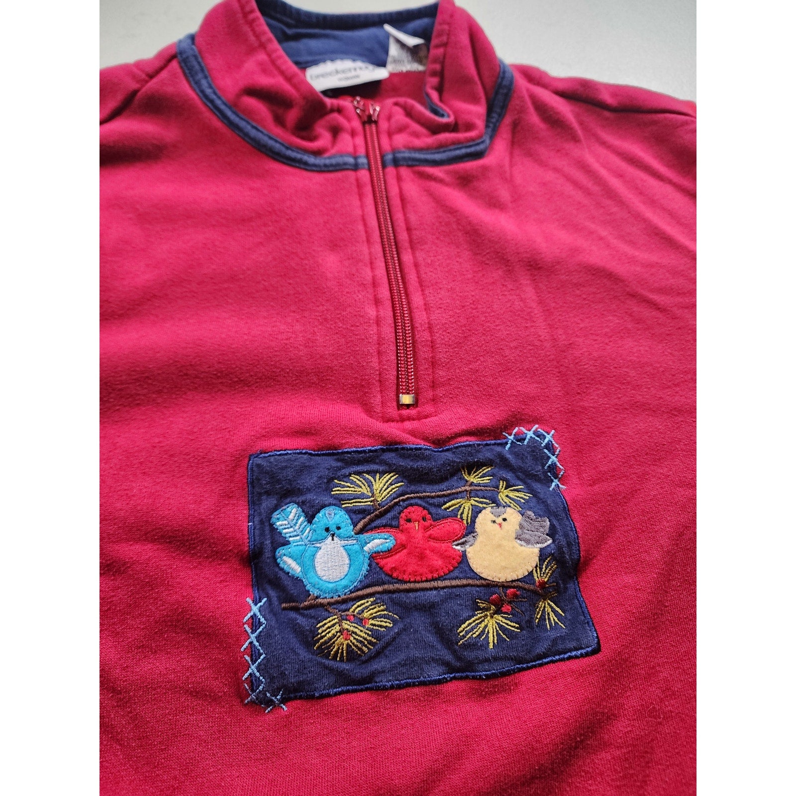 Breckenridge Sweatshirt Womens Size 2X Red 1/4 Zip Pullover Sweater Embroidered Birds Cotton Blend Casual Cozy Winter Fall Layering Retro Vintage Holiday