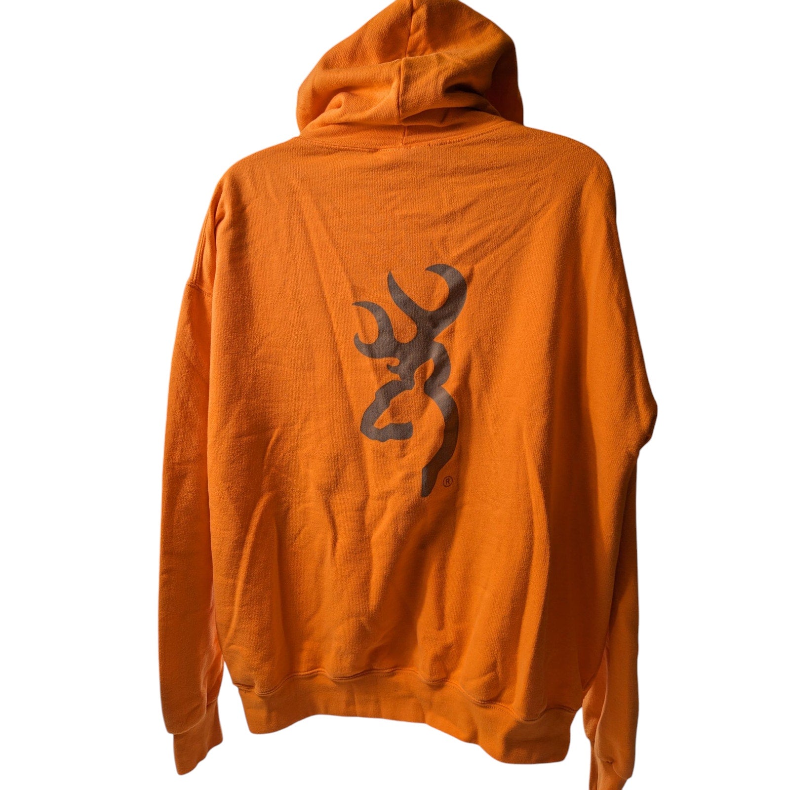 Browning Orange Hoodie Mens 2XL Hunting Sweatshirt Logo Graphic Pullover Outdoor Hiking Kangaroo Pocket