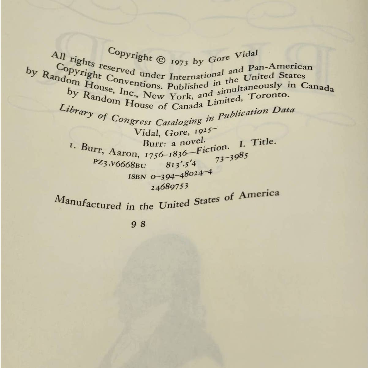 Burr By Gore Vidal Vintage 1973 Novel Aaron Burr Man Who Shot Hamilton