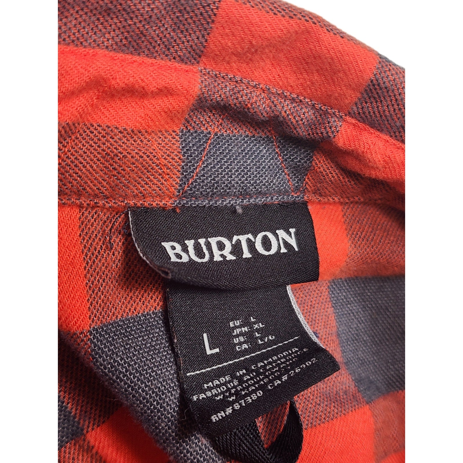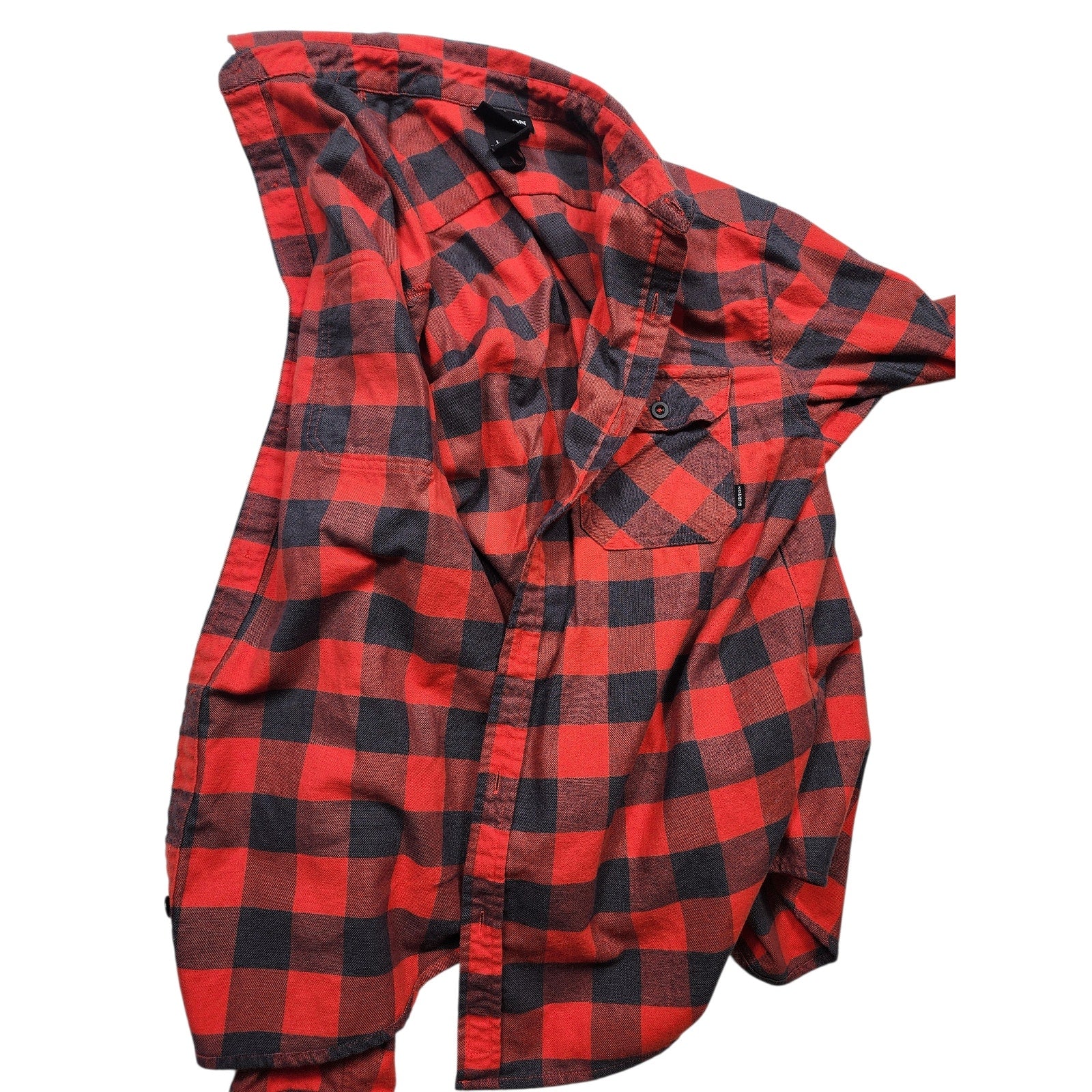 Burton Flannel Shirt Mens Large Red Black Buffalo Plaid Button Lumberjack Grunge Skate Casual