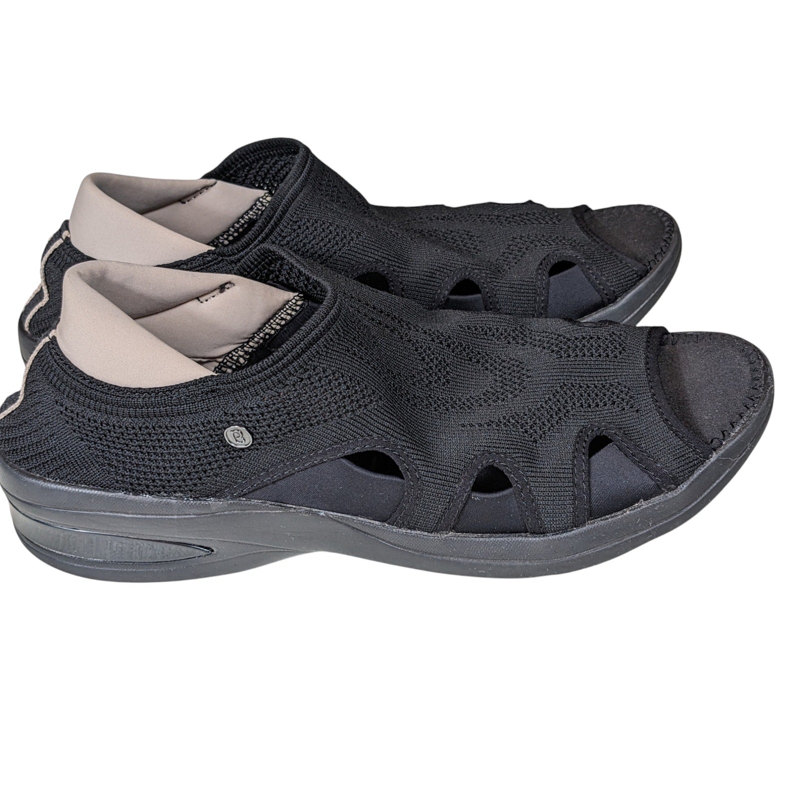 Bzees Shoes Womens 10M Open Toe Sandals Black Stretch Knit Lightweight Slip On
