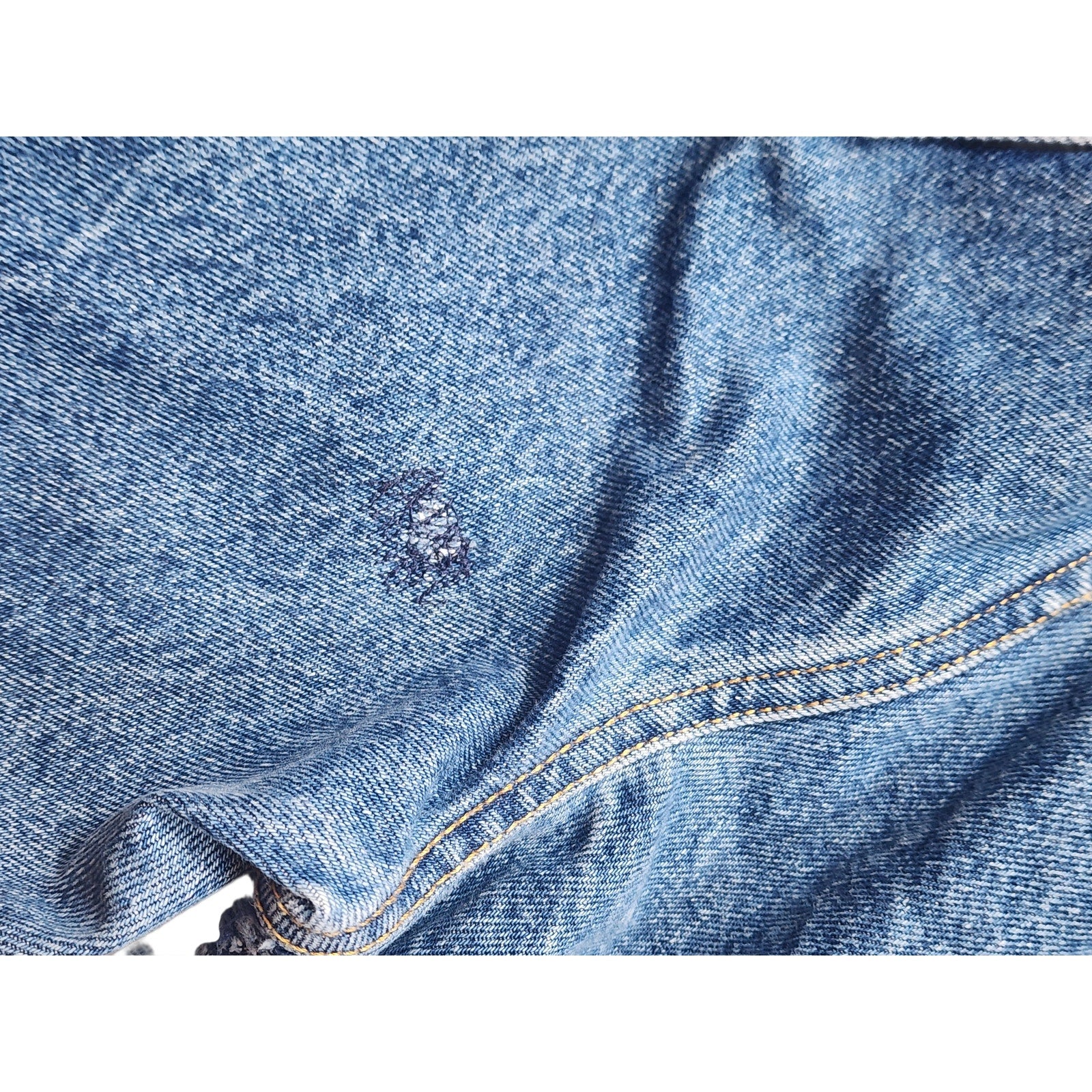 Pre-owned. Fair condition with some wear/scuffs and markings. Hand-stitched mending present in multiple areas and some wear/fading from use. Review photos for details.