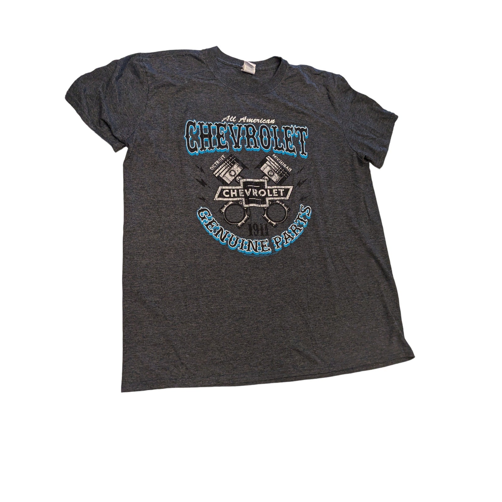 Chevrolet T Shirt Mens Size XL Gray Gildan Softstyle All American Genuine Parts Graphic Tee Ring Spun