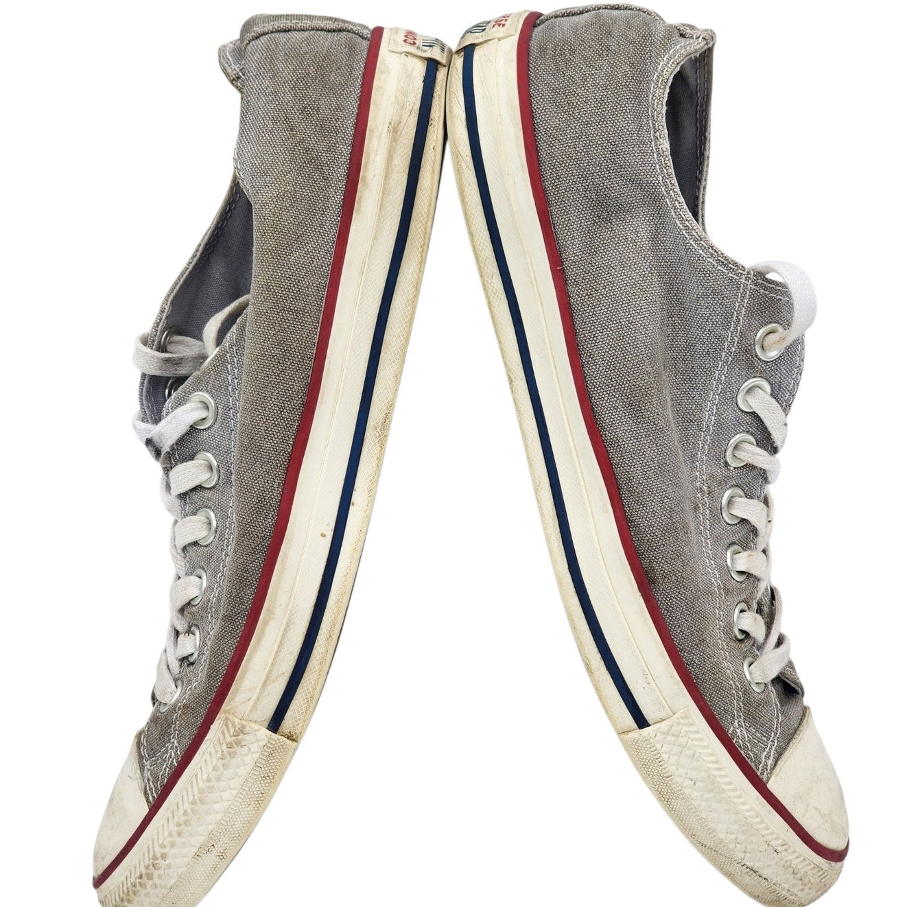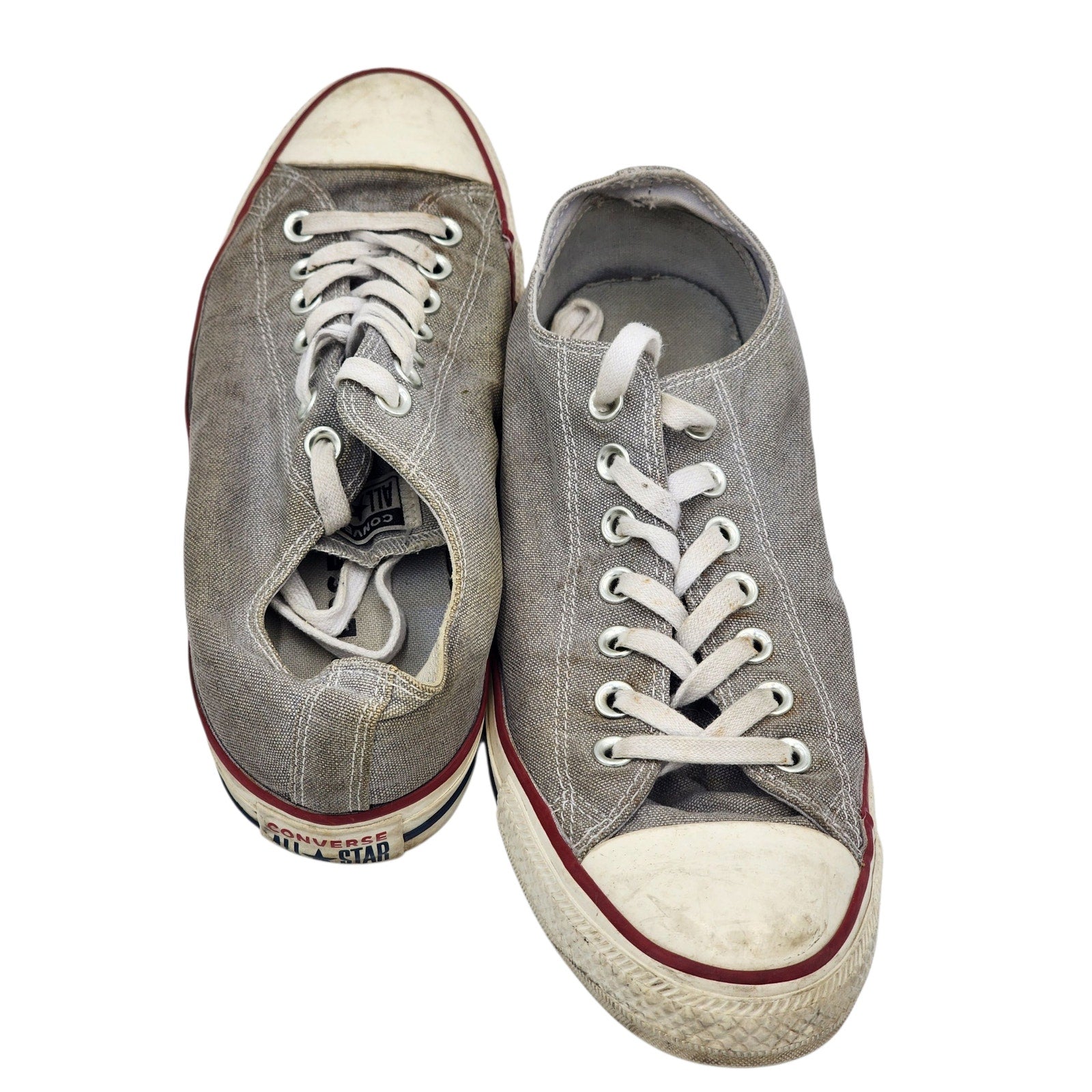 Converse All Star Low Tops Shoes Mens 8.5 Womens 10.5 Gray Distressed Canvas Lace Up Unisex Casual Sneakers Retro Skater Style 159541F