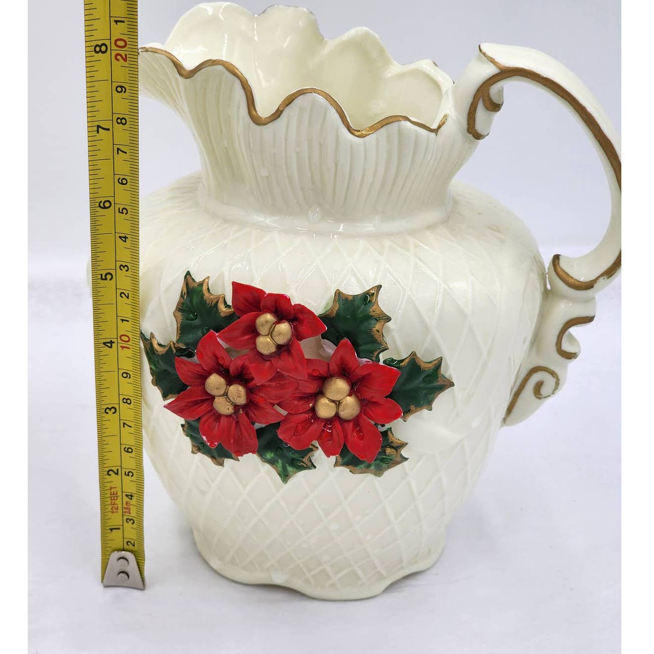 Crown Pitcher Poinsettia Pitcher Glazed Jade Christmas Set Of 2