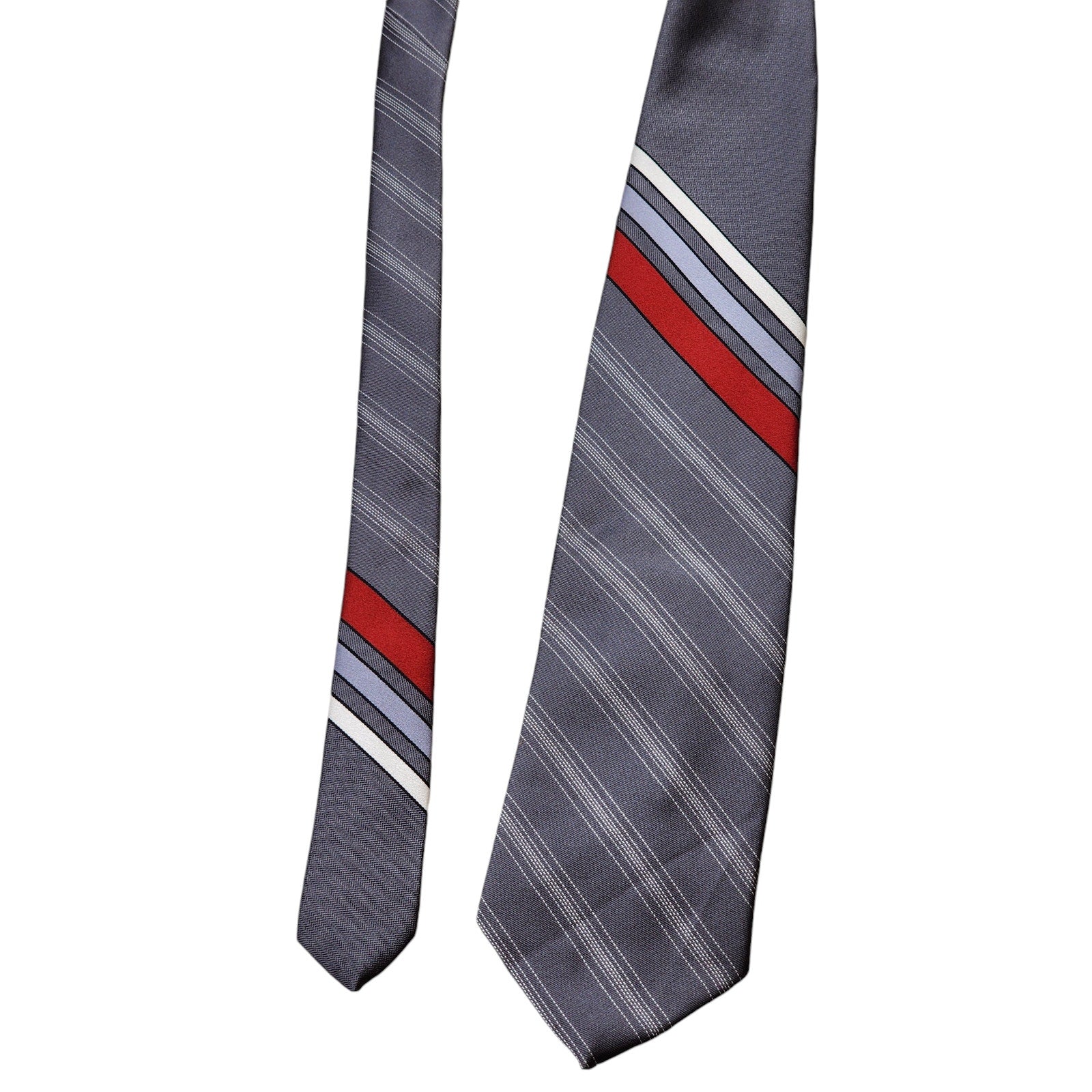 Damon Striped Mens Tie Gray Red Blue Business Formal Necktie Elegant Professional