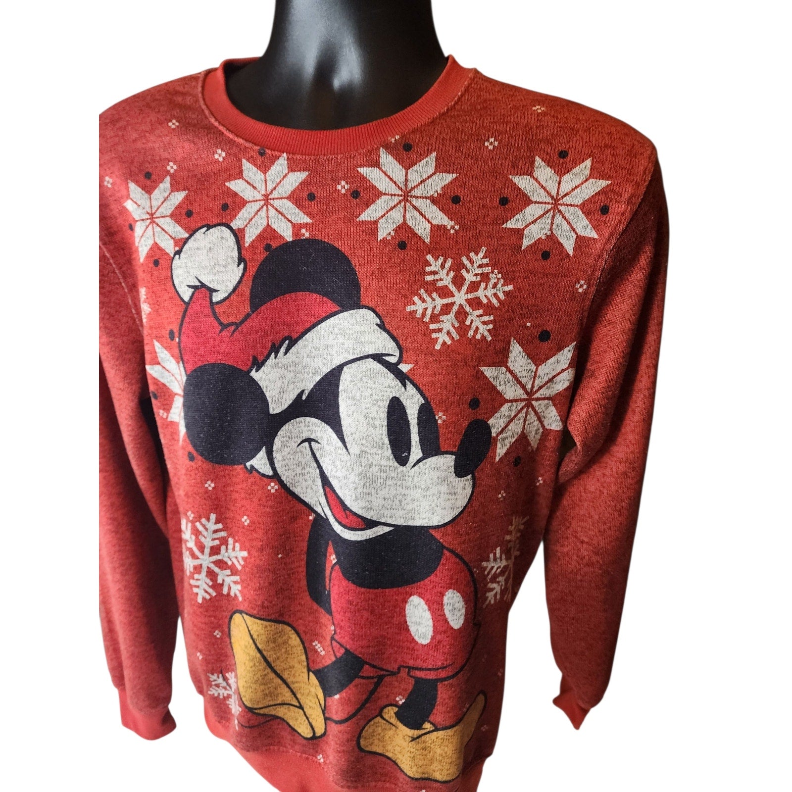 Disney Mickey Mouse Christmas Sweater Mens Small Womens Medium Santa Hat Snowflake Graphic Ugly Holiday Pullover Sweatshirt Vintage Style