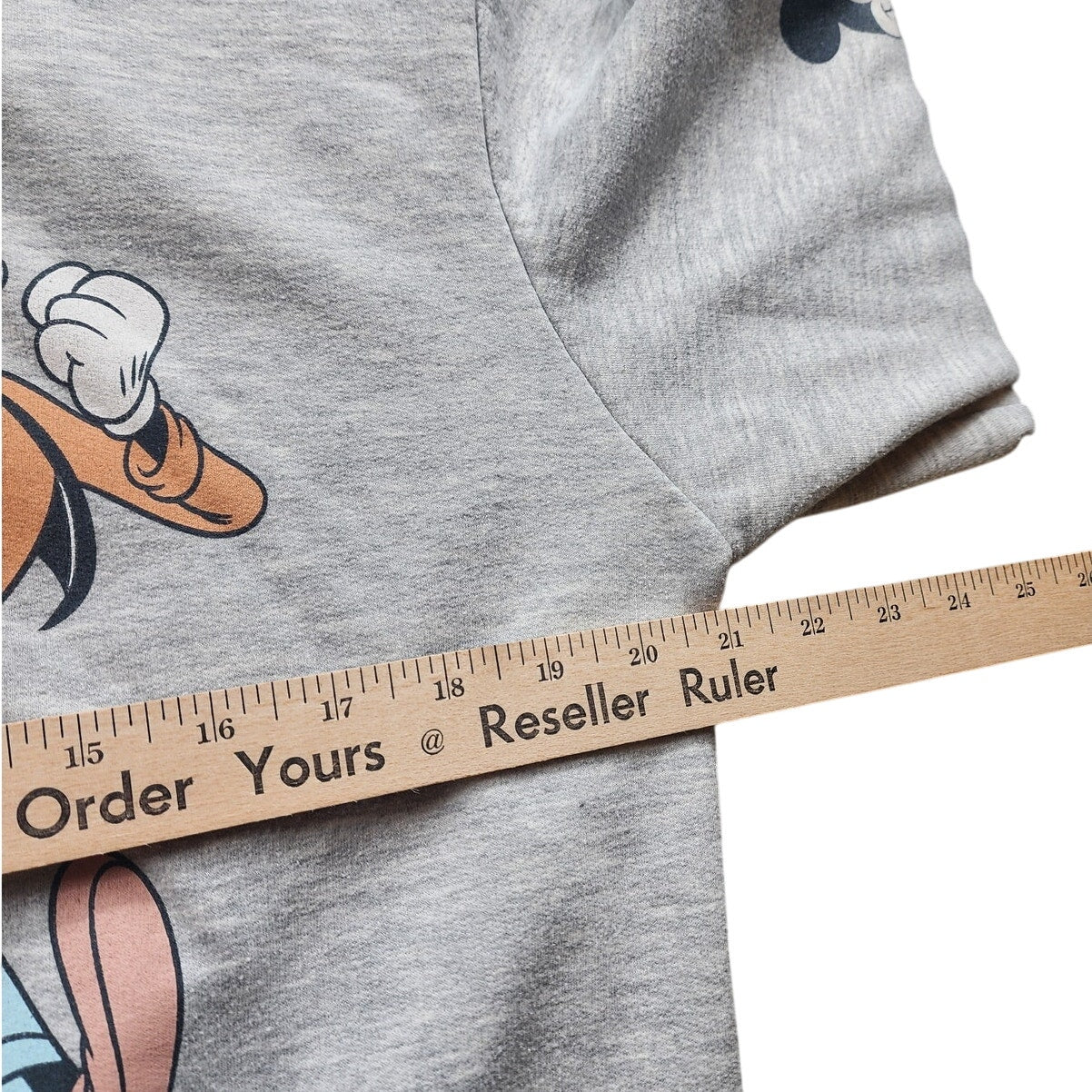 Disney Mickey Mouse Friends Hoodie Youth XL 15-17 Mens Small Womens Medium Gray Pullover Sweatshirt Minnie Donald Goofy Pluto Gray Pullover