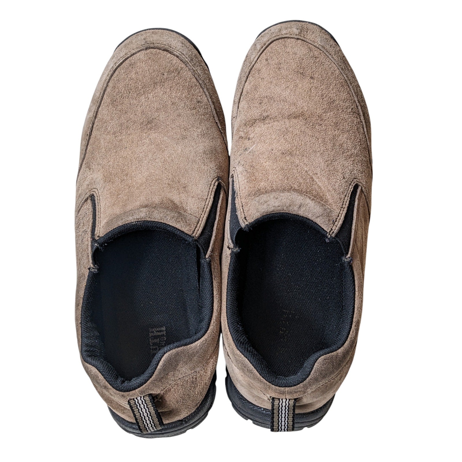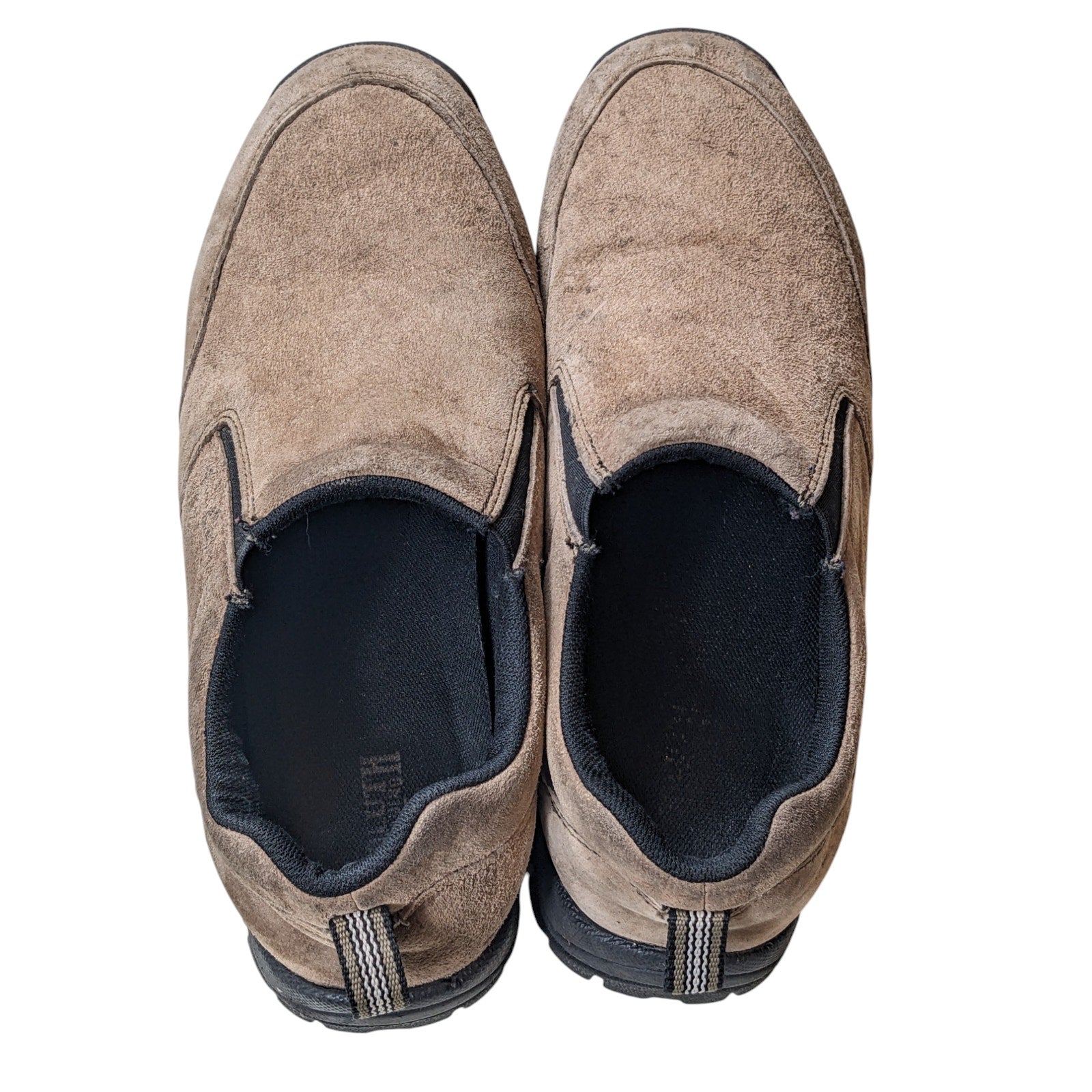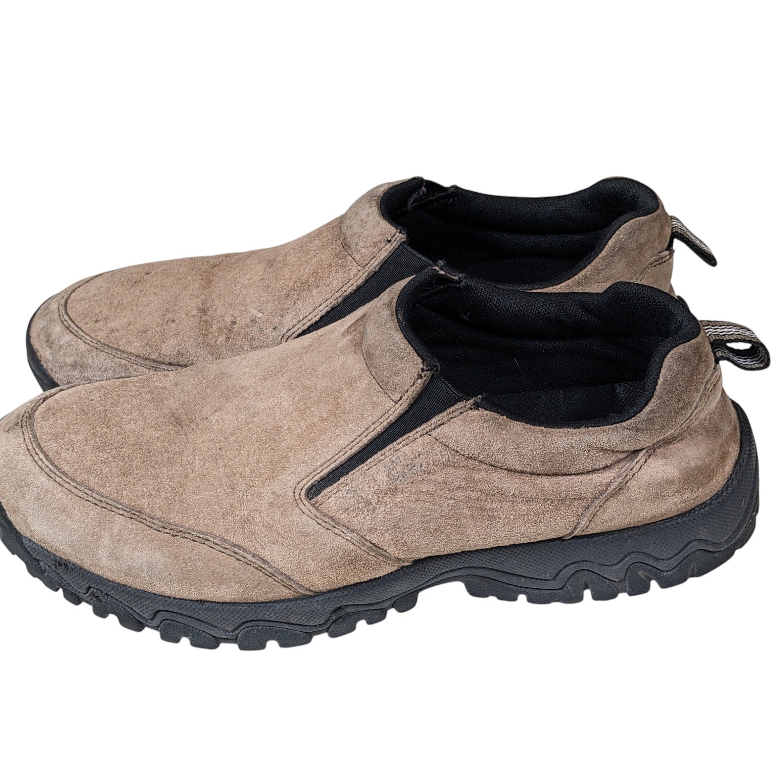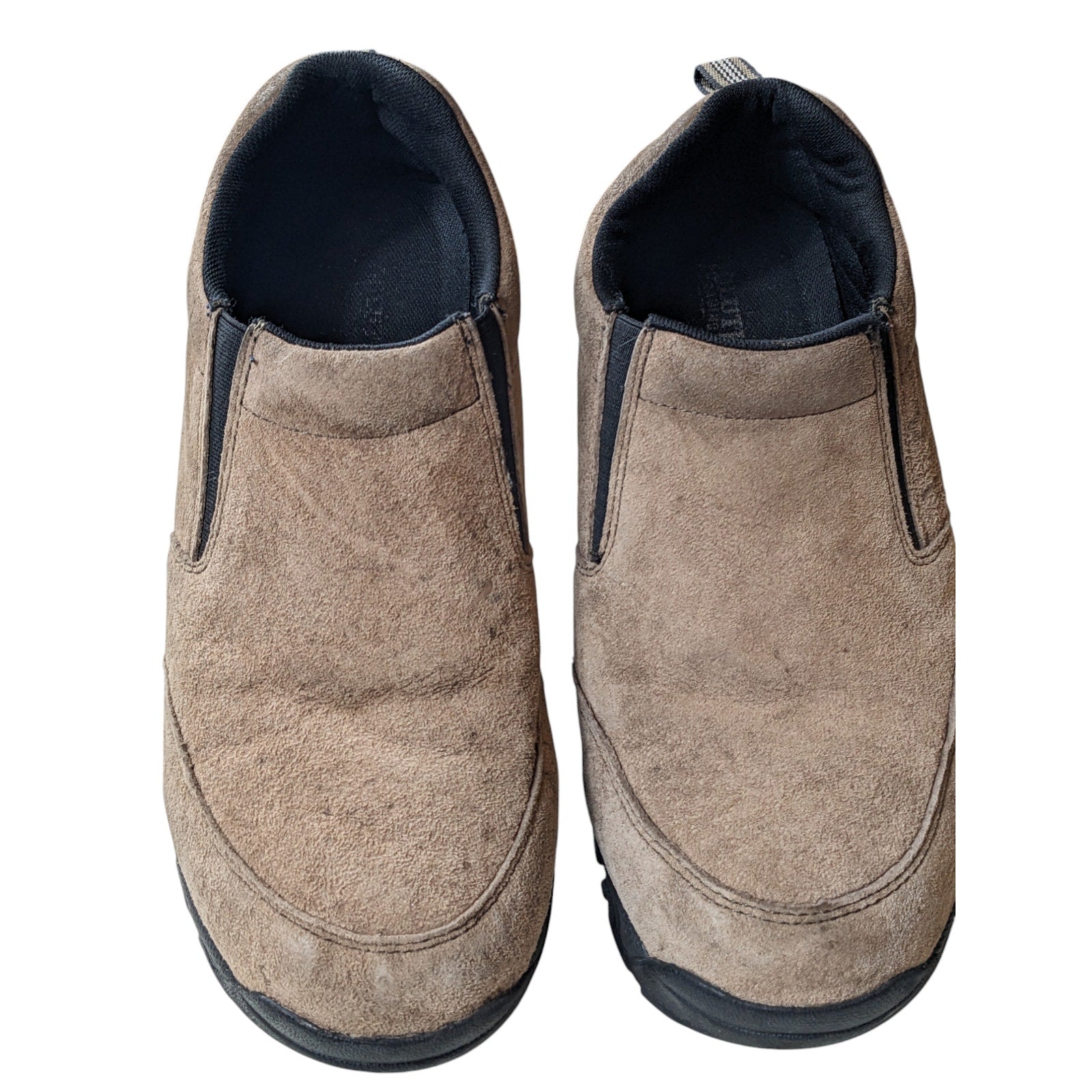 Duluth Trading Slip On Shoes Mens 11 Medium Brown Suede Work Hiking Rugged Slip Resistant Mocs