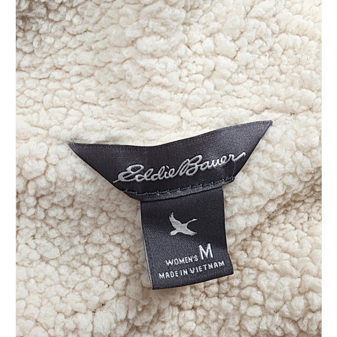 Eddie Bauer Buffalo Plaid Sherpa Lined Open Front Jacket Womens Medium Cozy Cabin Flannel Shacket Cardigan Layering Lumberjack Lodge Loungewear Cottagecore
