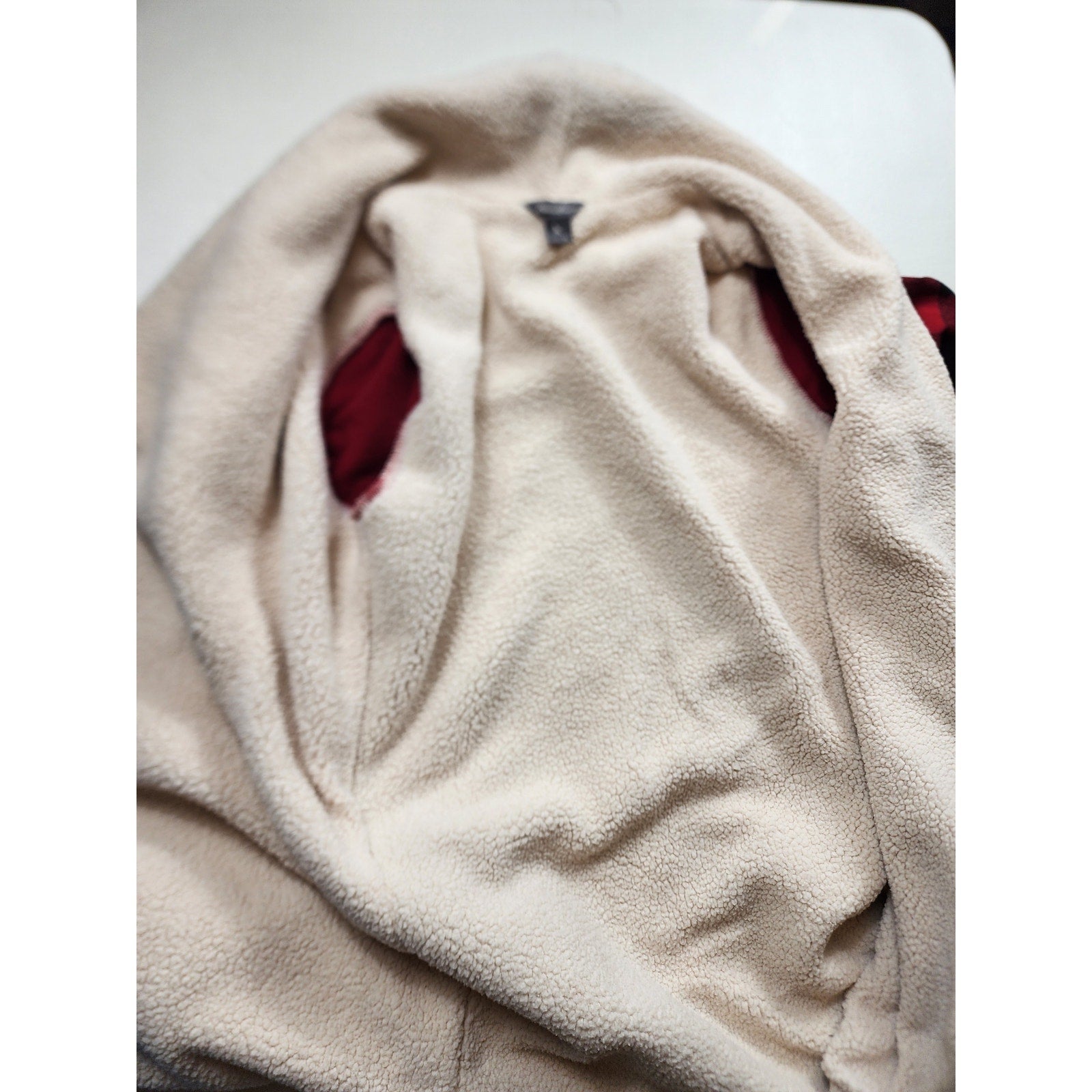 Eddie Bauer Buffalo Plaid Sherpa Lined Open Jacket Medium Cabin Flannel Shacket