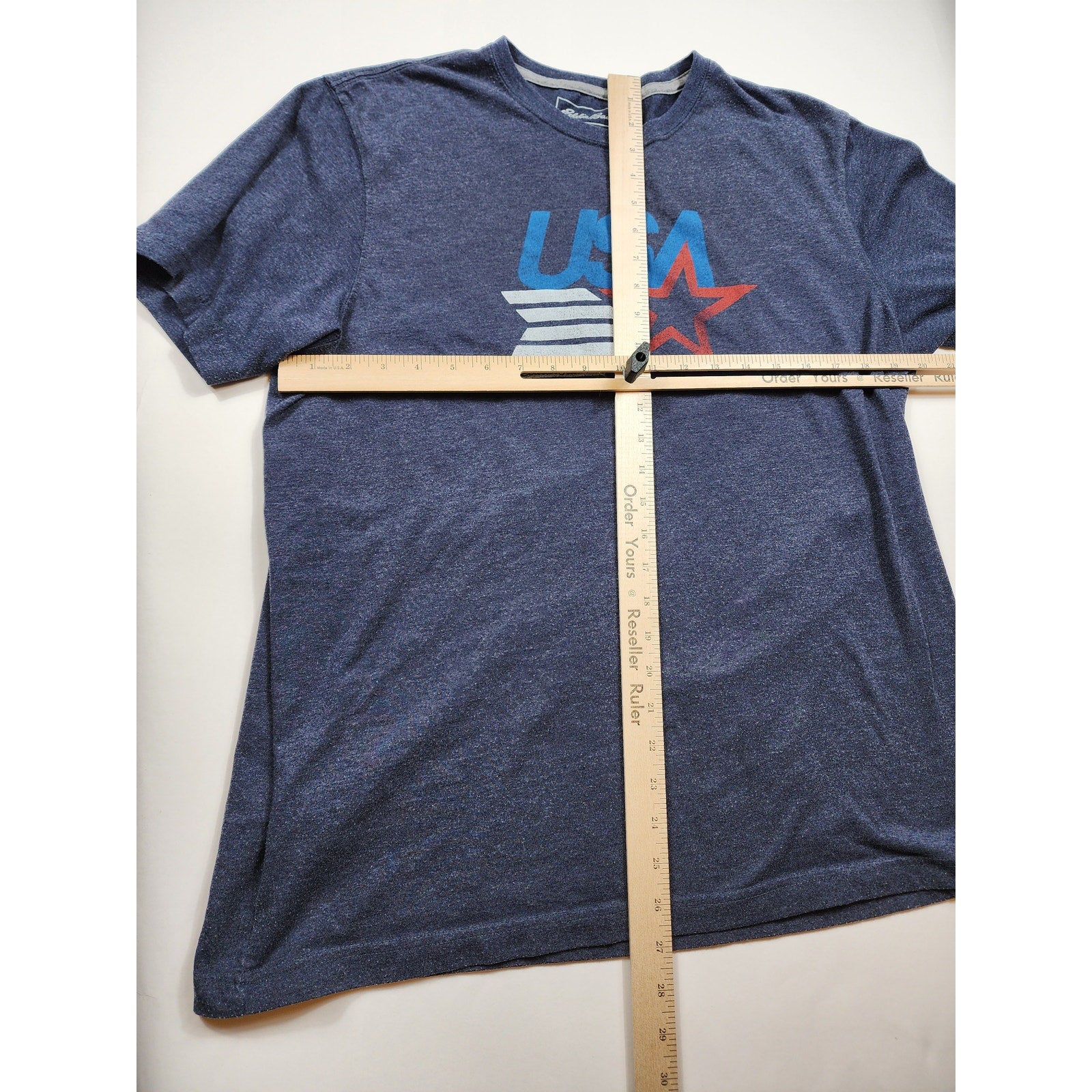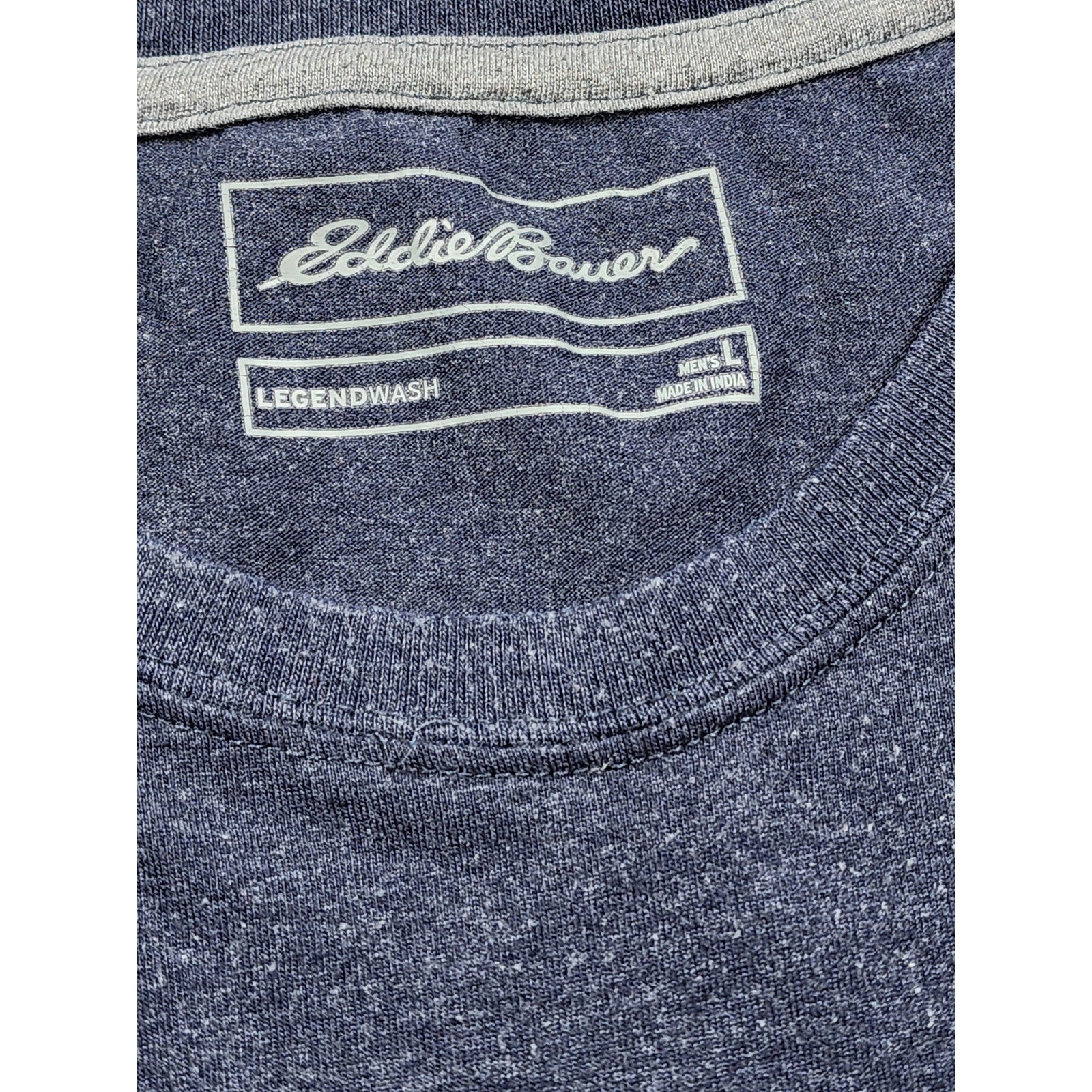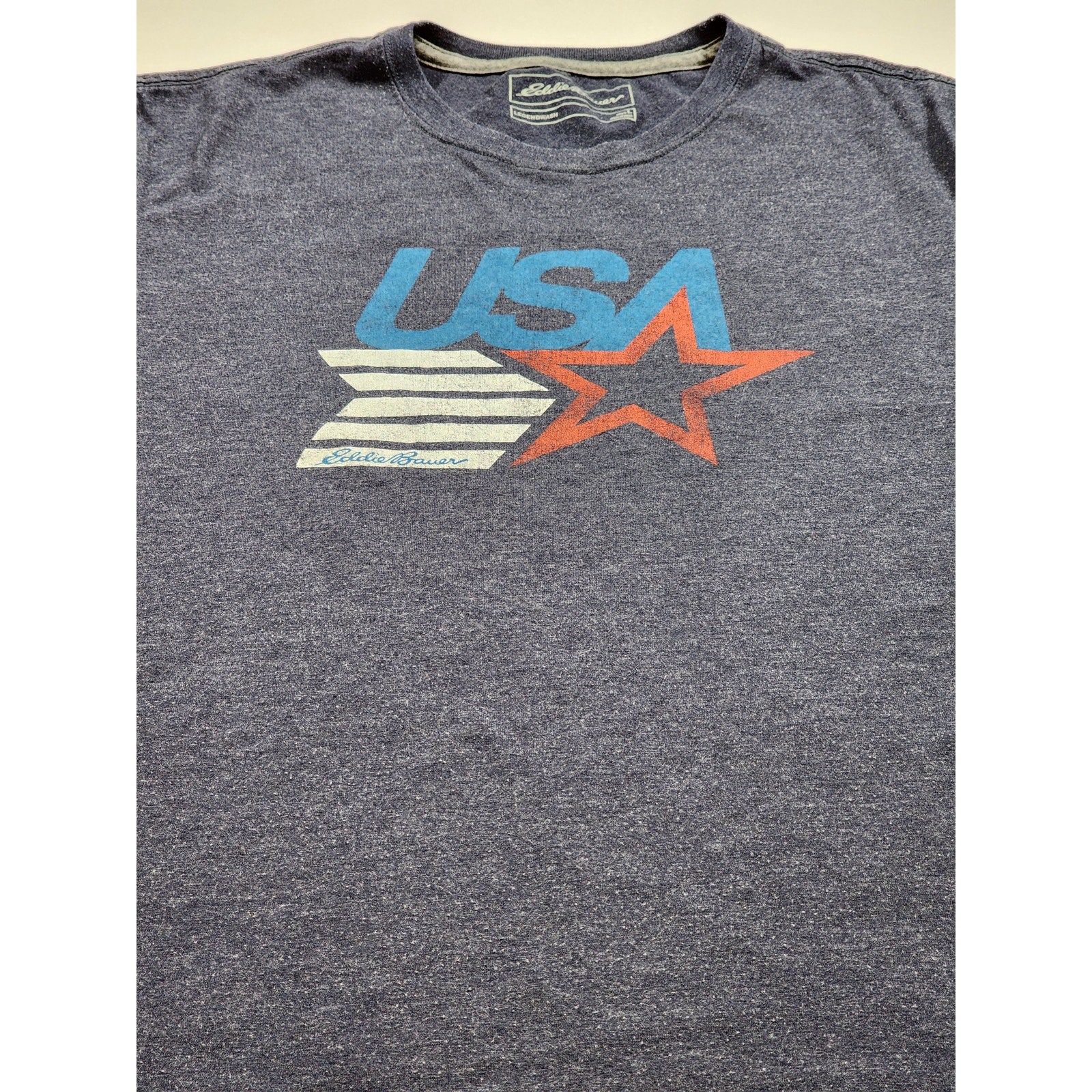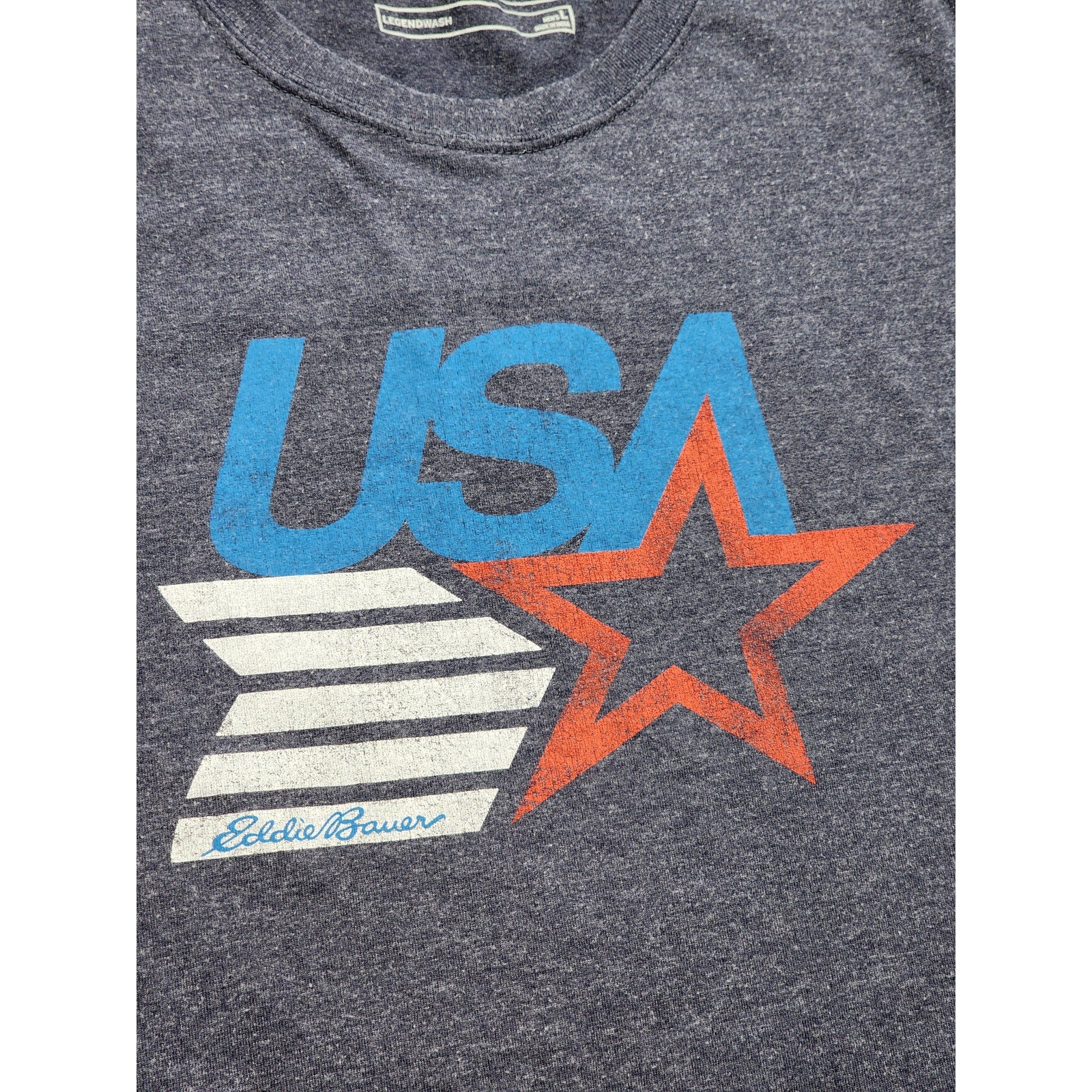 Eddie Bauer USA Shirt Mens Size Large Legend Wash Blue Distressed Vintage Style Crew Neck Classic Short Sleeve Patriotic USA Star