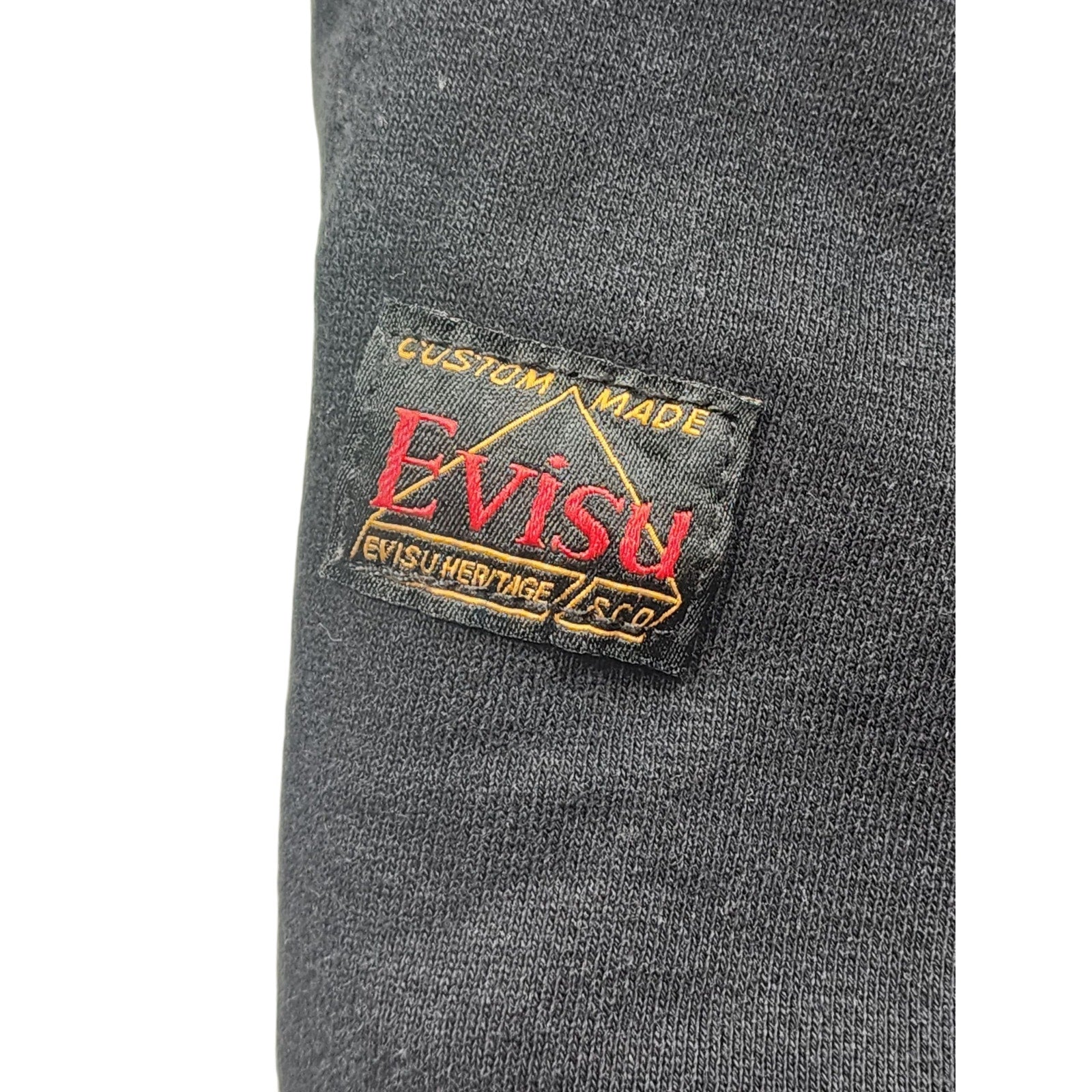 EVISU Heritage Custom Made Sweatpants Mens Medium Black Gold Logo Joggers Streetwear Graphic Print Urban Japanese Streetwear Seagull