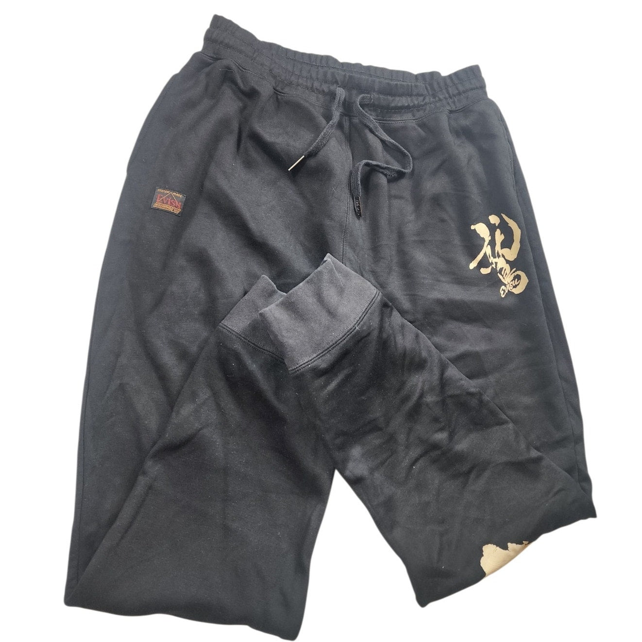 Evisu Heritage Sweatpants Gold Brushstroke Logo Joggers Mens XXL Black Streetwear Casual Lounge Pants