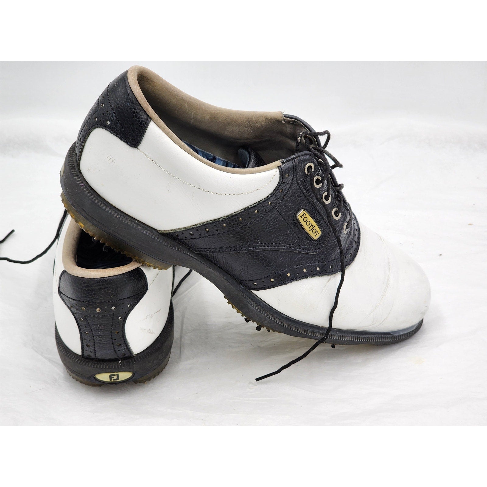 FootJoy Golf Shoes DryJoy Mens Size 9M Black White Softspikes OptiFlex Athletic Lace Up Cleats 53597