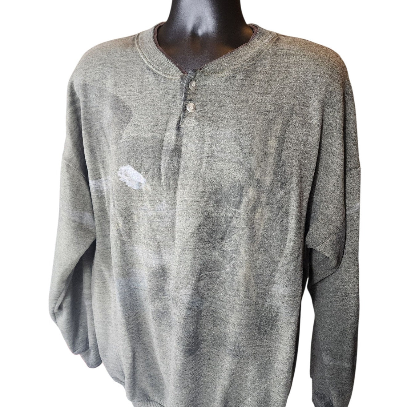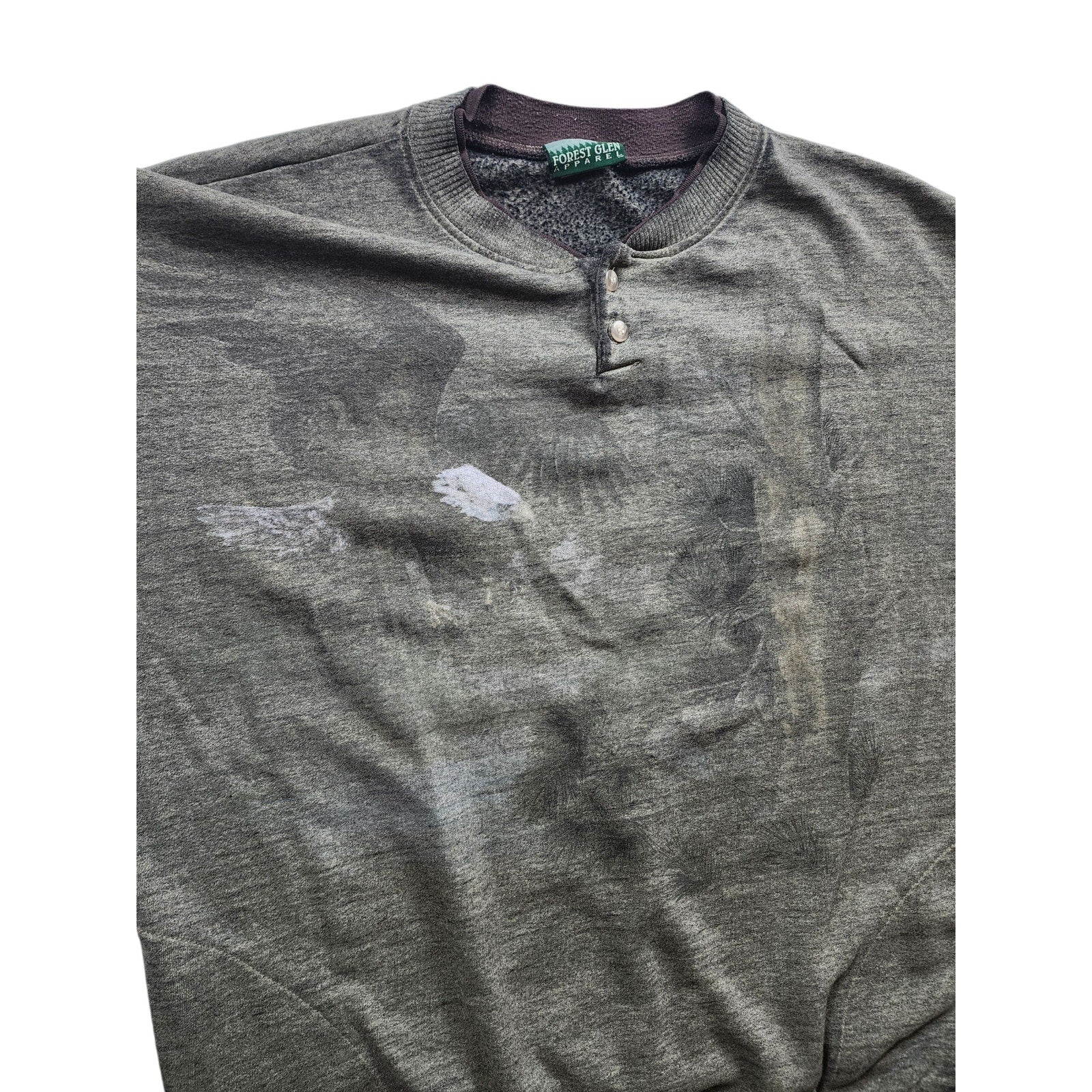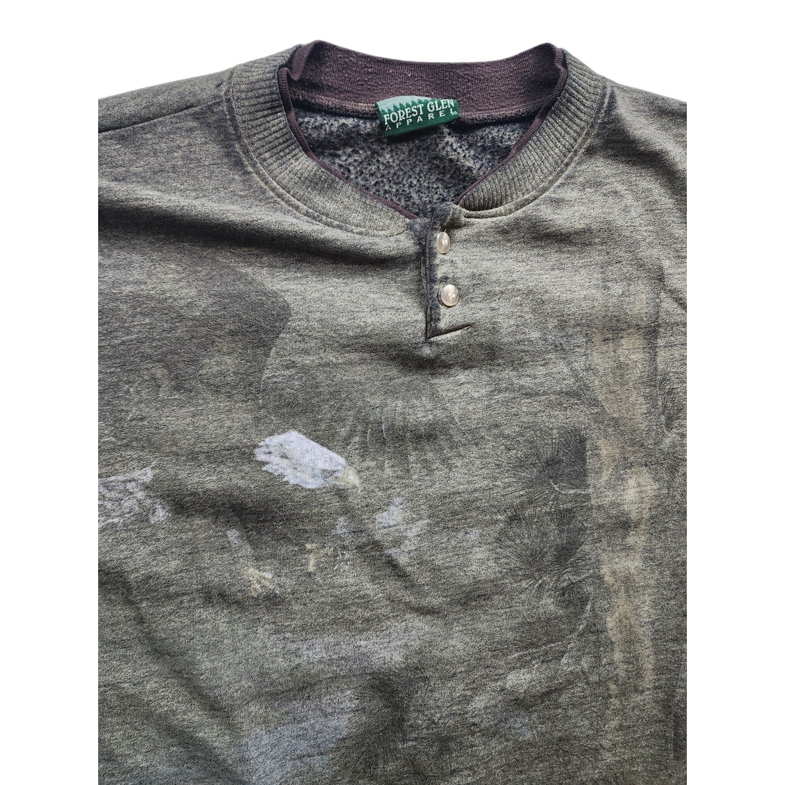 Forest Glen Apparel Henley Shirt Mens XL Long Sleeve Sweatshirt Sweater Eagle Wildlife Print Pullover Vintage Outdoor Nature