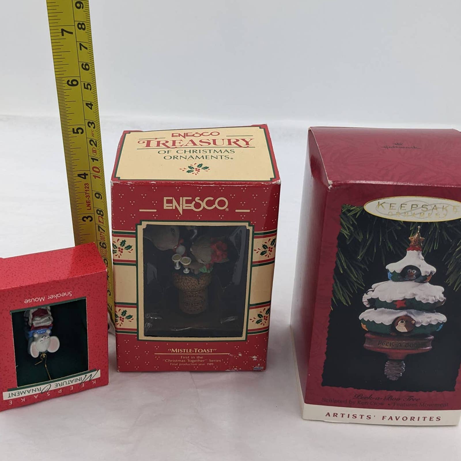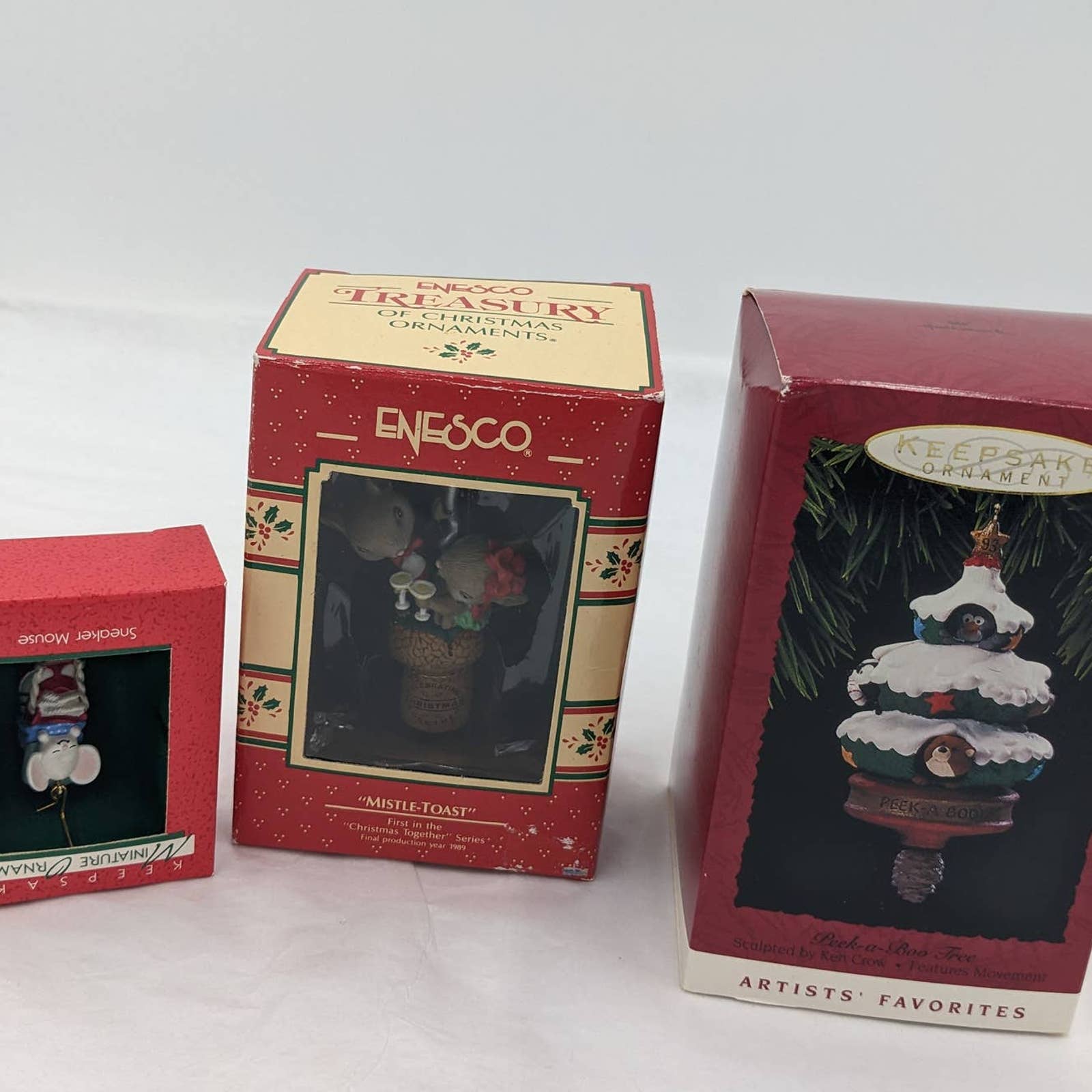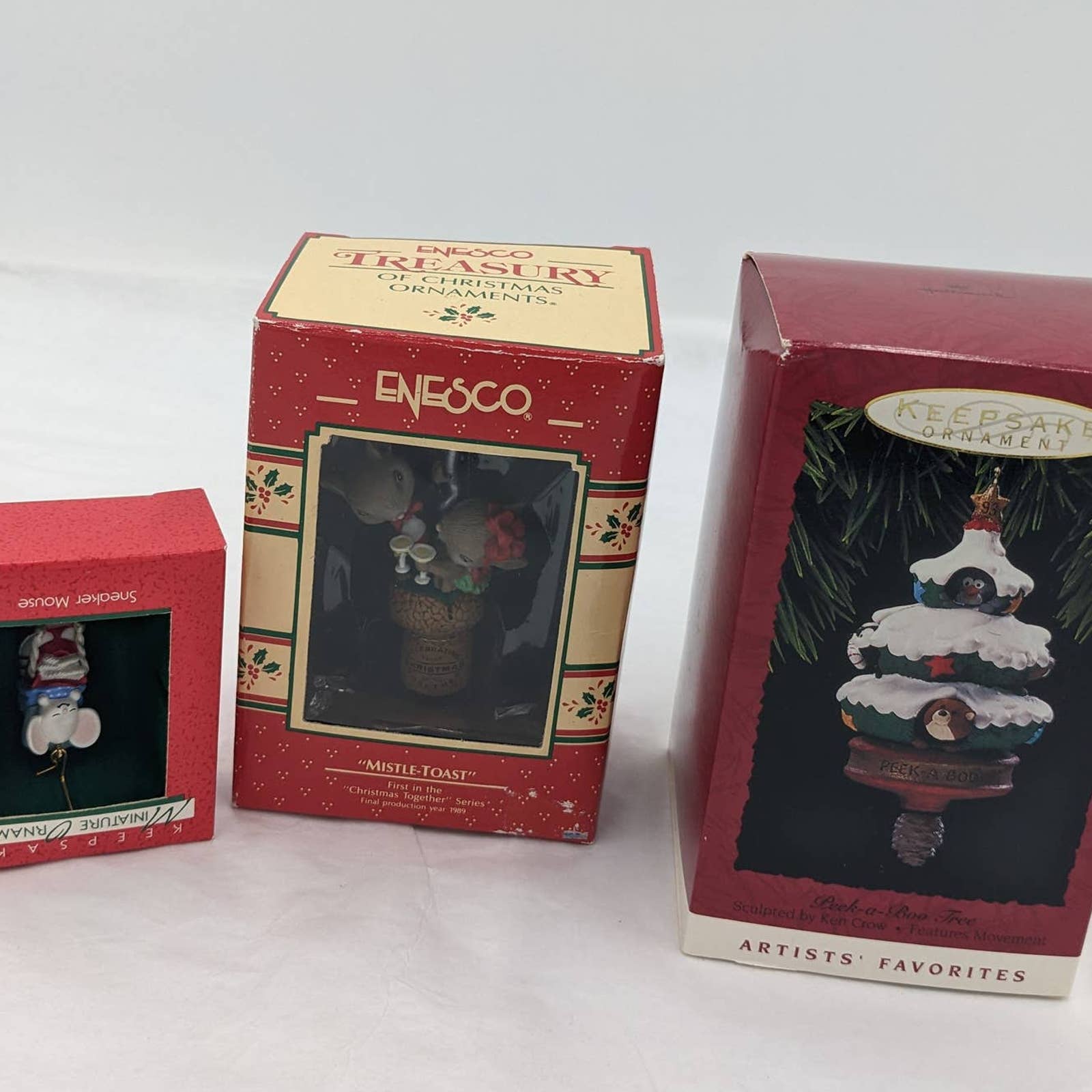 Hallmark Ornaments Vintage Enesco Mistle-Toast Christmas Peek a Boo W/Boxes
