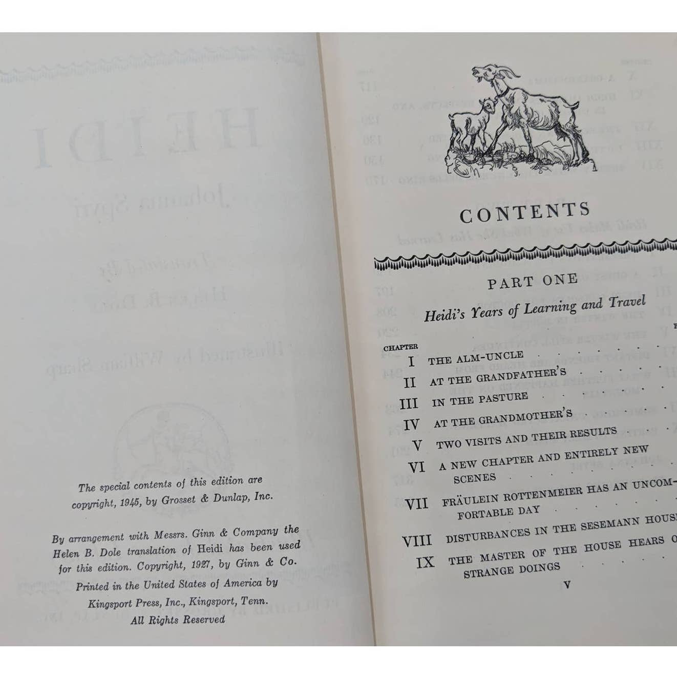 Heidi By Johanna Spyri Illustrated By William Sharp Junior Vintage Book 1945
