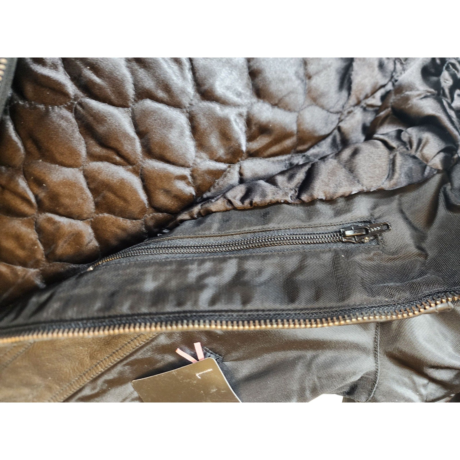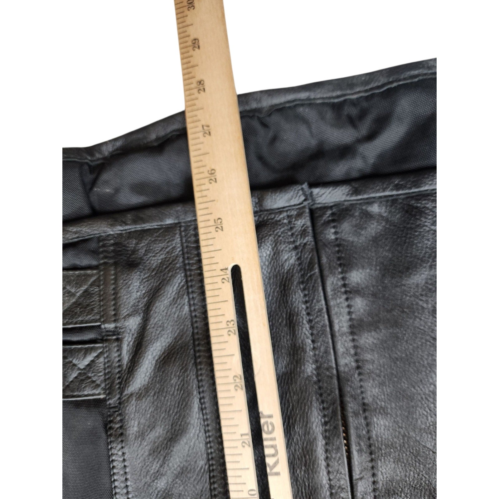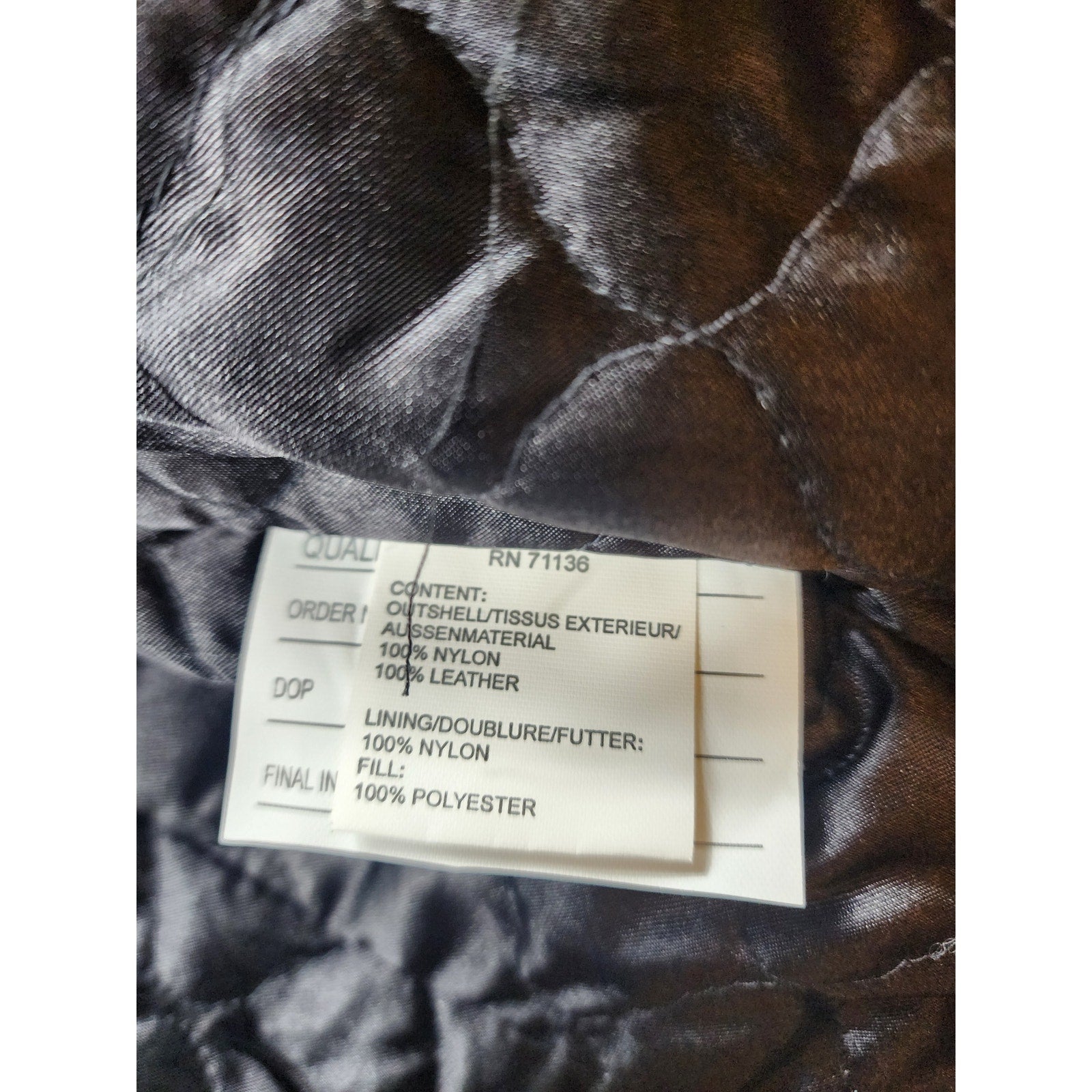 Material: Leather (outer), quilted lining