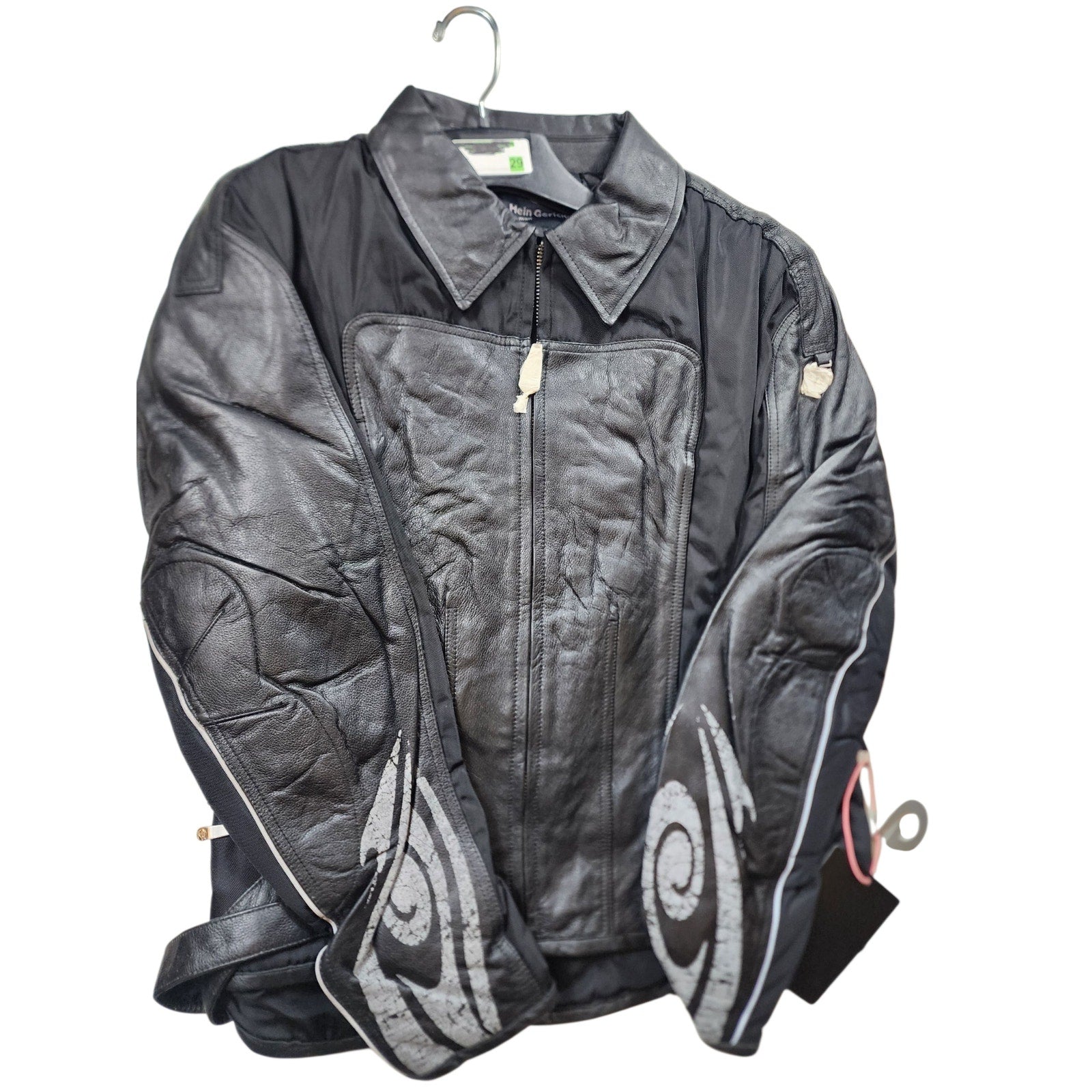 Hein Gericke Leather Motorcycle Jacket Womens 16 Black Protective Padded Biker Riding Gear Reflective Tribal Design