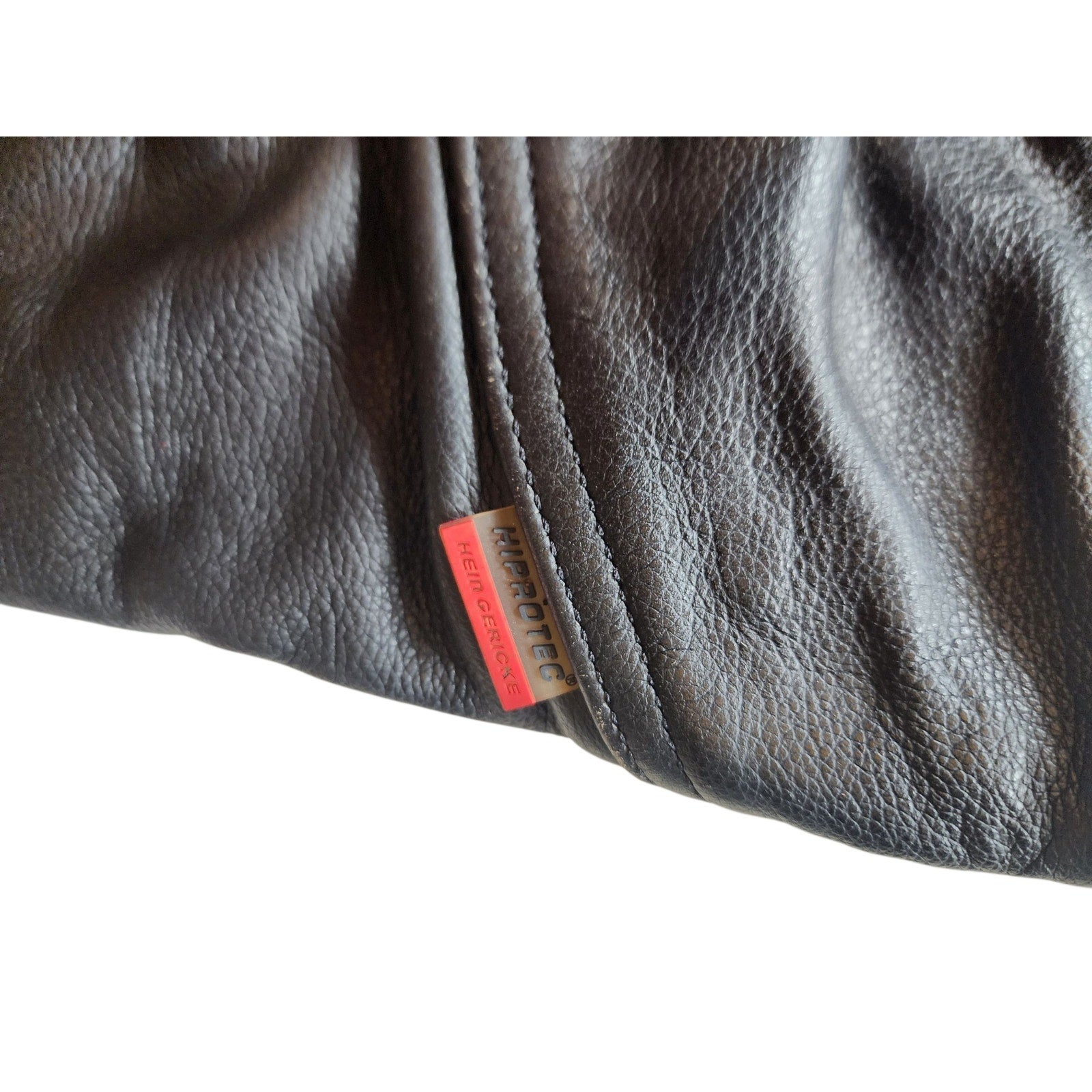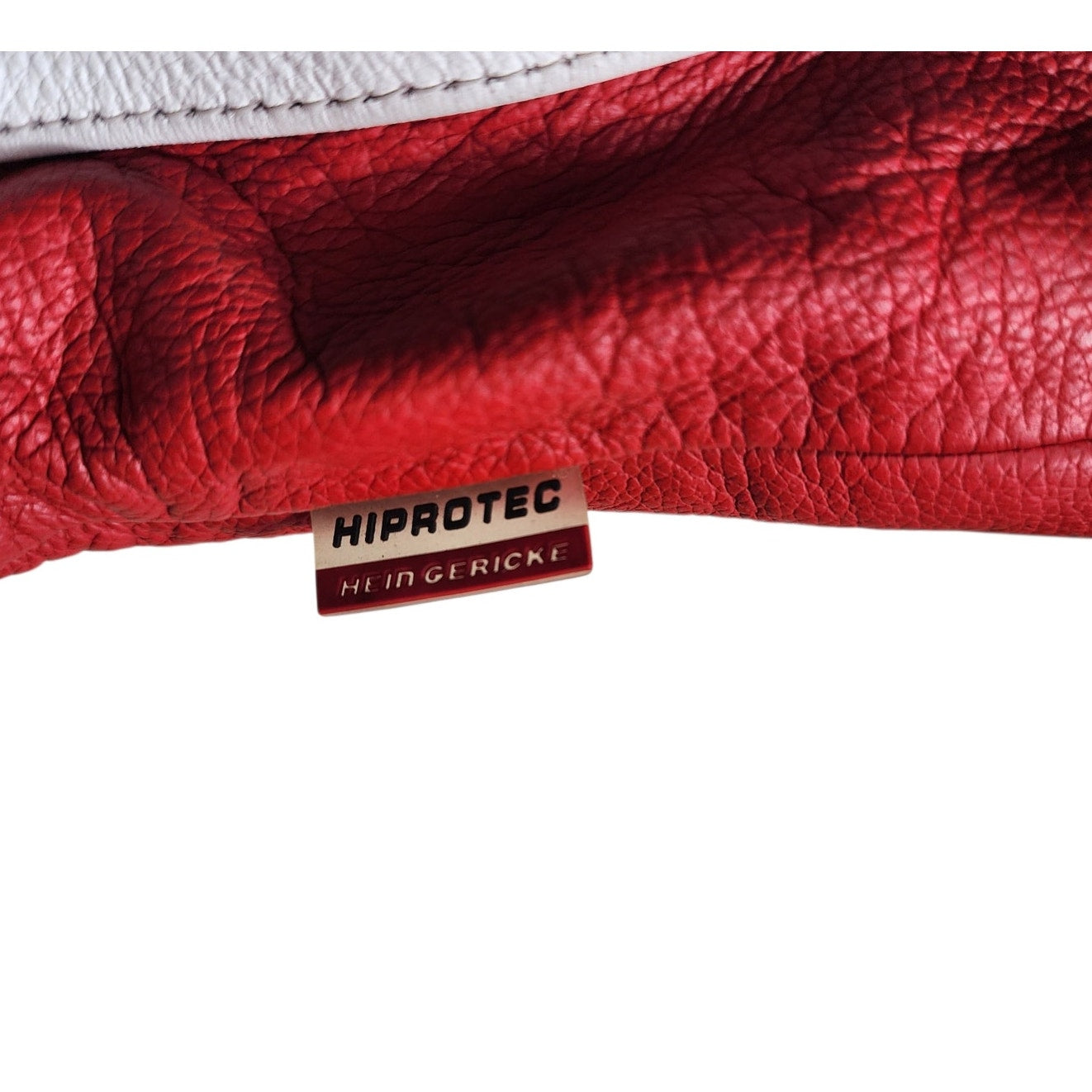 Hein Gericke PSR Hiprotec motorcycle racing suit crafted from premium leather, offering full-body protection for track or street riders. Features perforated panels for ventilation, stretch zones for comfort, and reinforced knee/elbow areas. Zip-together design for jacket and pants. Perfect for sportbike enthusiasts or collectors of quality vintage riding gear.