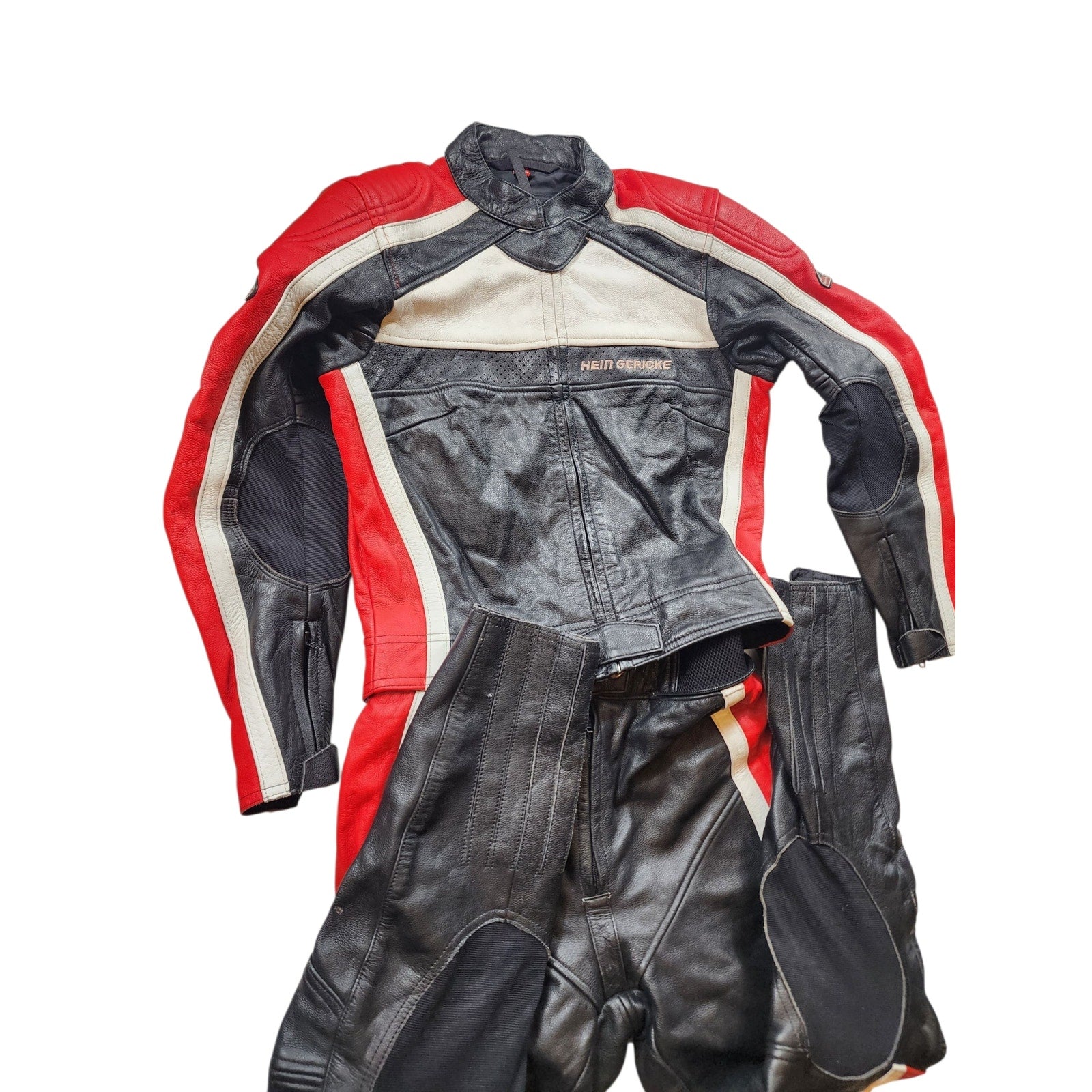 Hein Gericke PSR Hiprotec Leather Motorcycle Racing Suit Womens EU 36 US 4 Small Slim Fit Black Red White Biker Moto Track Sportbike Protective 2 Piece German