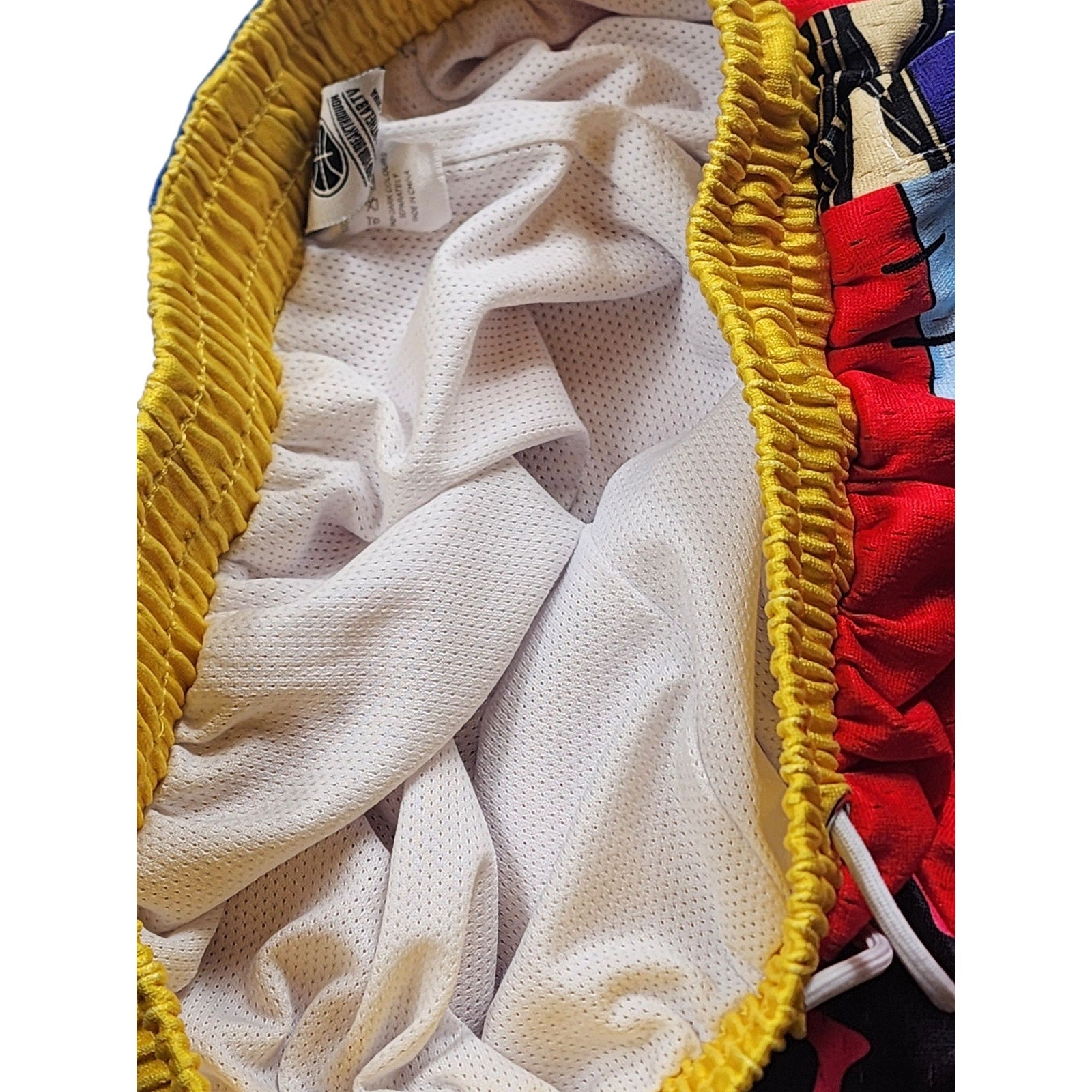 In The Lab Mens Small/Medium Basketball Shorts Graphic Print Mesh Sports Shorts | Red Yellow Elastic Waist Activewear