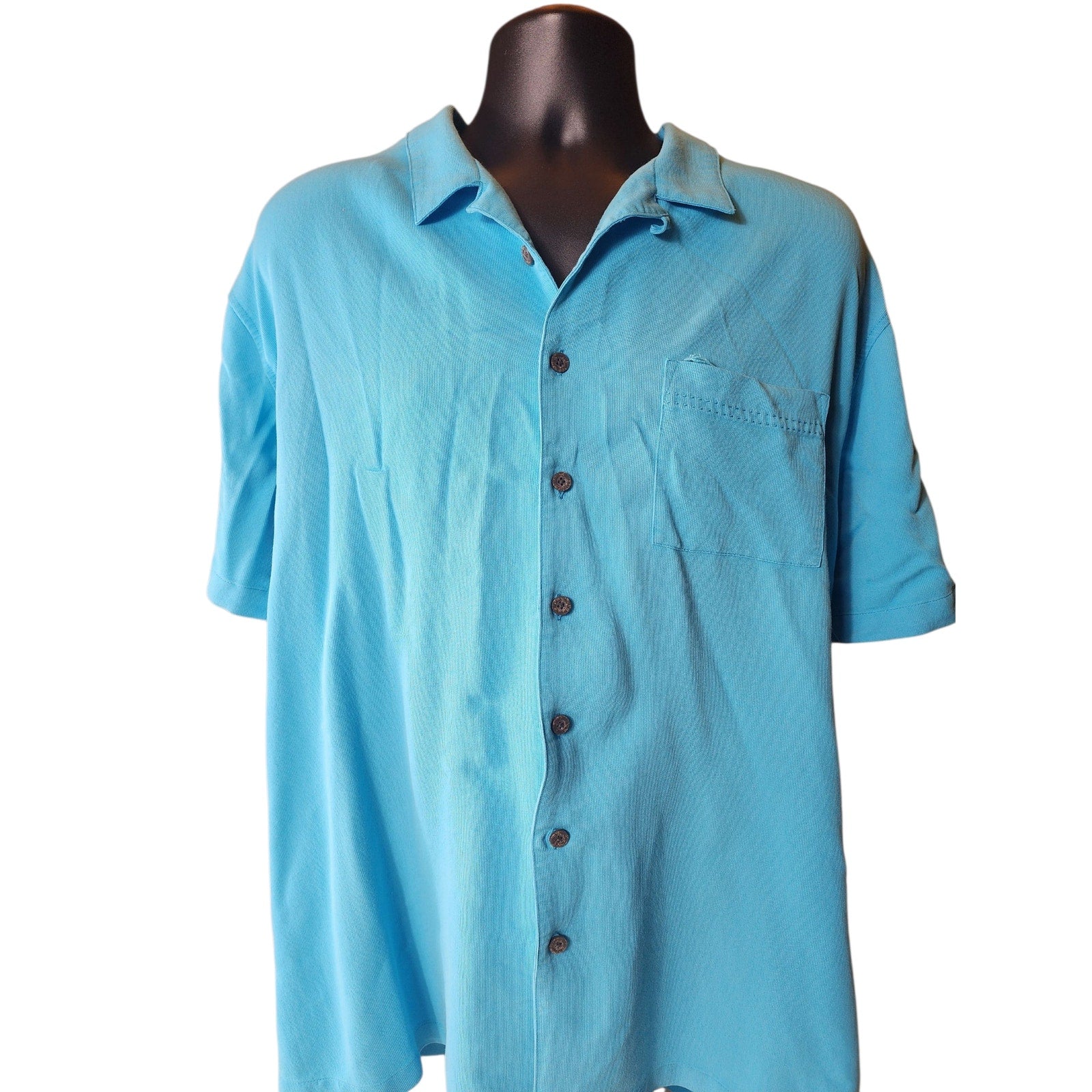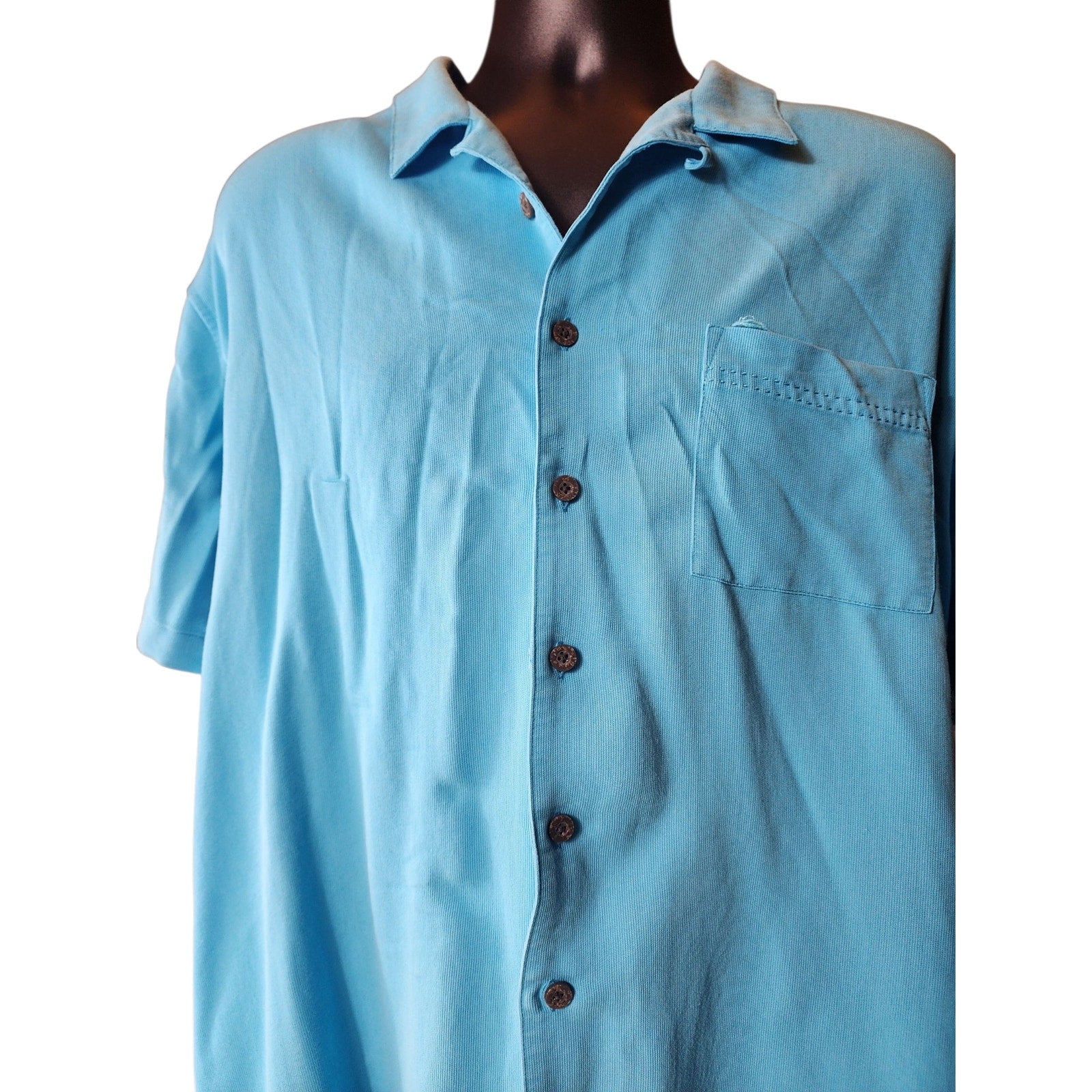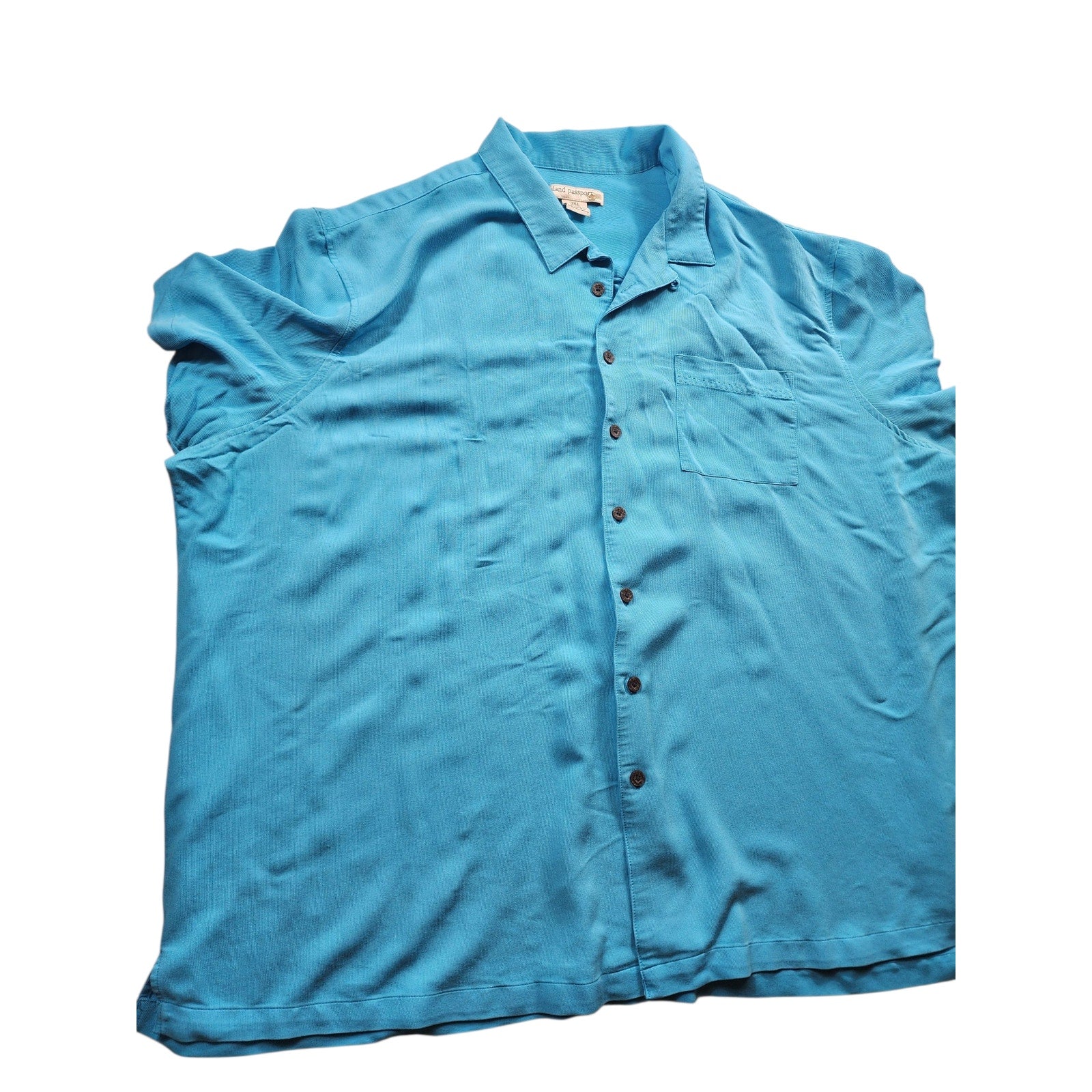 Island Passport Shirt Mens 3XL Aqua Blue Short Sleeve Button Front Rayon Blend Casual Lightweight Summer Cruise Resort Wear Camp Collar Beach Vacation Tropical Vibes