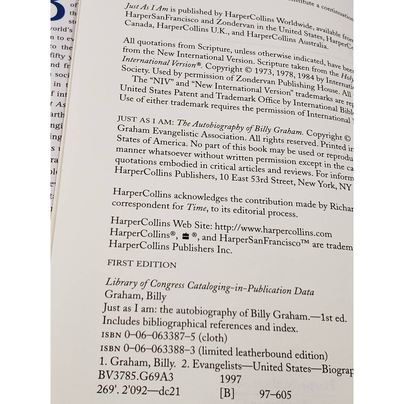 Just As I Am: The Autobiography of Billy Graham Hardcover First Edition