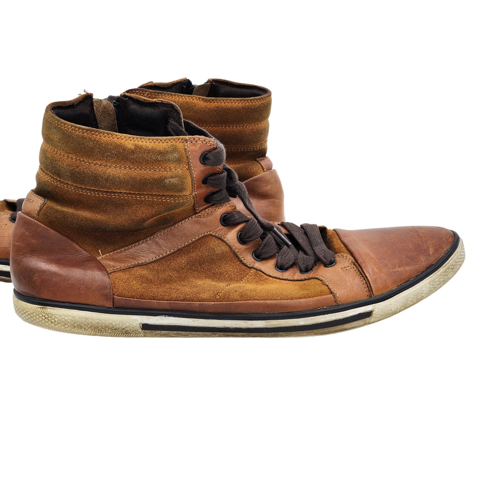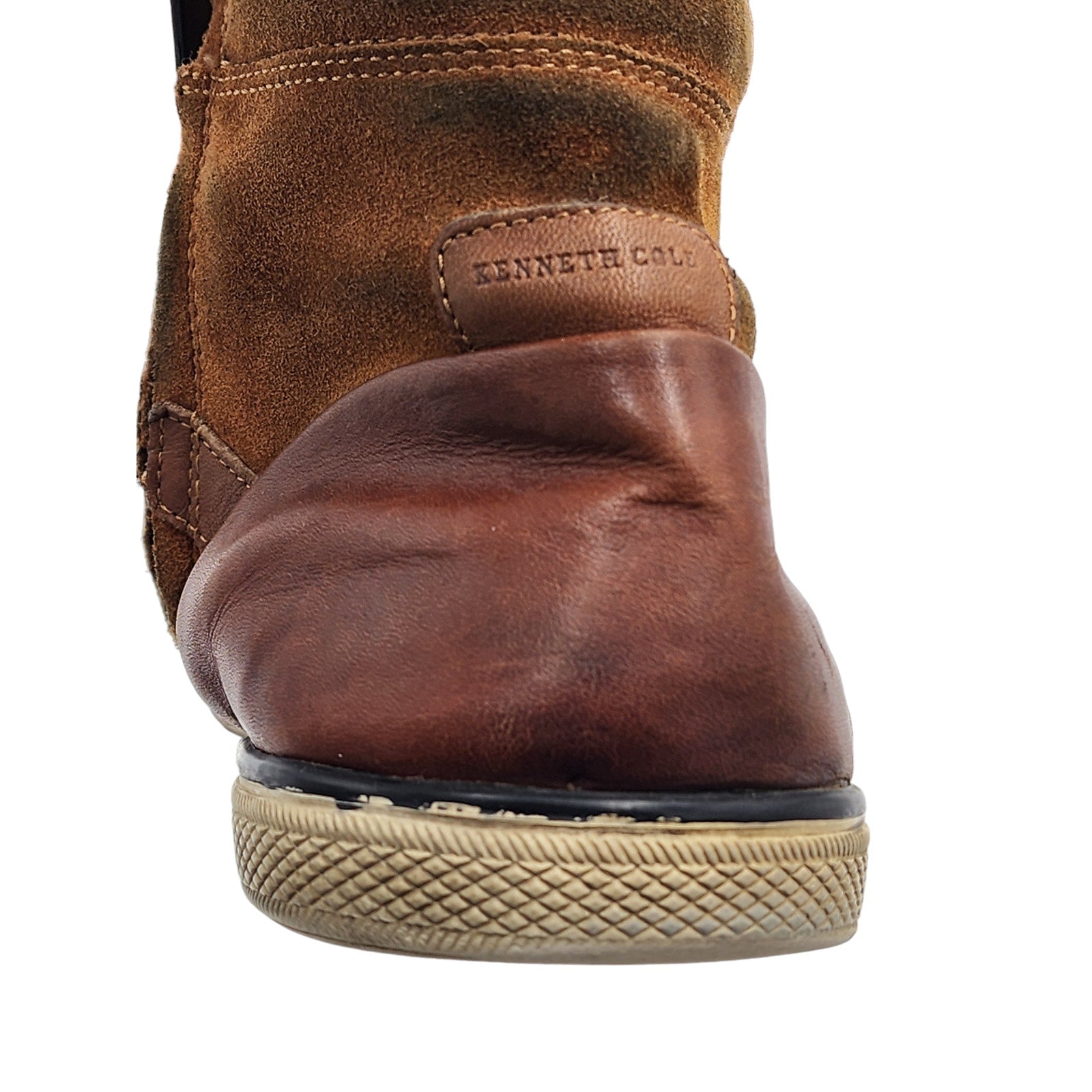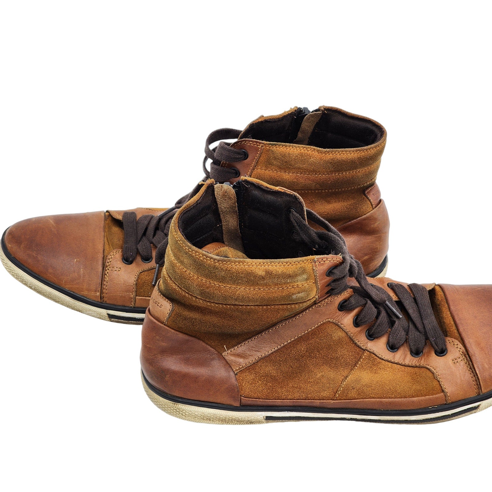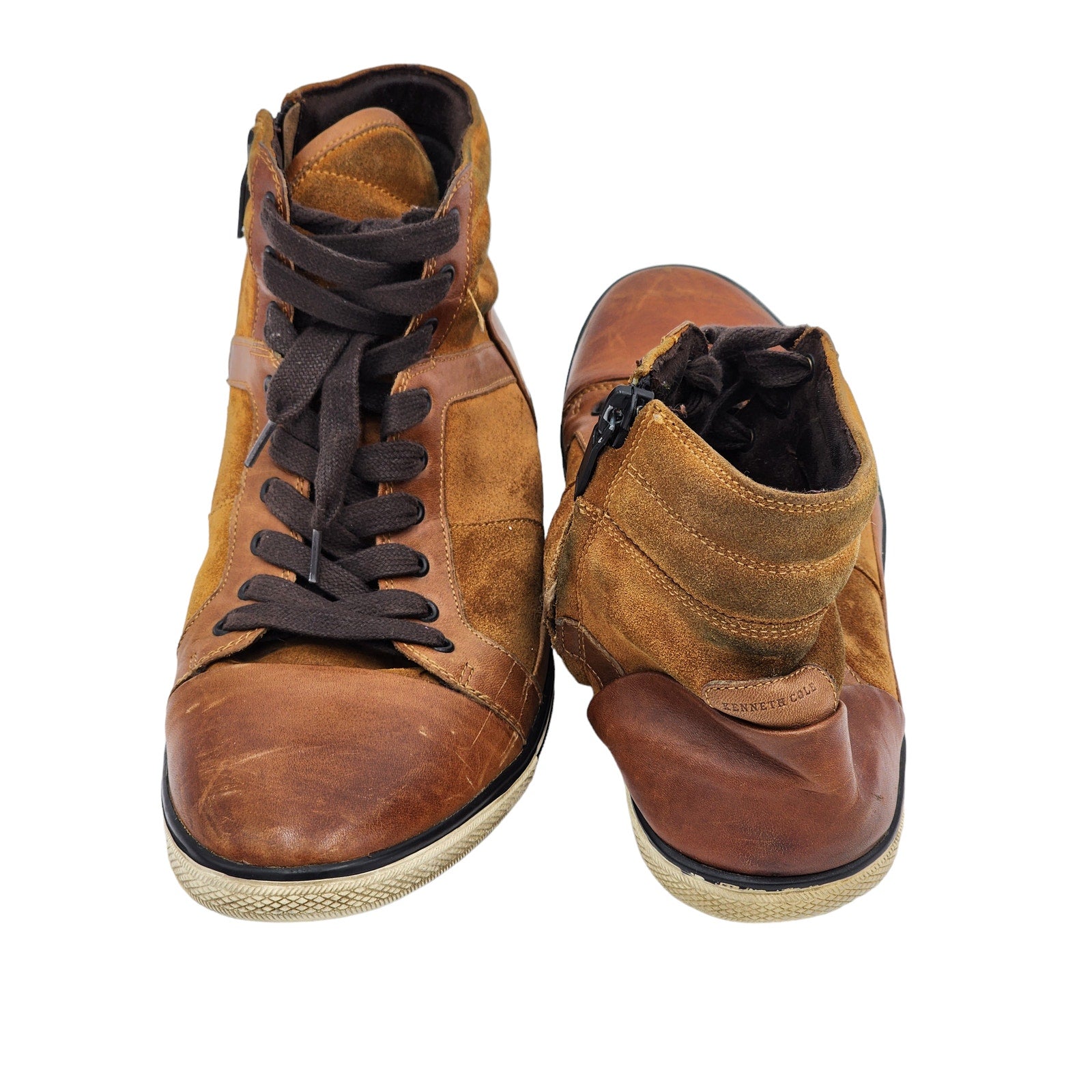 Kenneth Cole Shoes Mens Size 12M Sun Down High Top Sneakers Brown Leather Suede Upper Lace Up Side Zippers Stylish Streetwear
