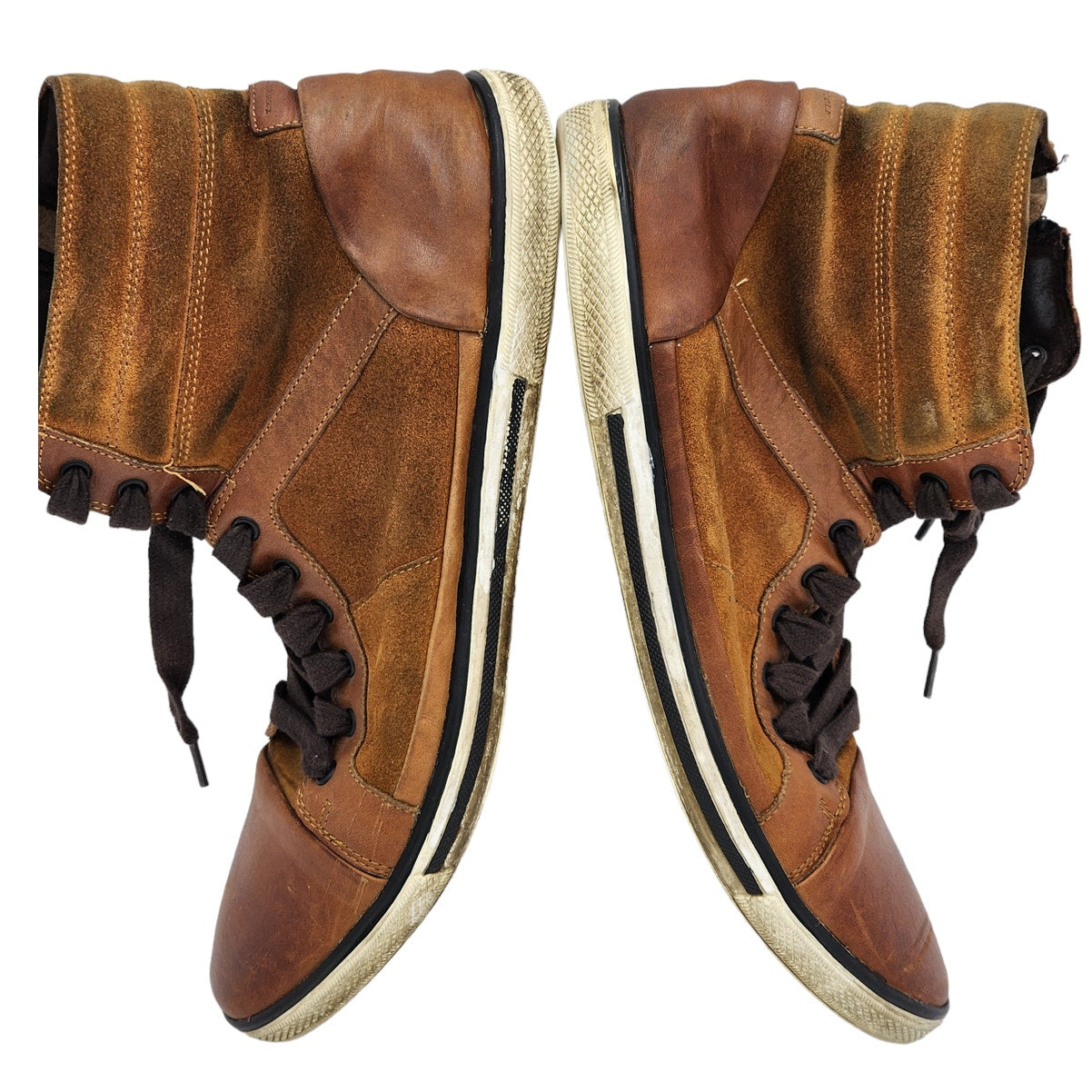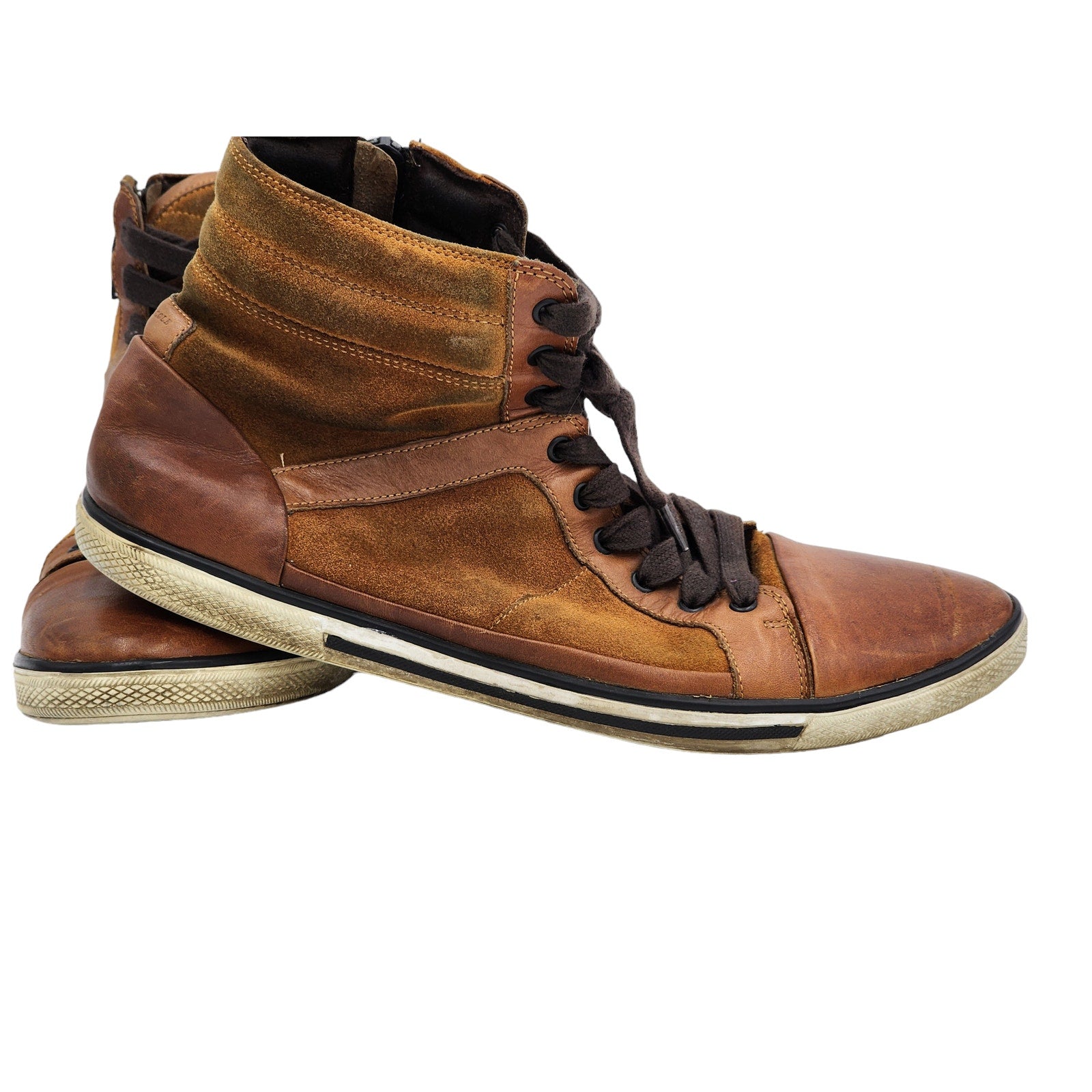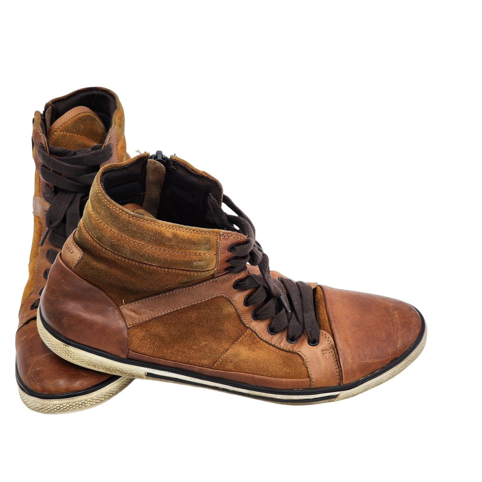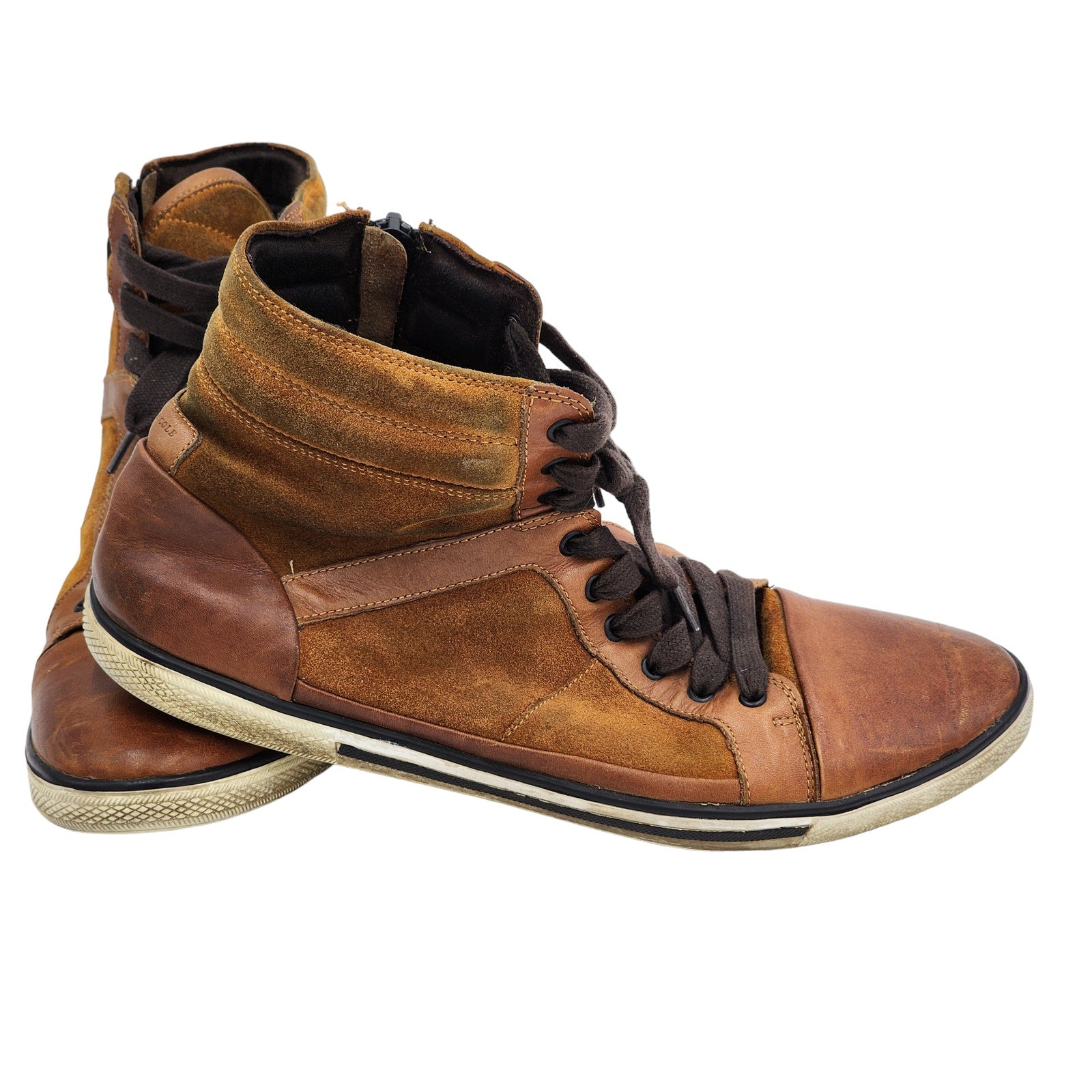 Kenneth Cole Shoes Mens Size 12M Sun Down High Top Sneakers Brown Leather Suede Upper Lace Up Side Zippers Stylish Streetwear