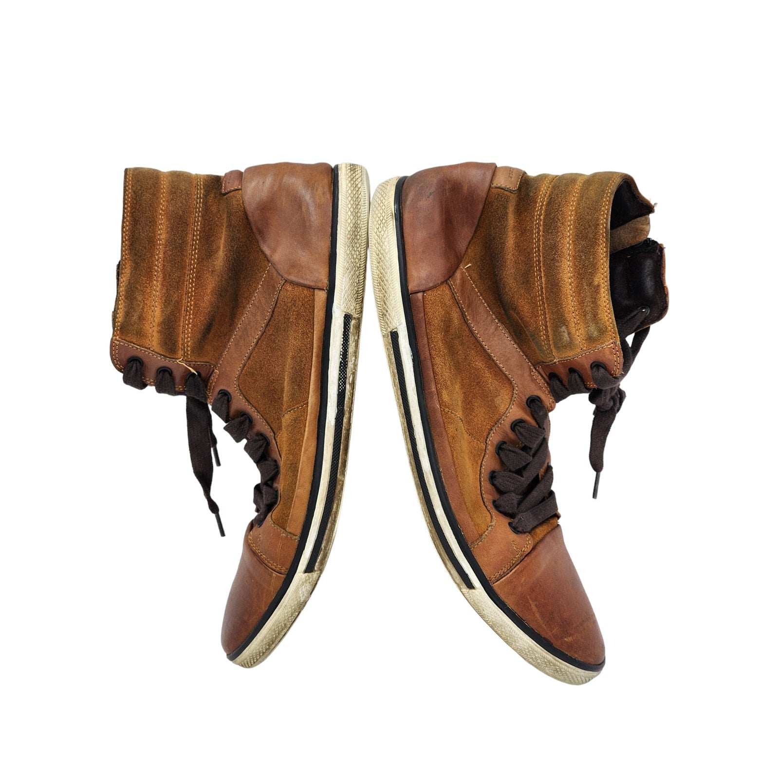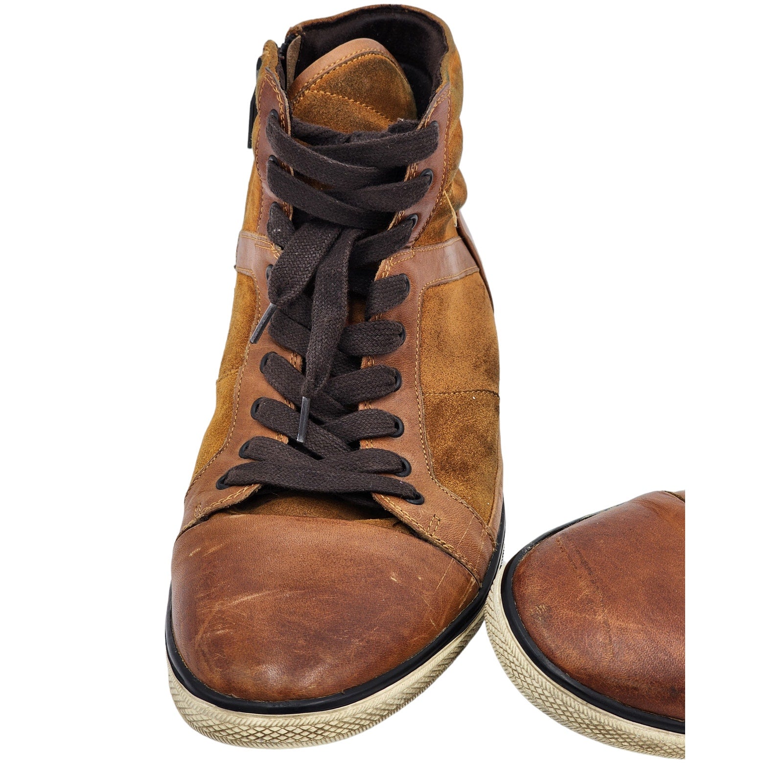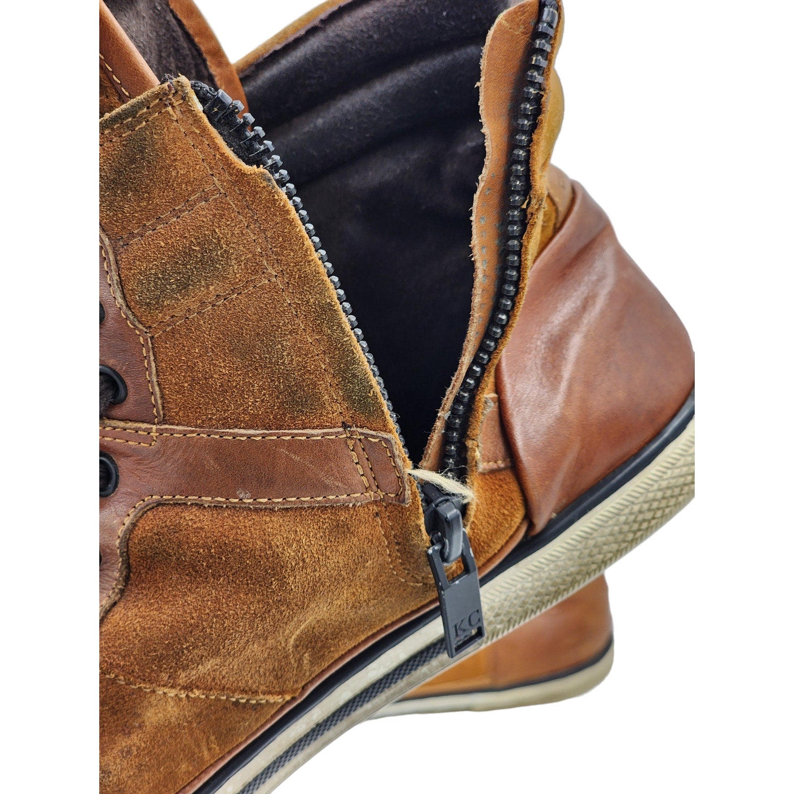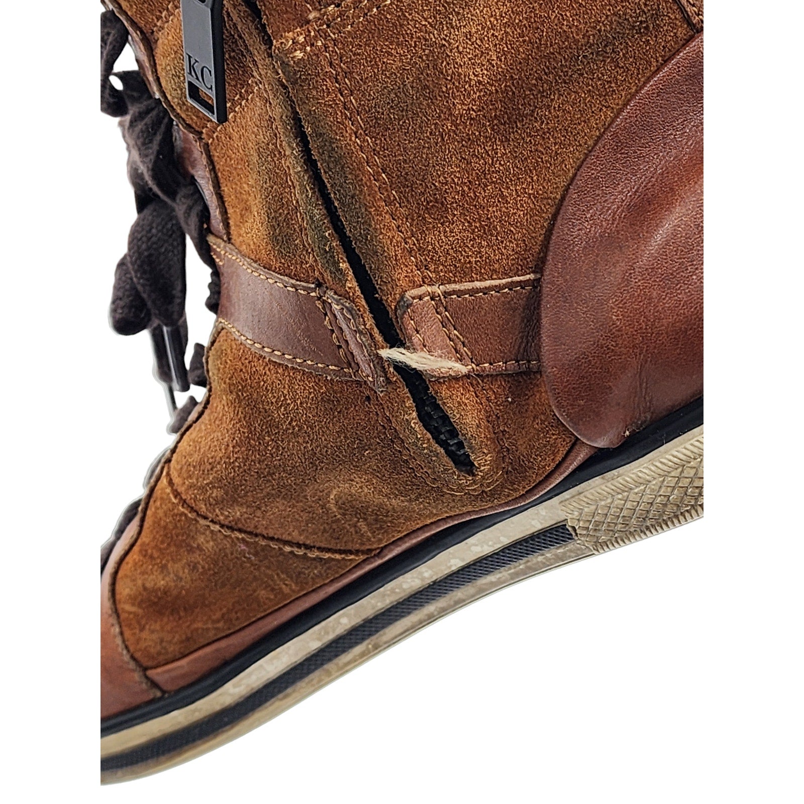 Kenneth Cole Shoes Mens Size 12M Sun Down High Top Sneakers Brown Leather Suede Upper Lace Up Side Zippers Stylish Streetwear