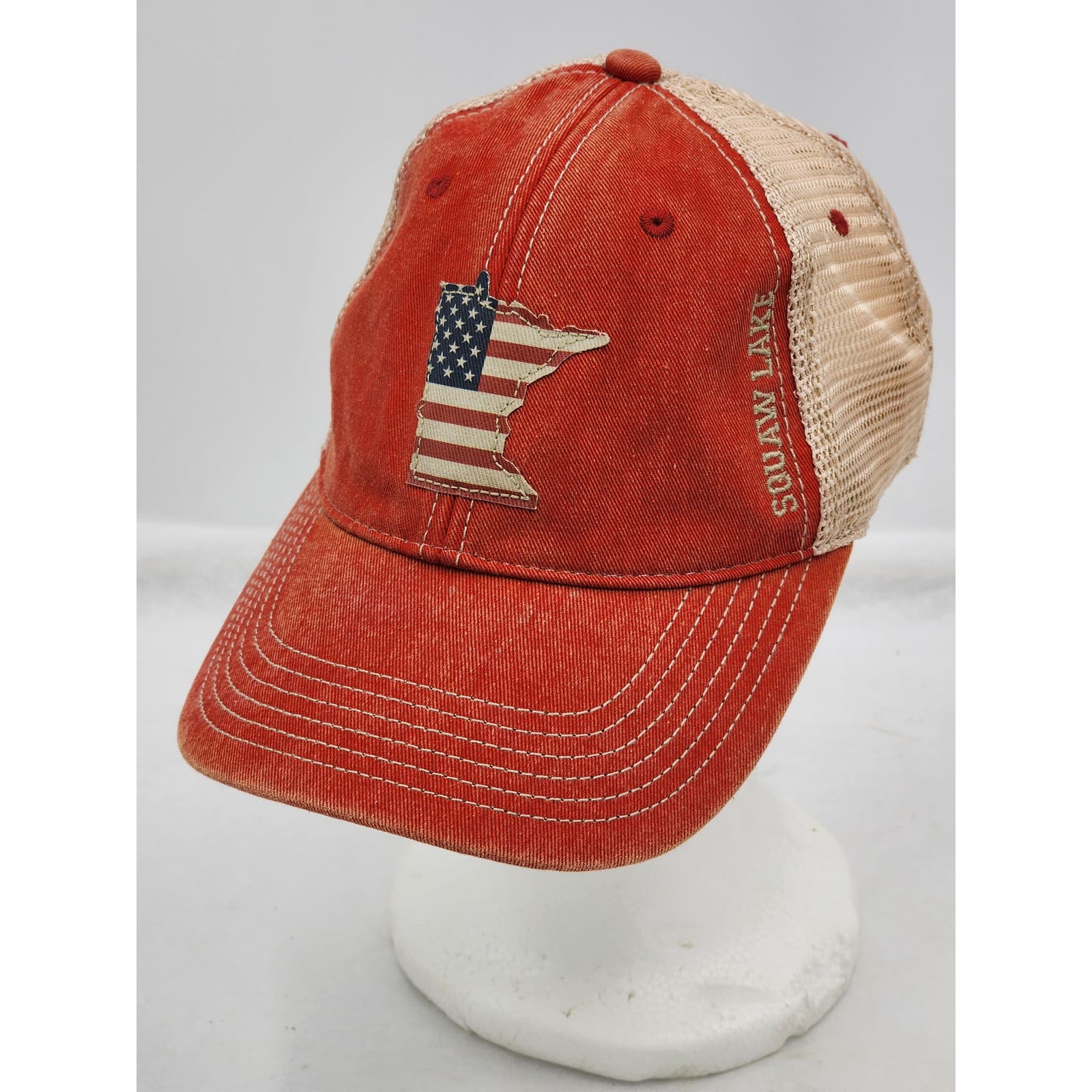 Legacy Hat American Flag Squaw Lake Minnesota Snapback Patriotic Rustic Vintage Trucker Cap