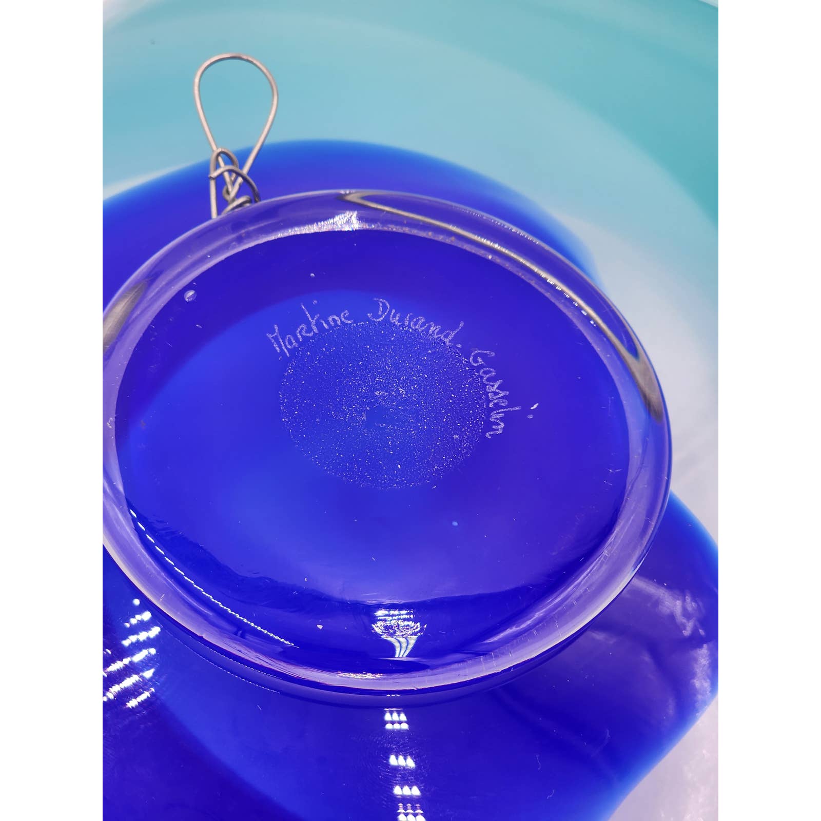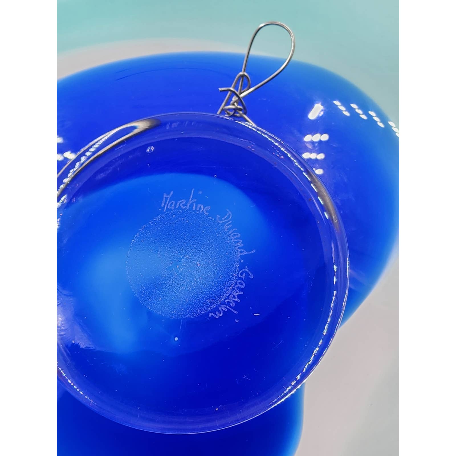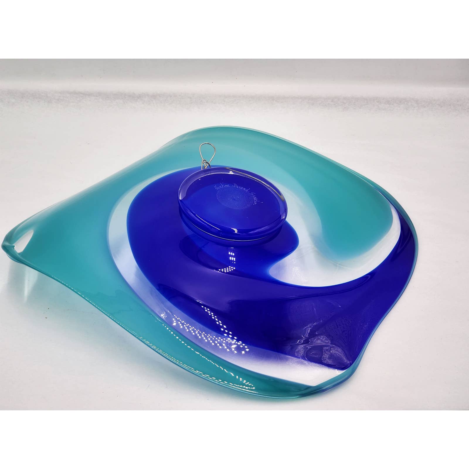 Martine Durand Gasselin Blue Turquoise Glass Wall French Glassblower Artisan 14"