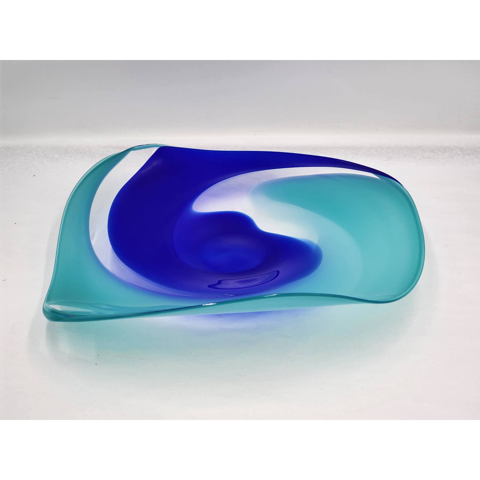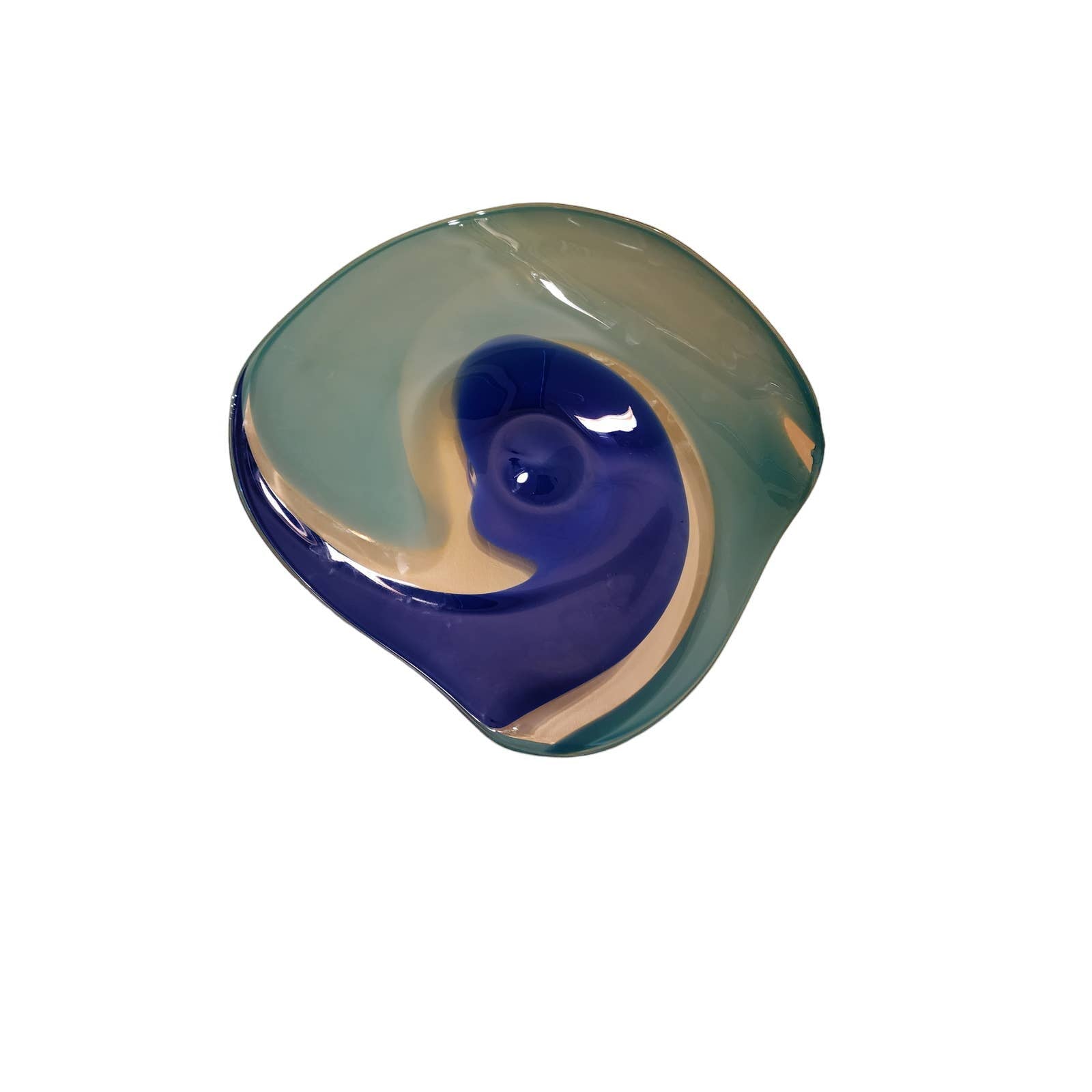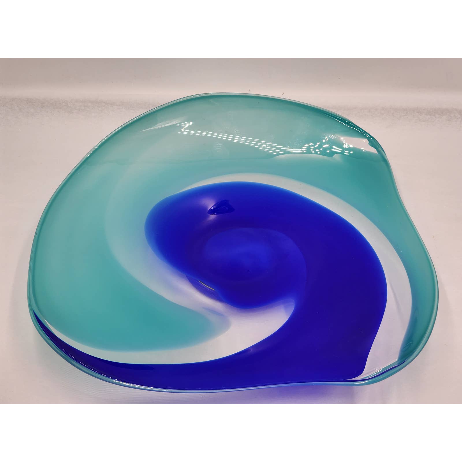 Martine Durand Gasselin Blue Turquoise Glass Centerpiece Wall Decor French Glassblower Artisan Glass Sculpture Vintage 14"