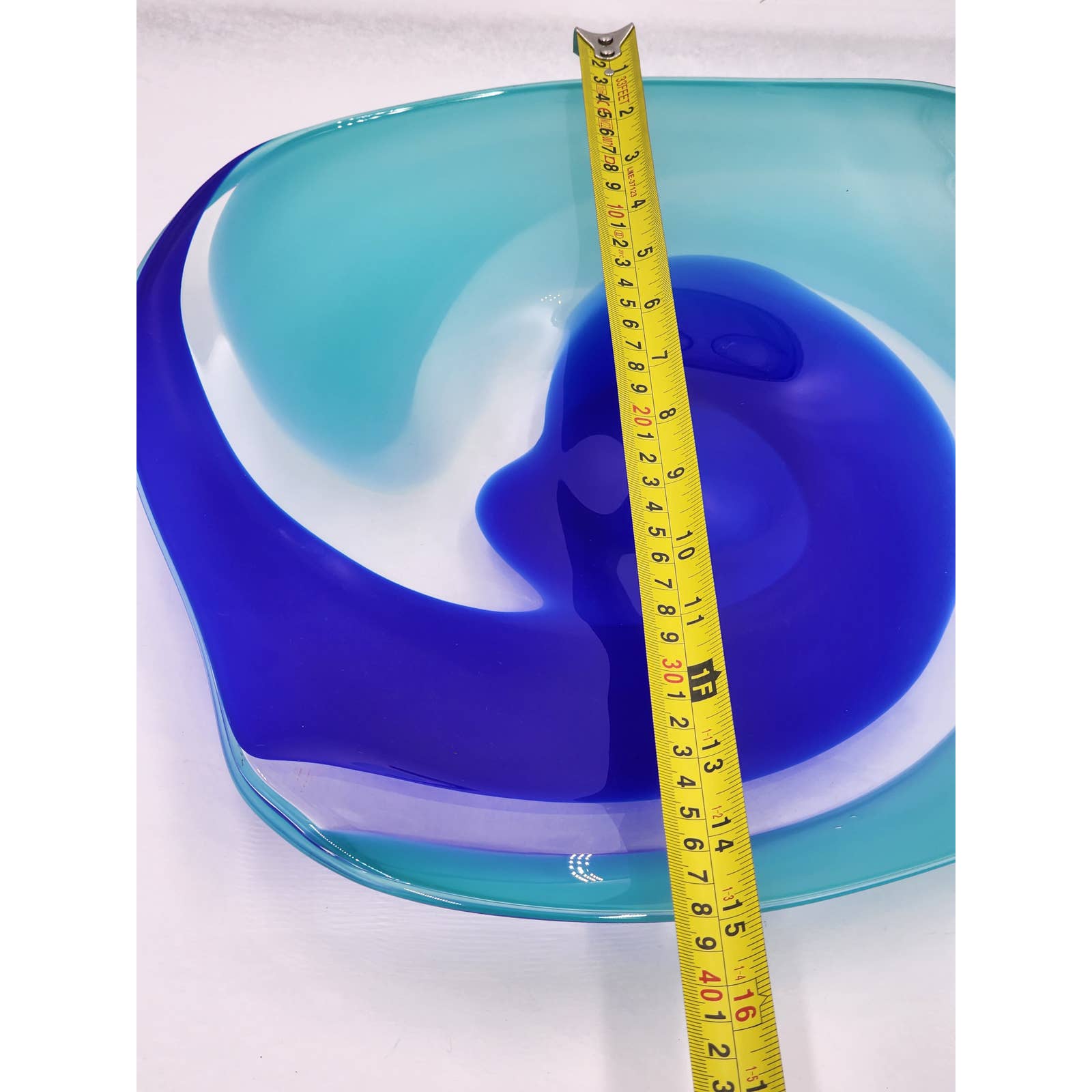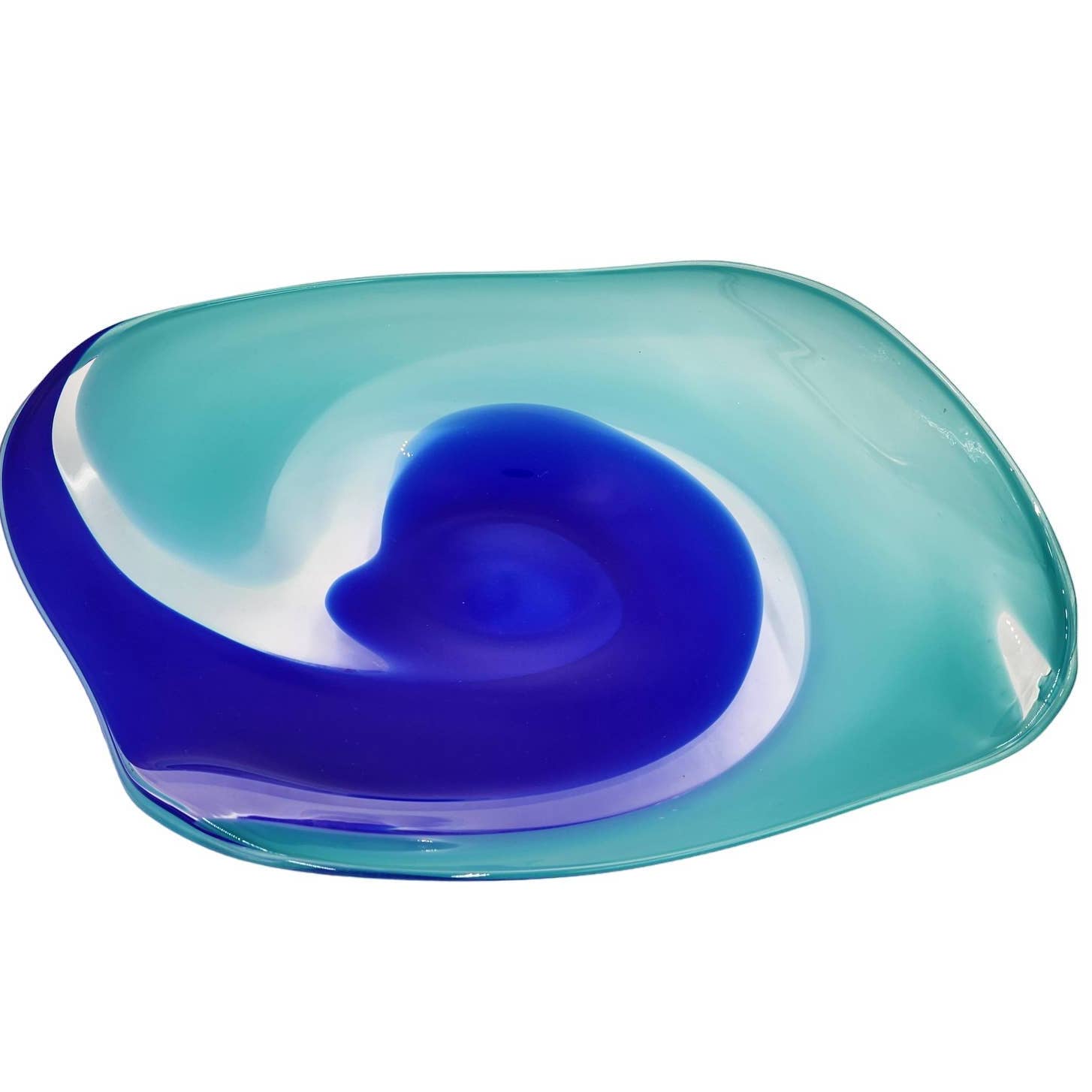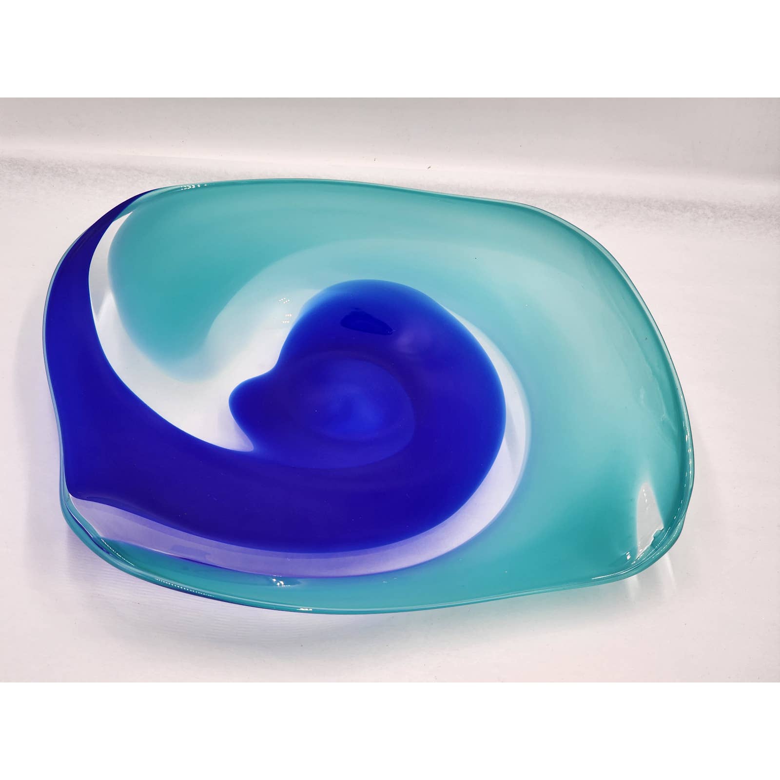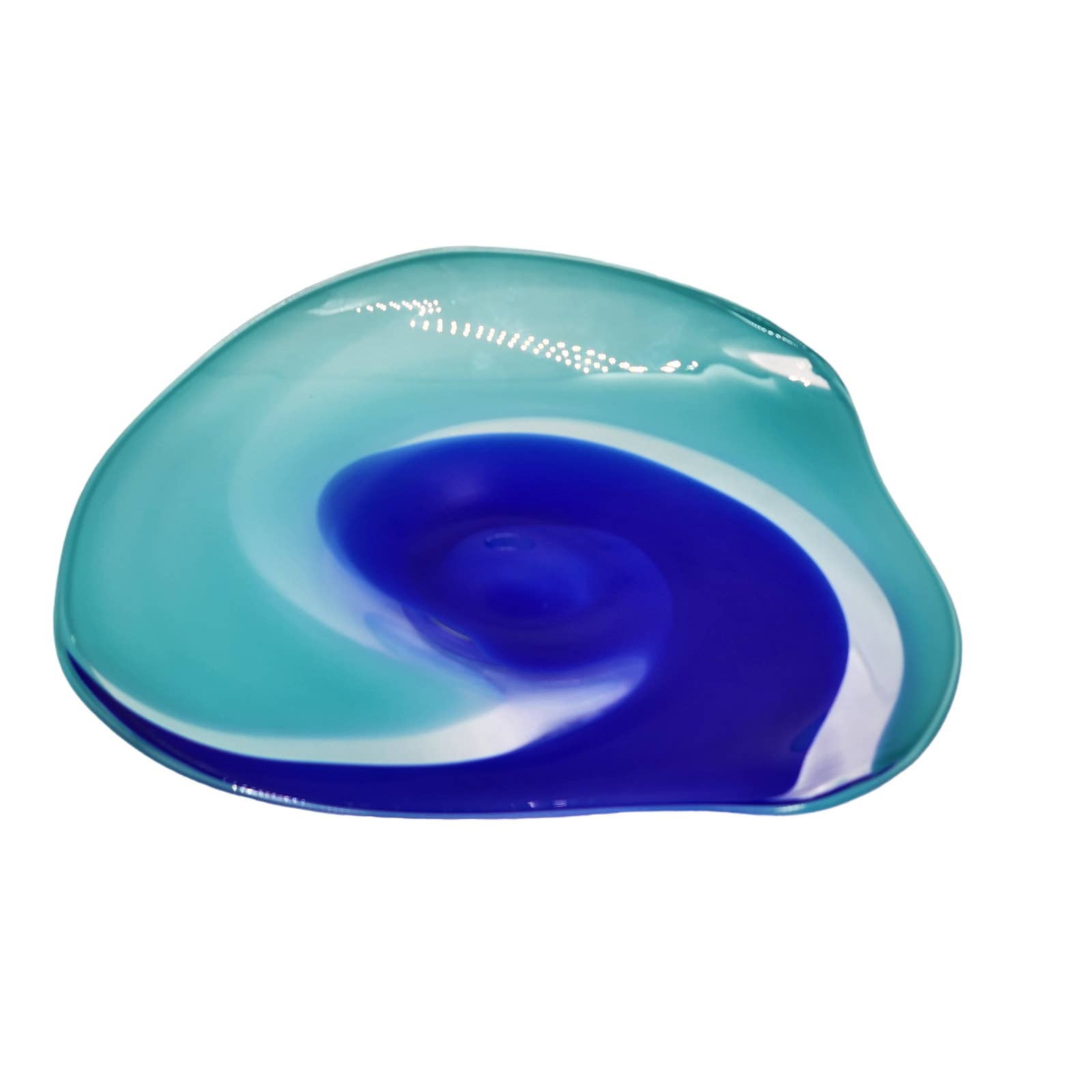 Martine Durand Gasselin Blue Turquoise Glass Centerpiece Wall Decor French Glassblower Artisan Glass Sculpture Vintage 14"