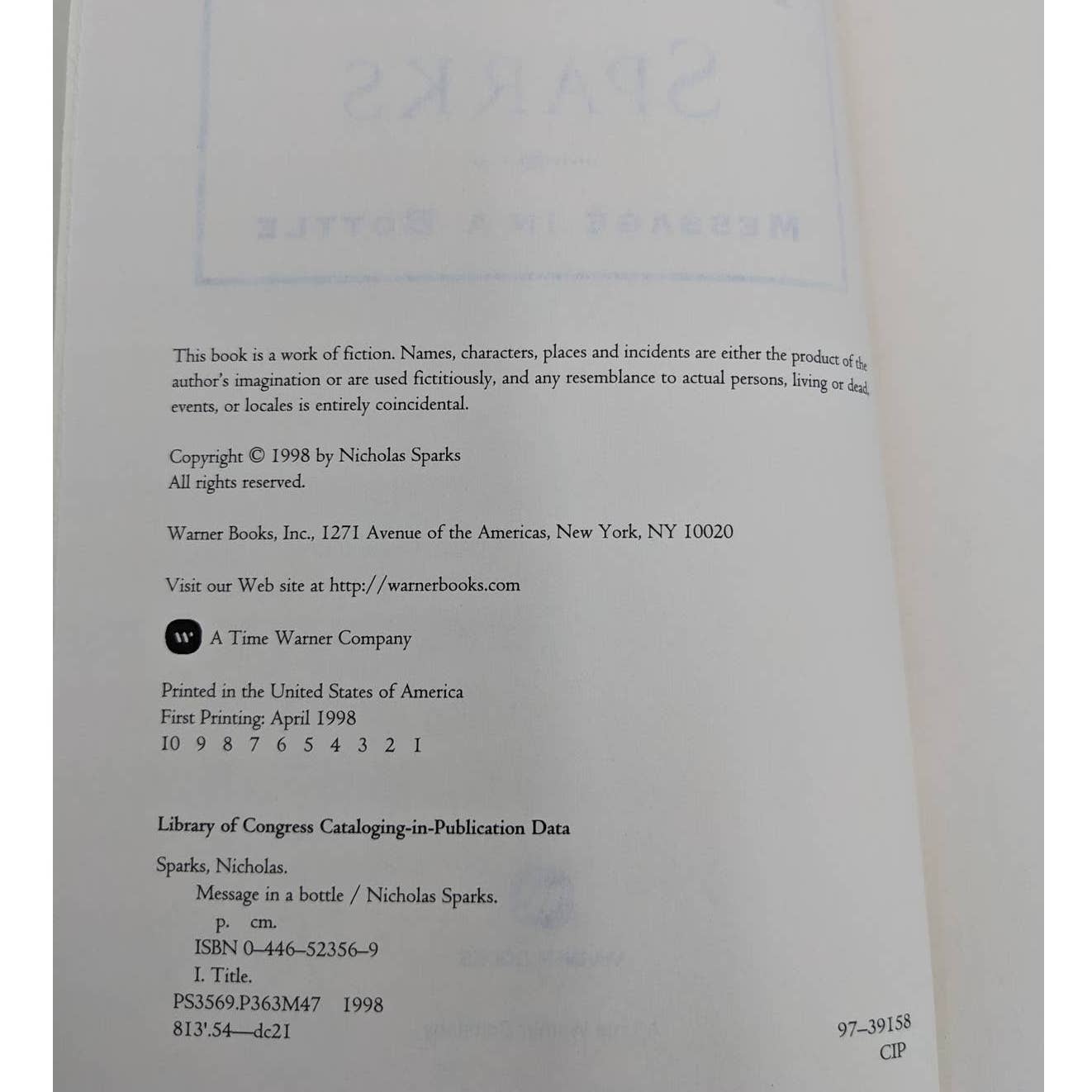 Message In A Bottle By Nicholas Sparks Romance Novel First Printing Vintage 1998